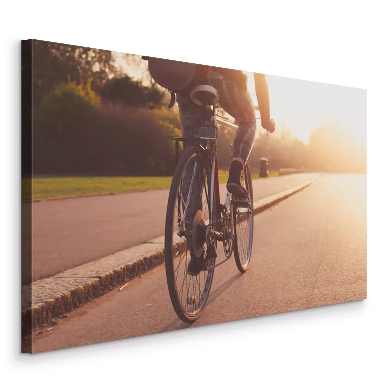 Tableau  Jeune femme à vélo dans le parc au coucher du soleil