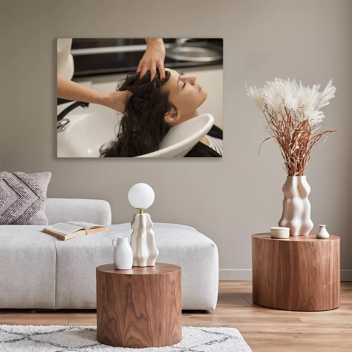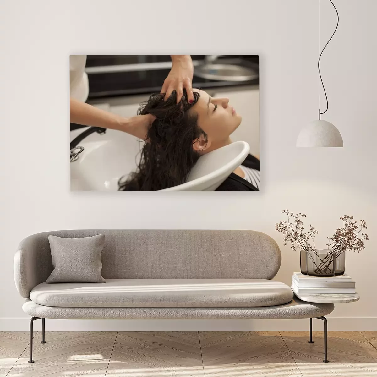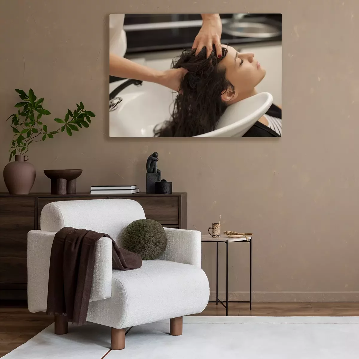 Tableau  Jeune, femme, cheveux, salon, apprécier, quoique, masser, scalp