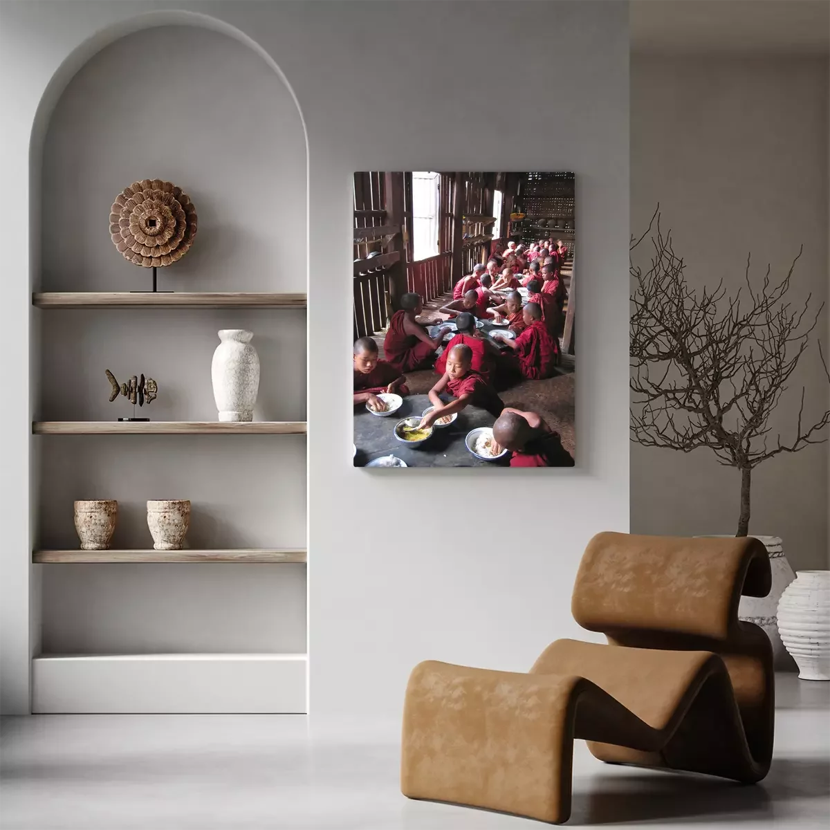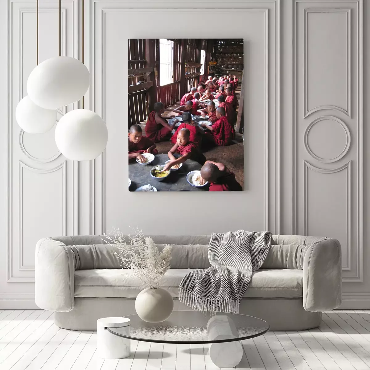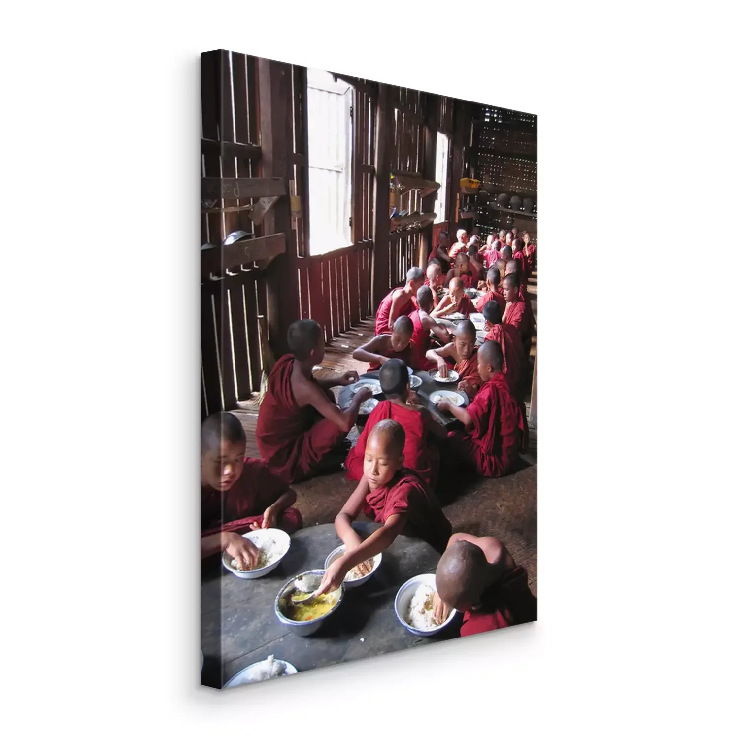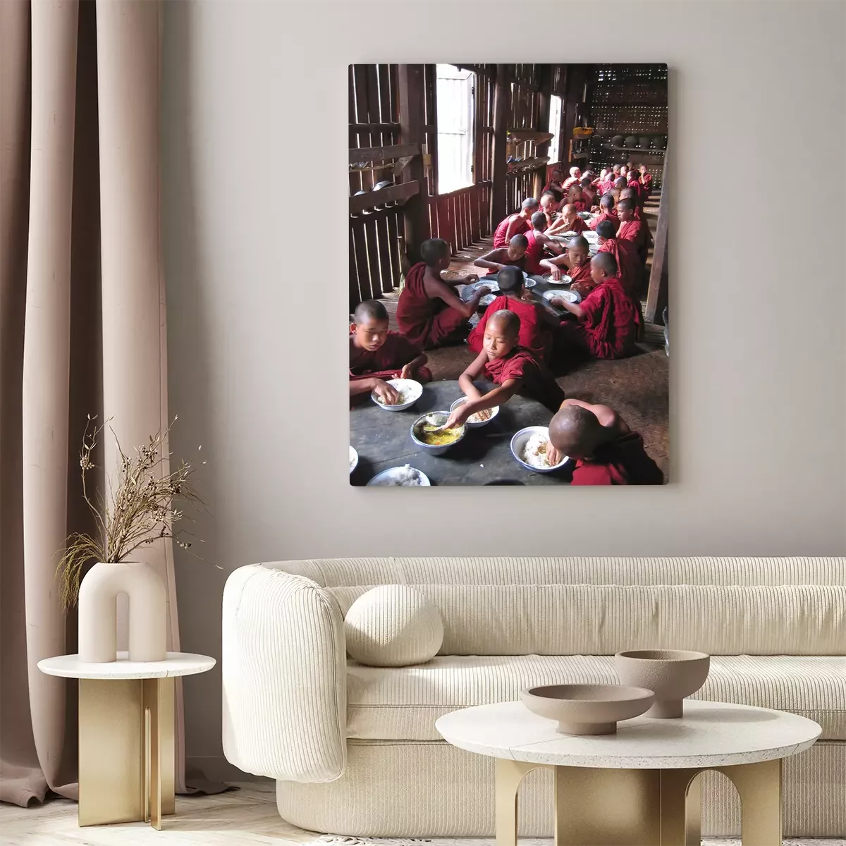 Tableau  jeune moine de manger ensemble dans leur temple, le Myanmar