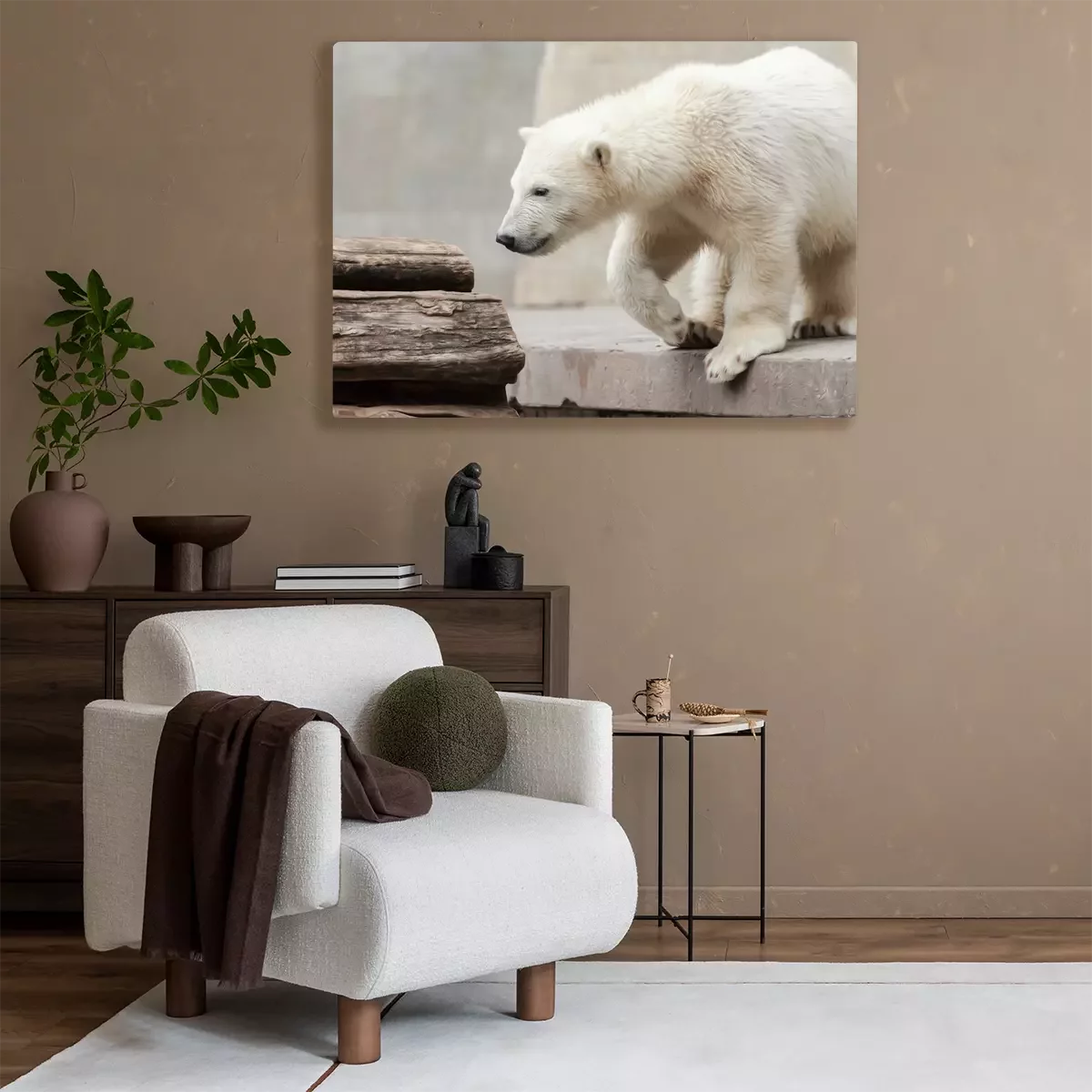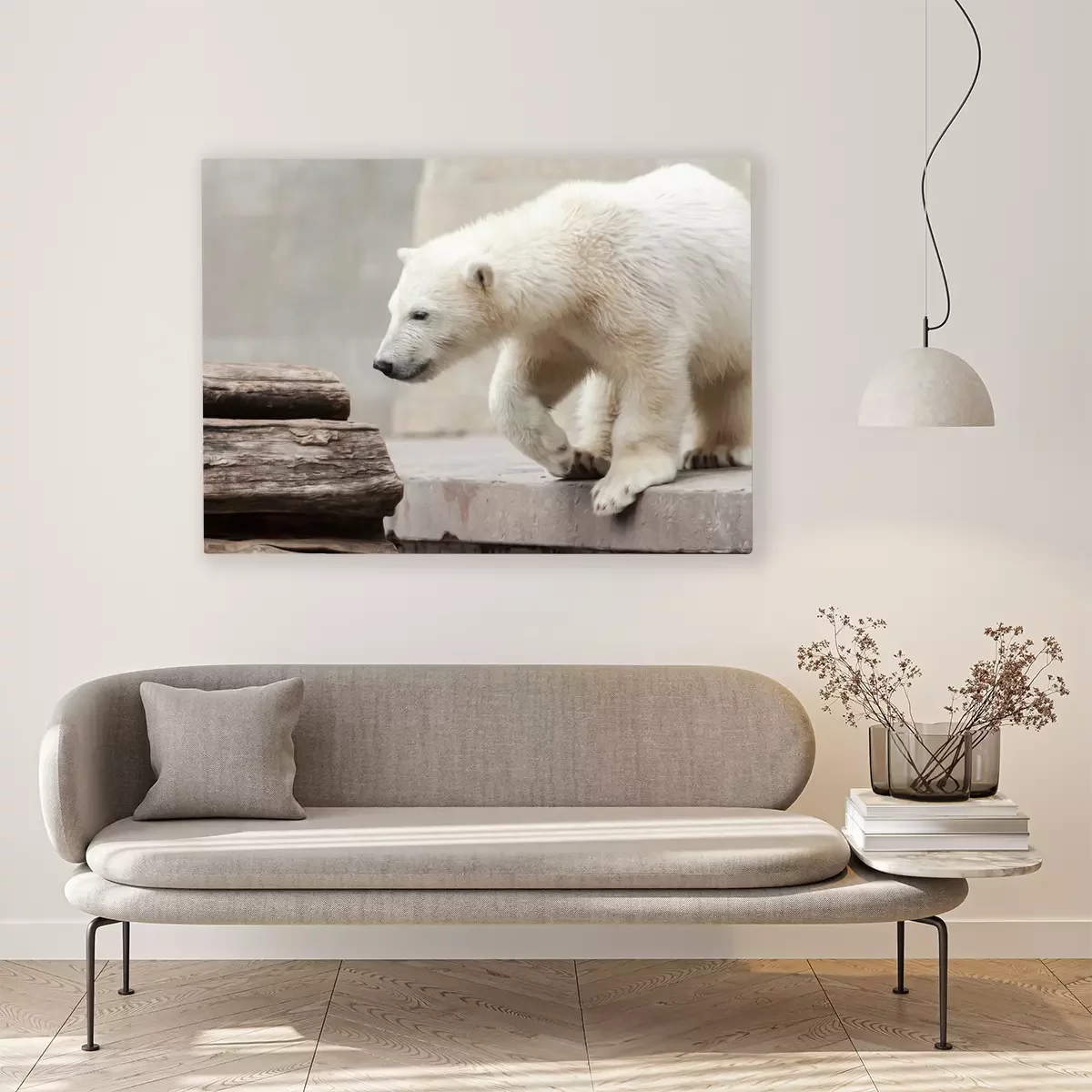 Tableau  Jeune ours polaire sur un tronc d'arbre