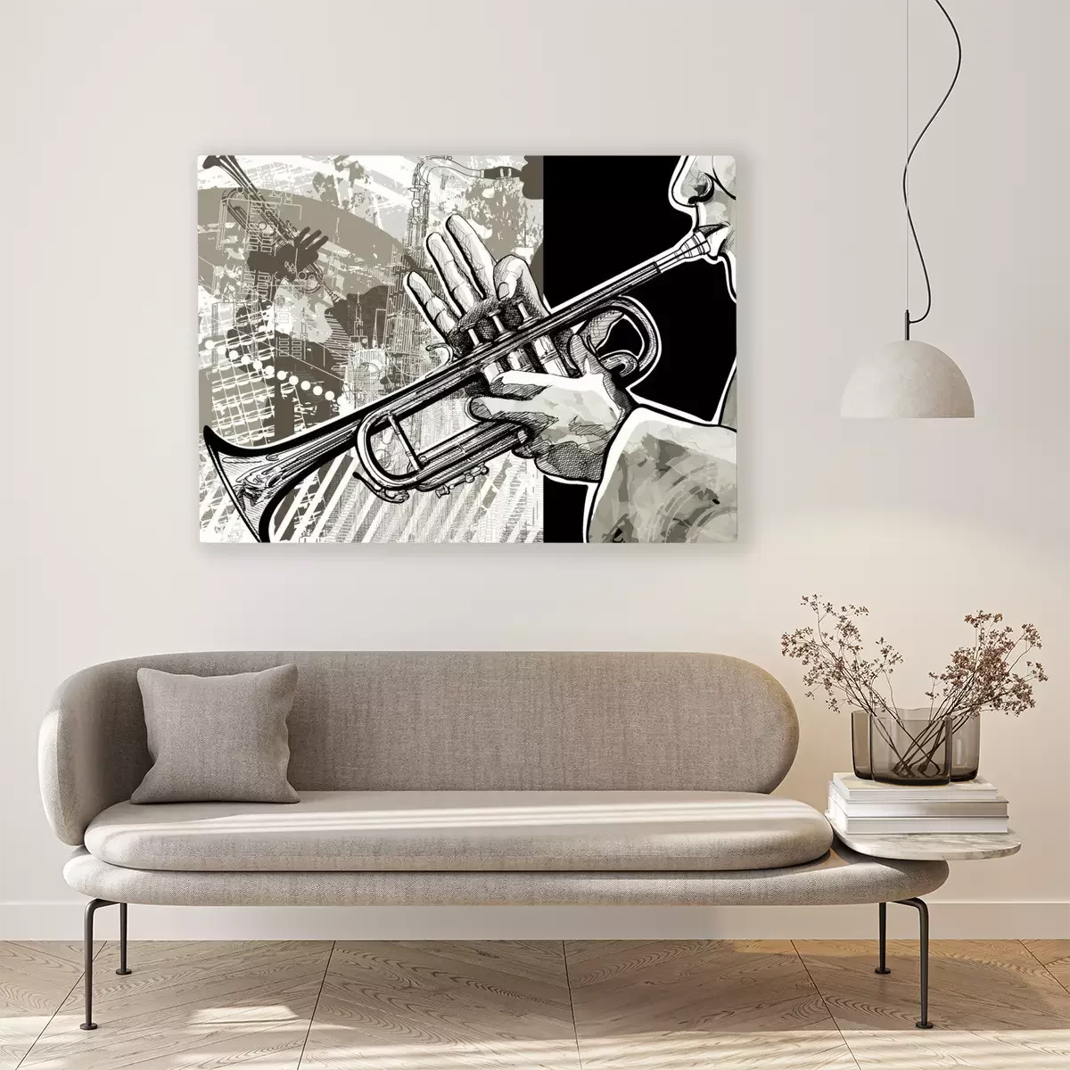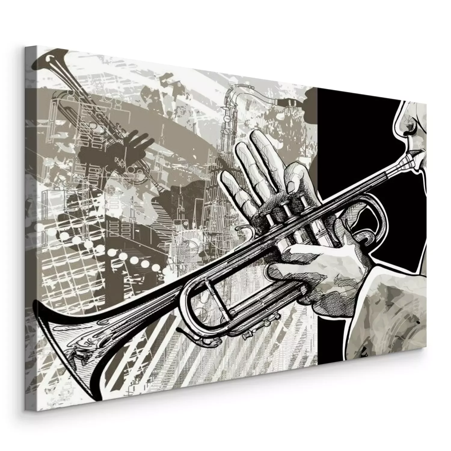 Des musiciens de jazz sur la ligne d'horizon de la ville