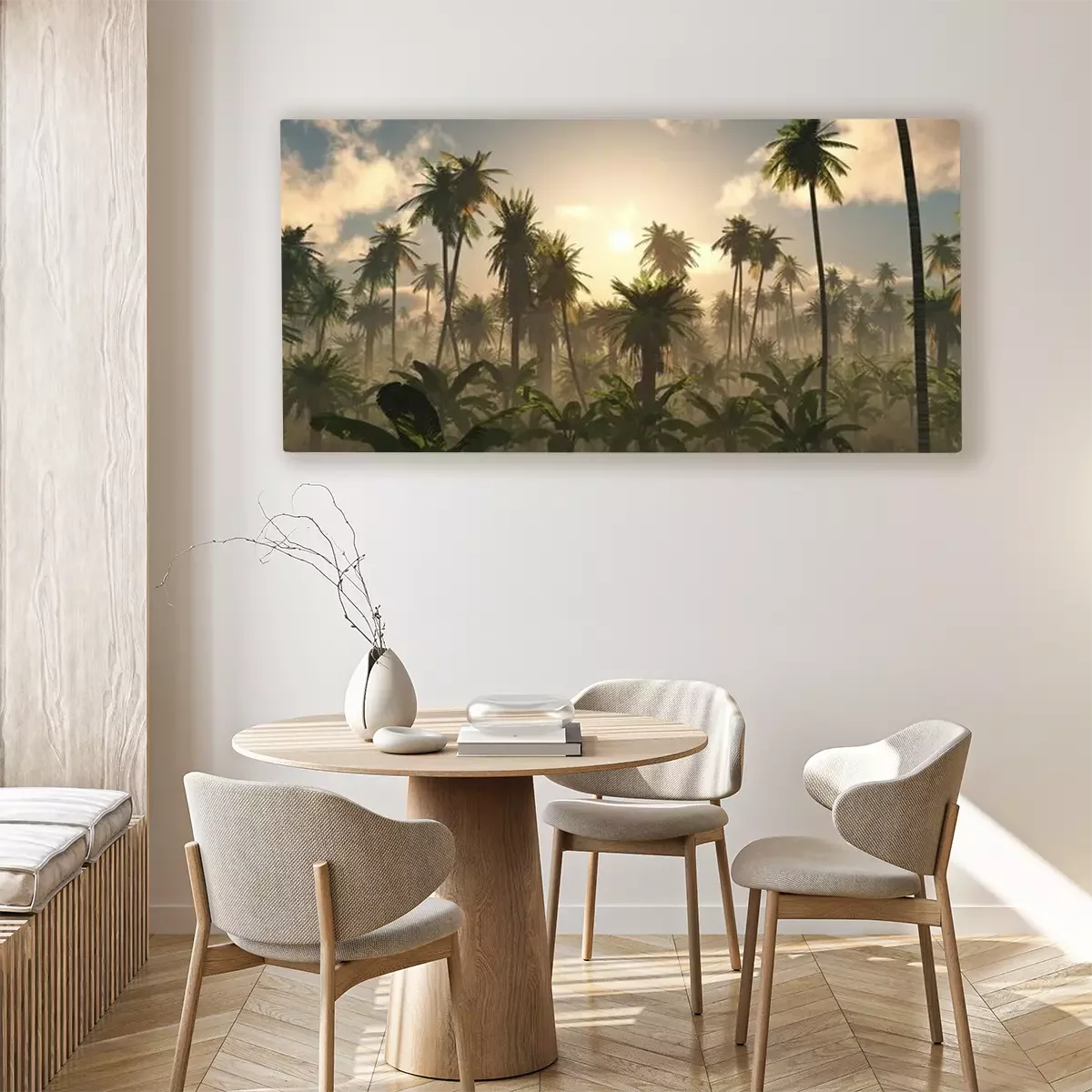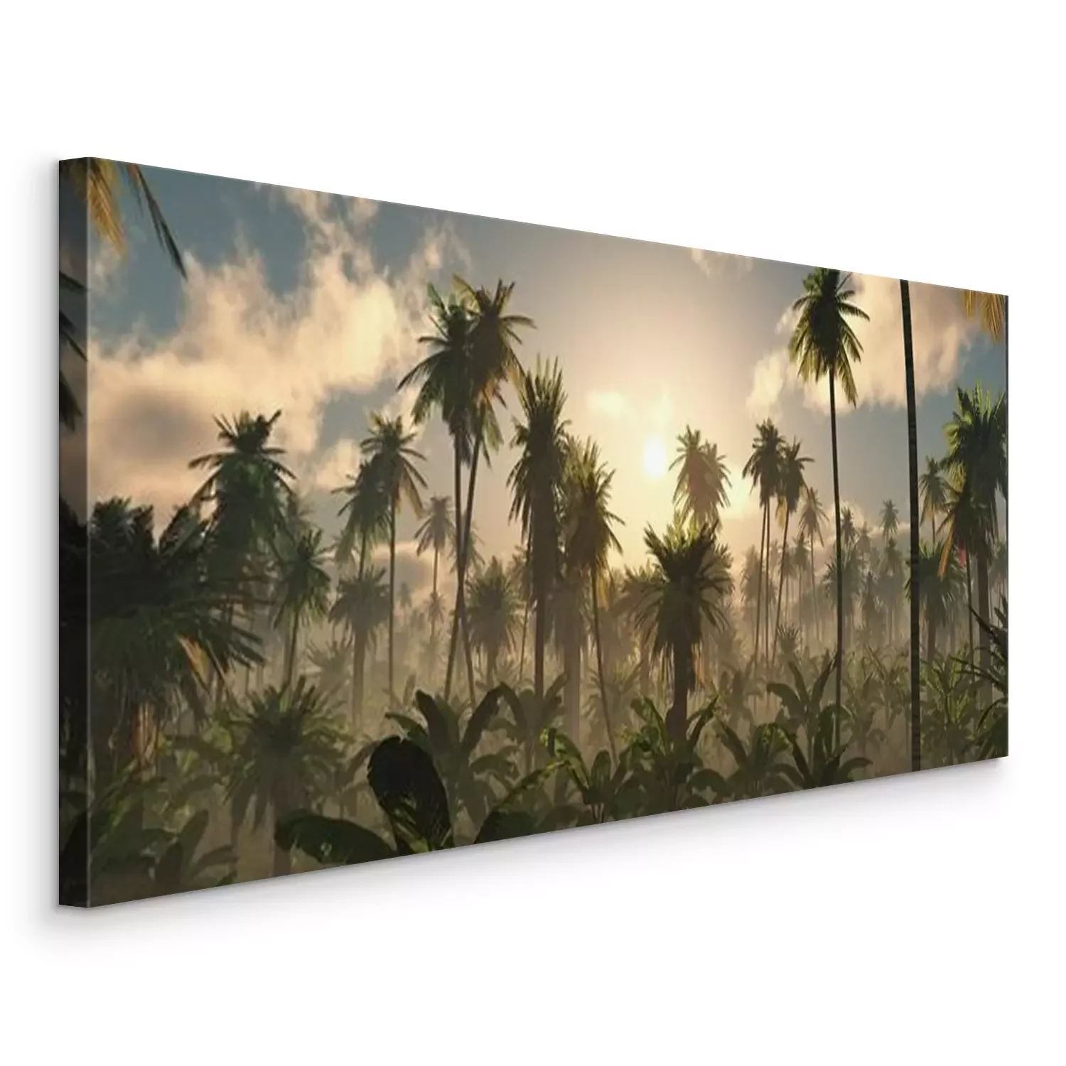 Jungle tropicale dans le brouillard. Palmiers dans la matinée.