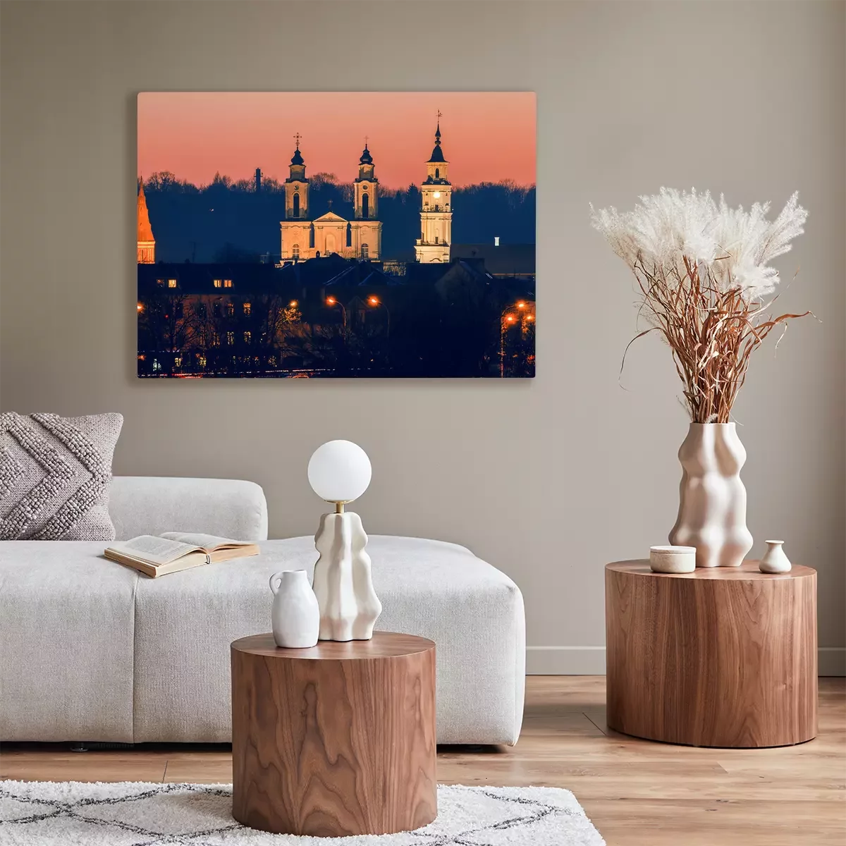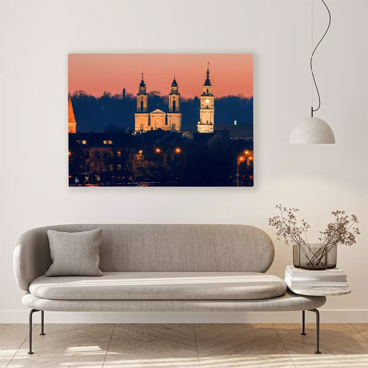 Tableau : Kaunas (Lituanie) de la vieille ville dans la soirée
