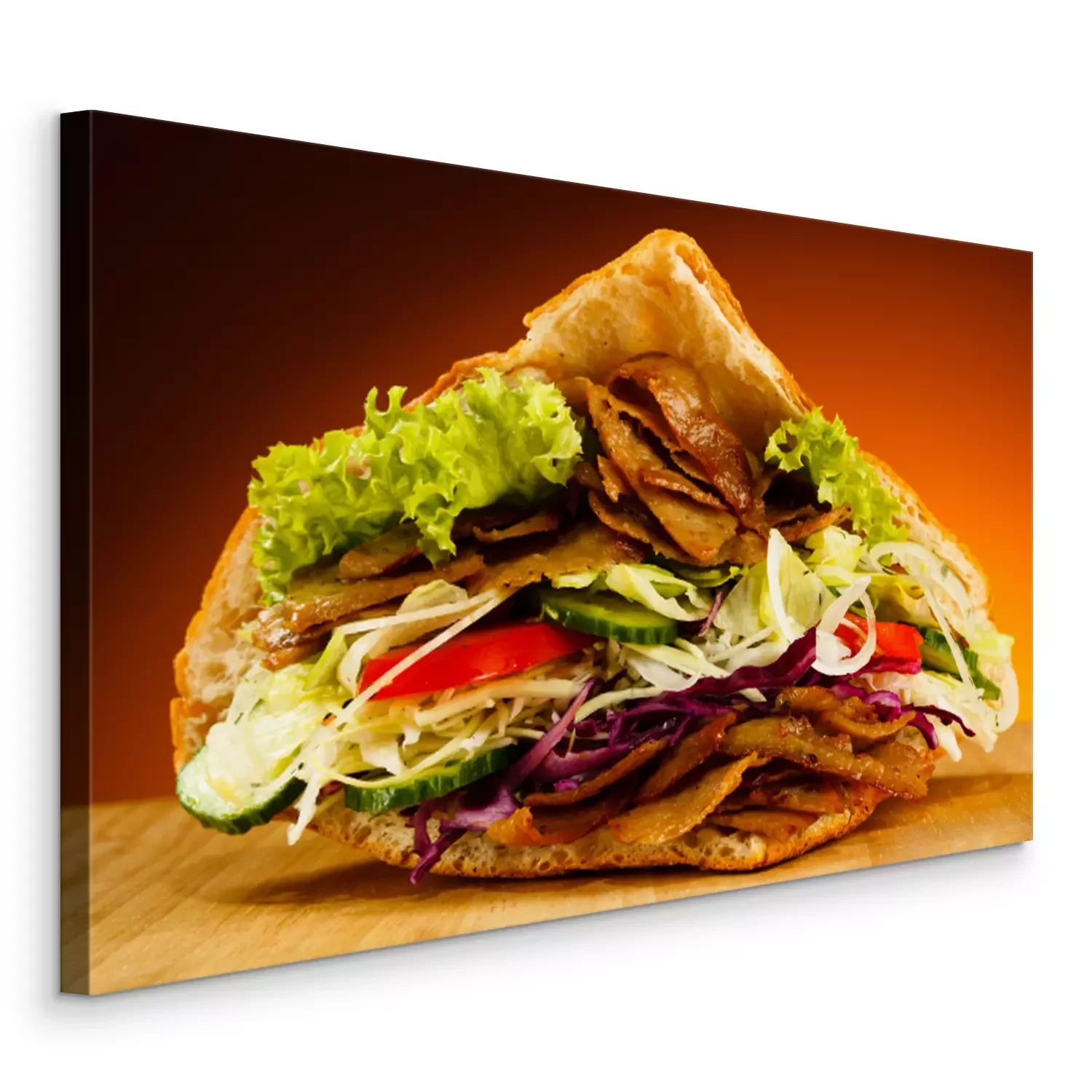 Tableau : Kebab - viande grillée, du pain et des légumes