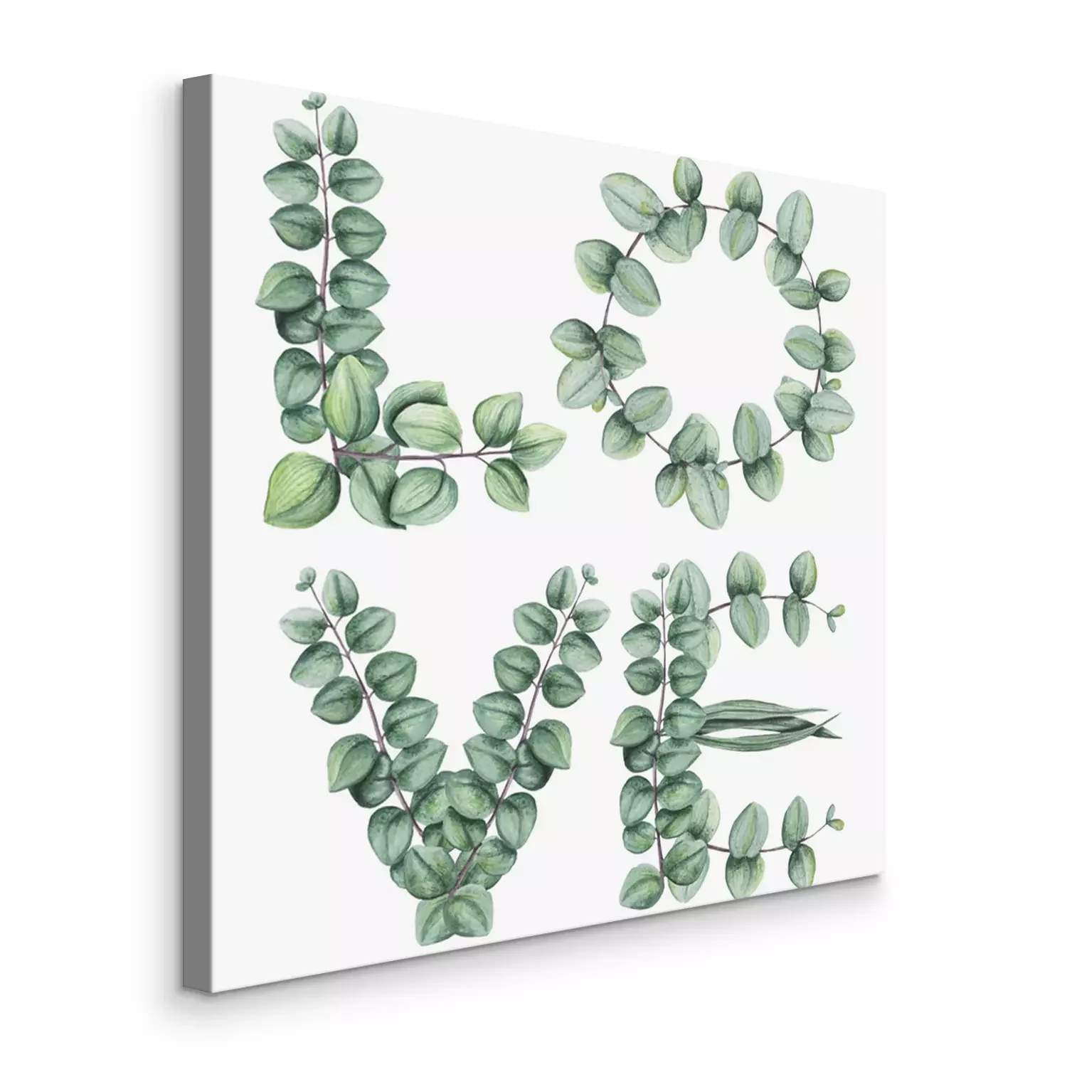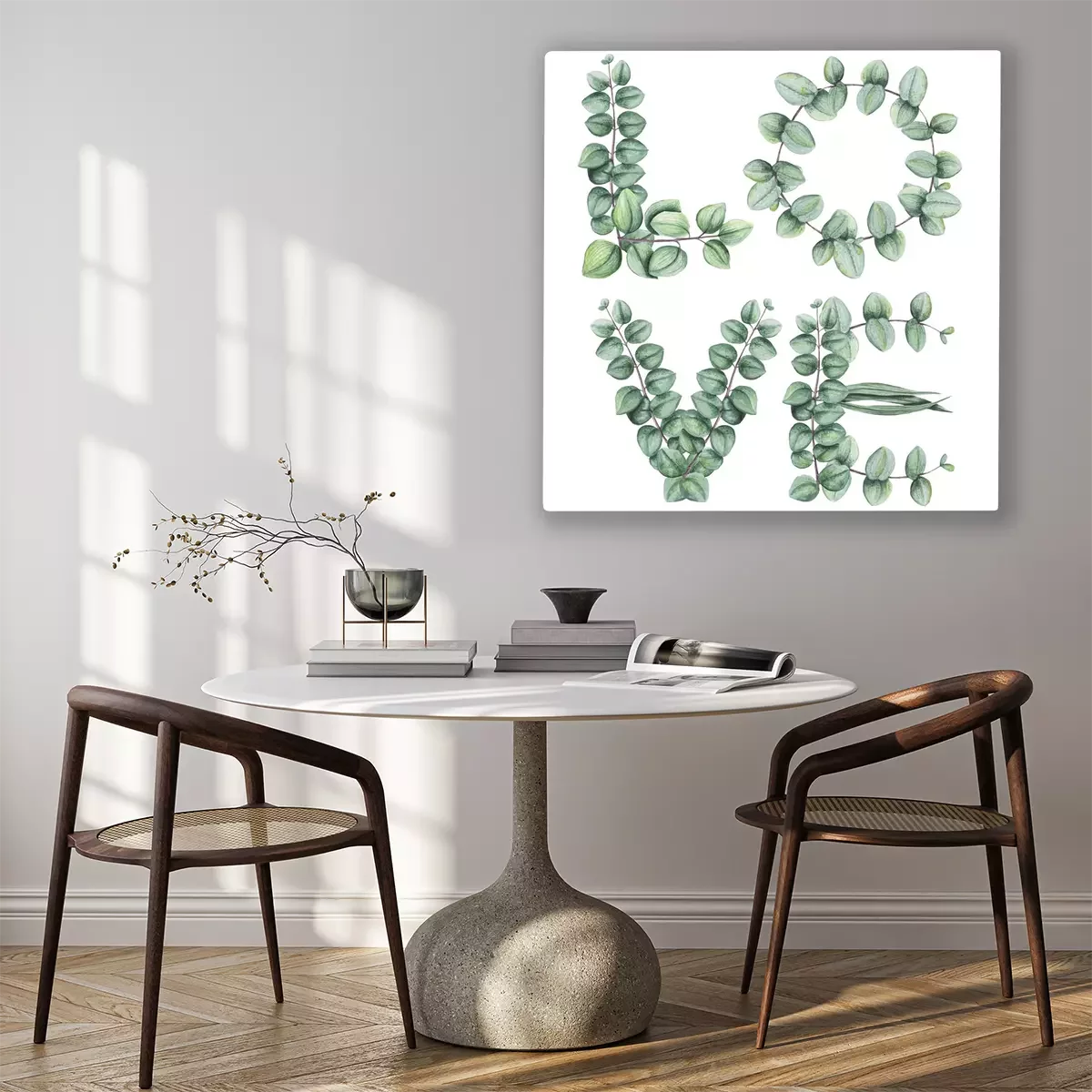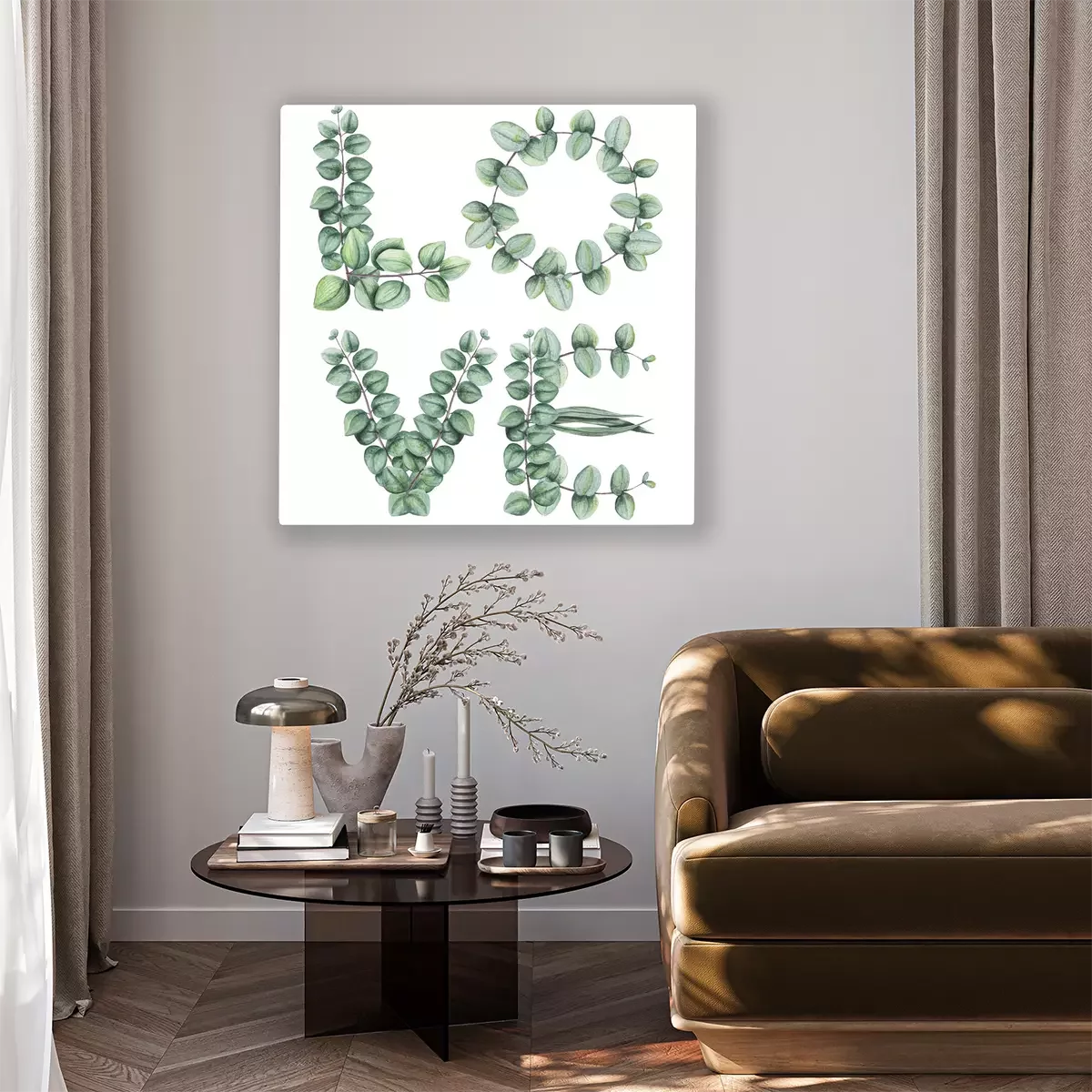 Tableau  L'amour du mot avec des feuilles d'aquarelle et des eucalyptus