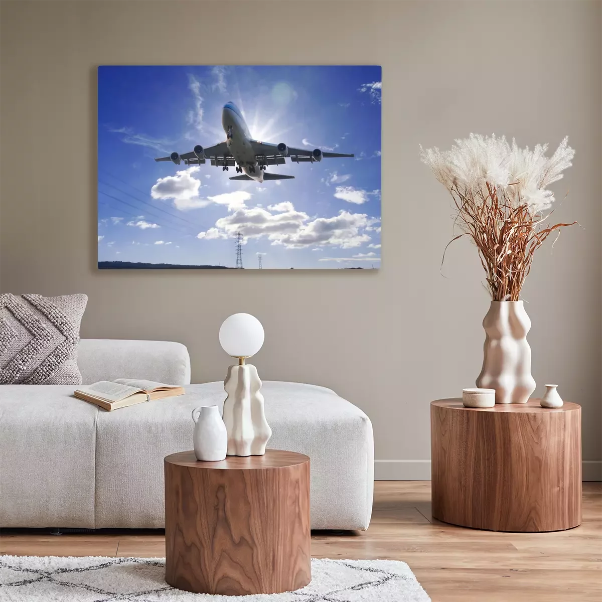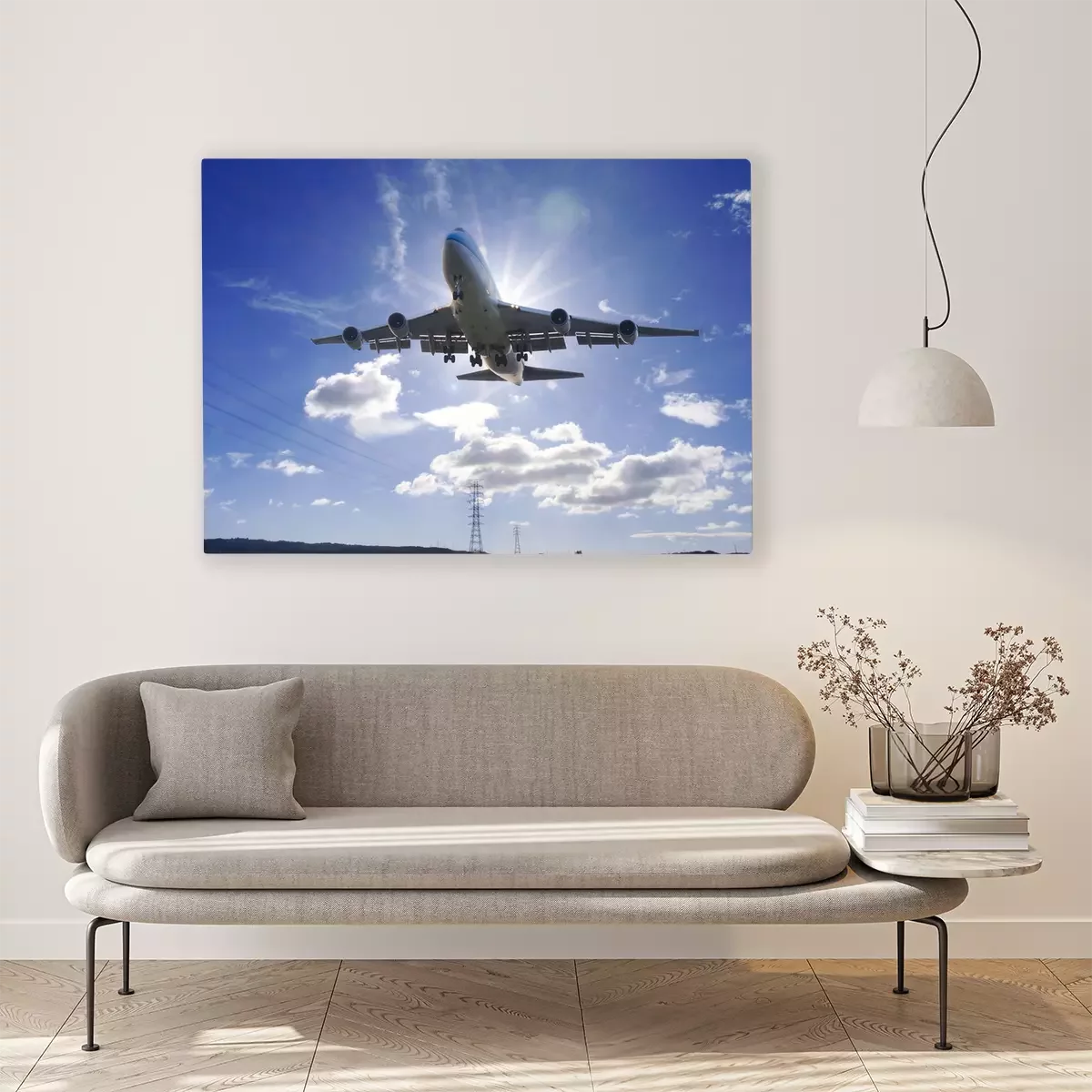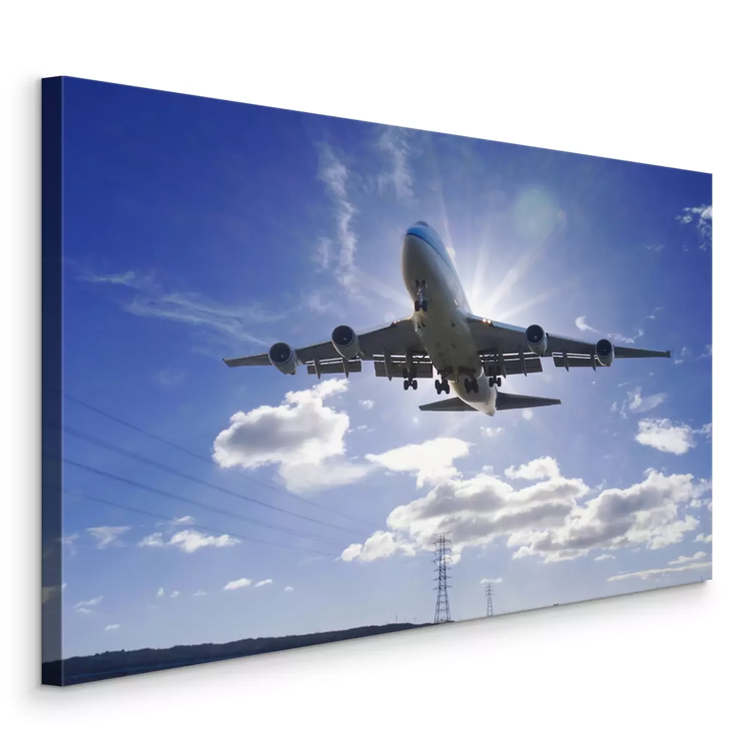 Tableau  L'avion décollent sous la lumière du soleil à l'aéroport