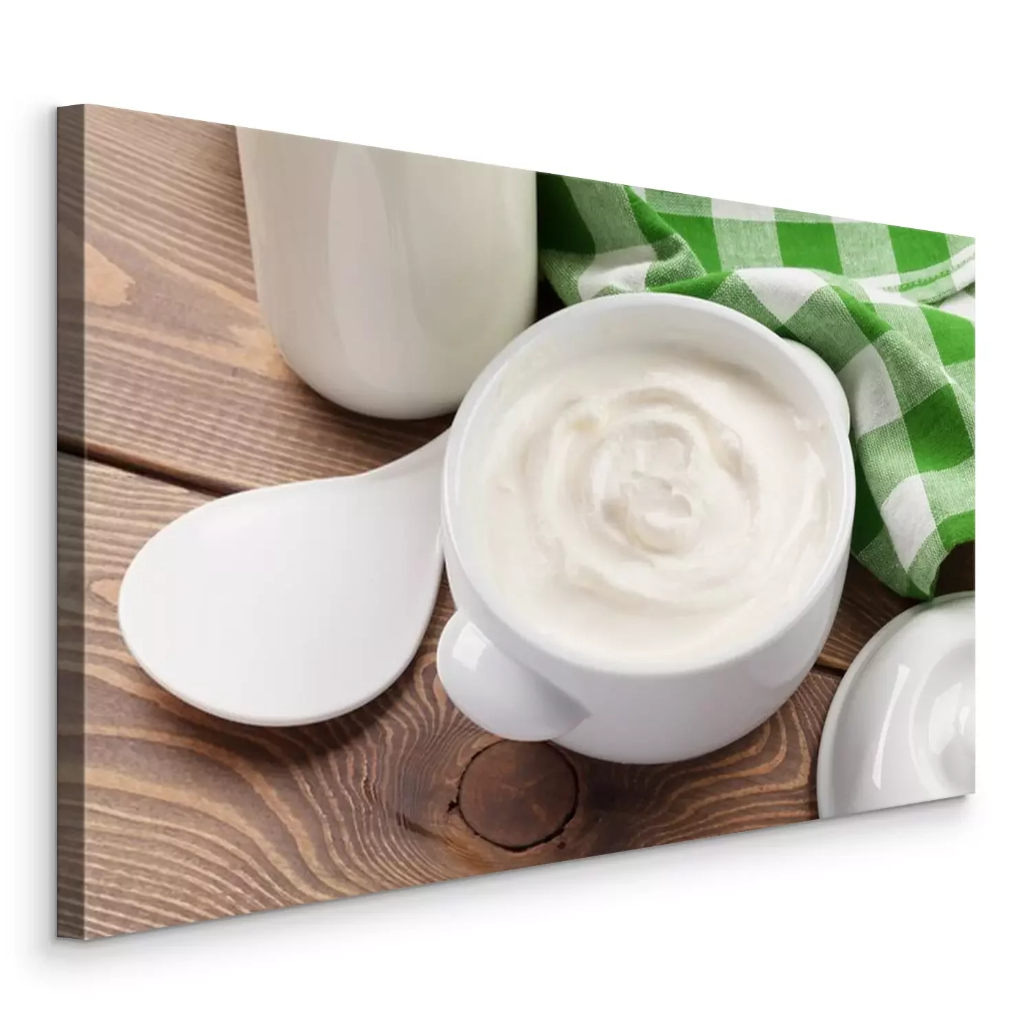 Tableau  La crème fraîche dans un bol et bouteille de lait