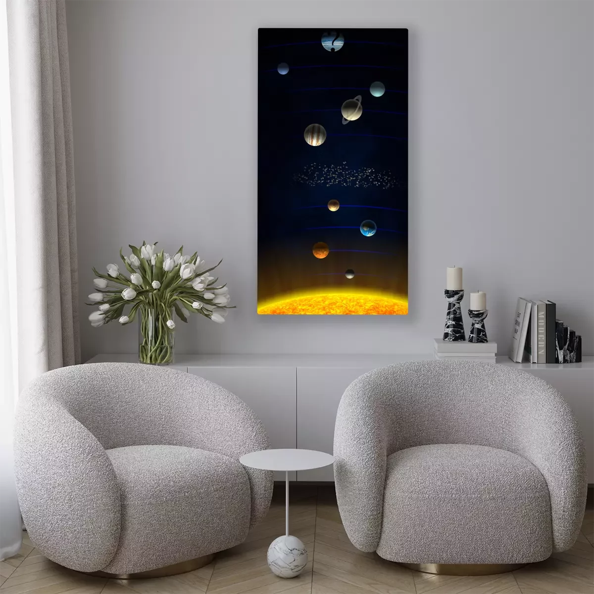 L'impression est réalisée sur une toile de haute qualité tendue sur un châssis. Puisque les bords latéraux de l’image sont également imprimés, il n'est pas nécessaire d'opter pour un cadre supplémentaire. Nous recommandons également les solutions composées de plusieurs images permettant de profiter d’une composition harmonieuse.