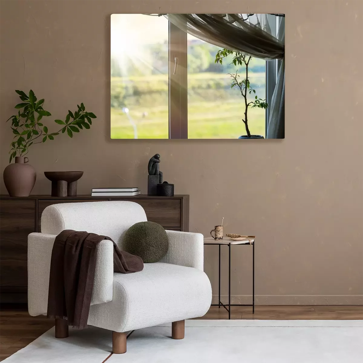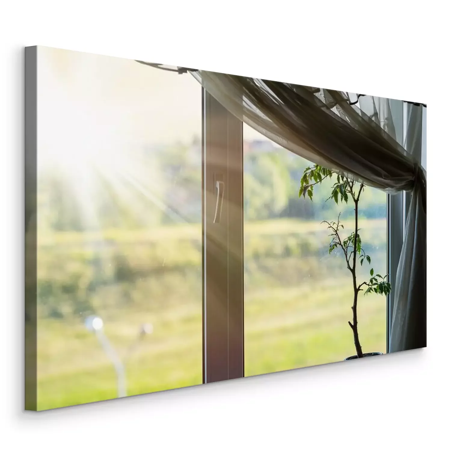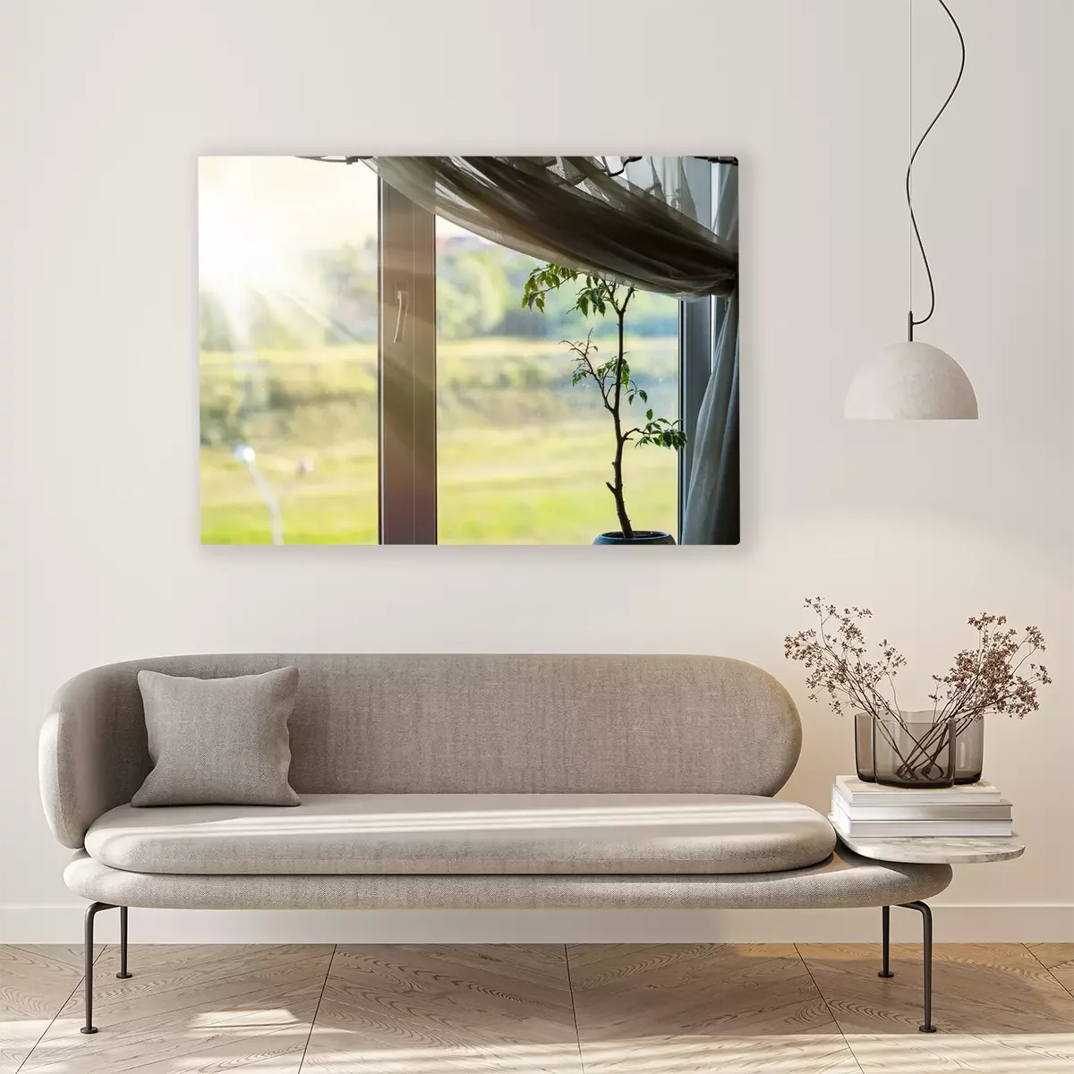 Tableau  La lumière du soleil à travers la fenêtre dans la chambre, le rideau est poussé de côté.