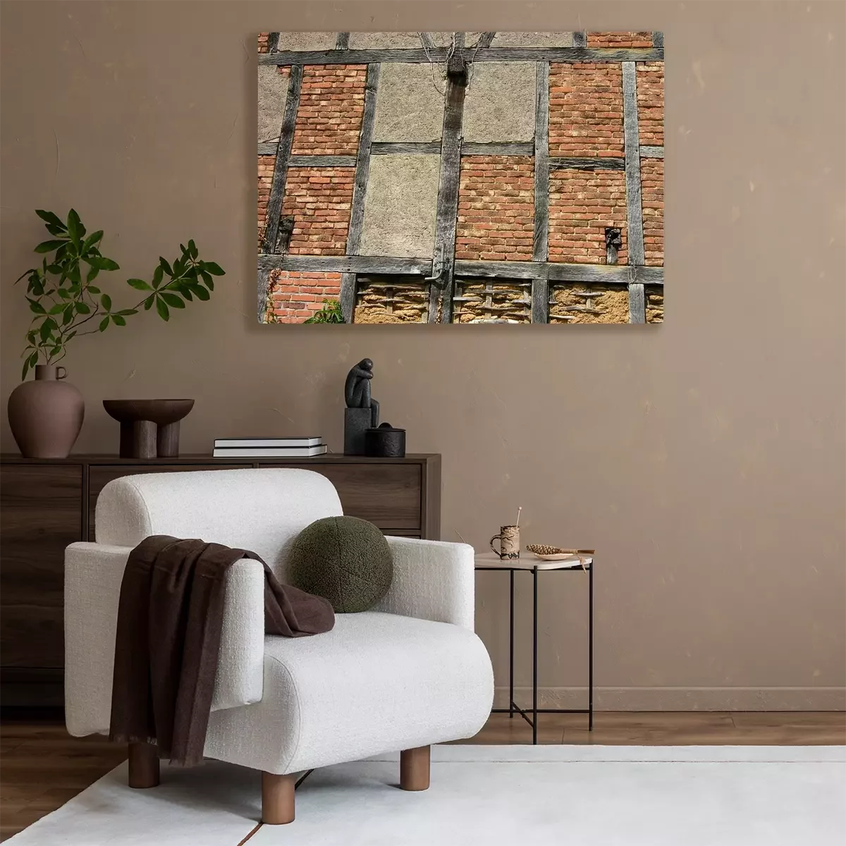 Tableau  La structure en treillis avec des poutres et des murs de briques