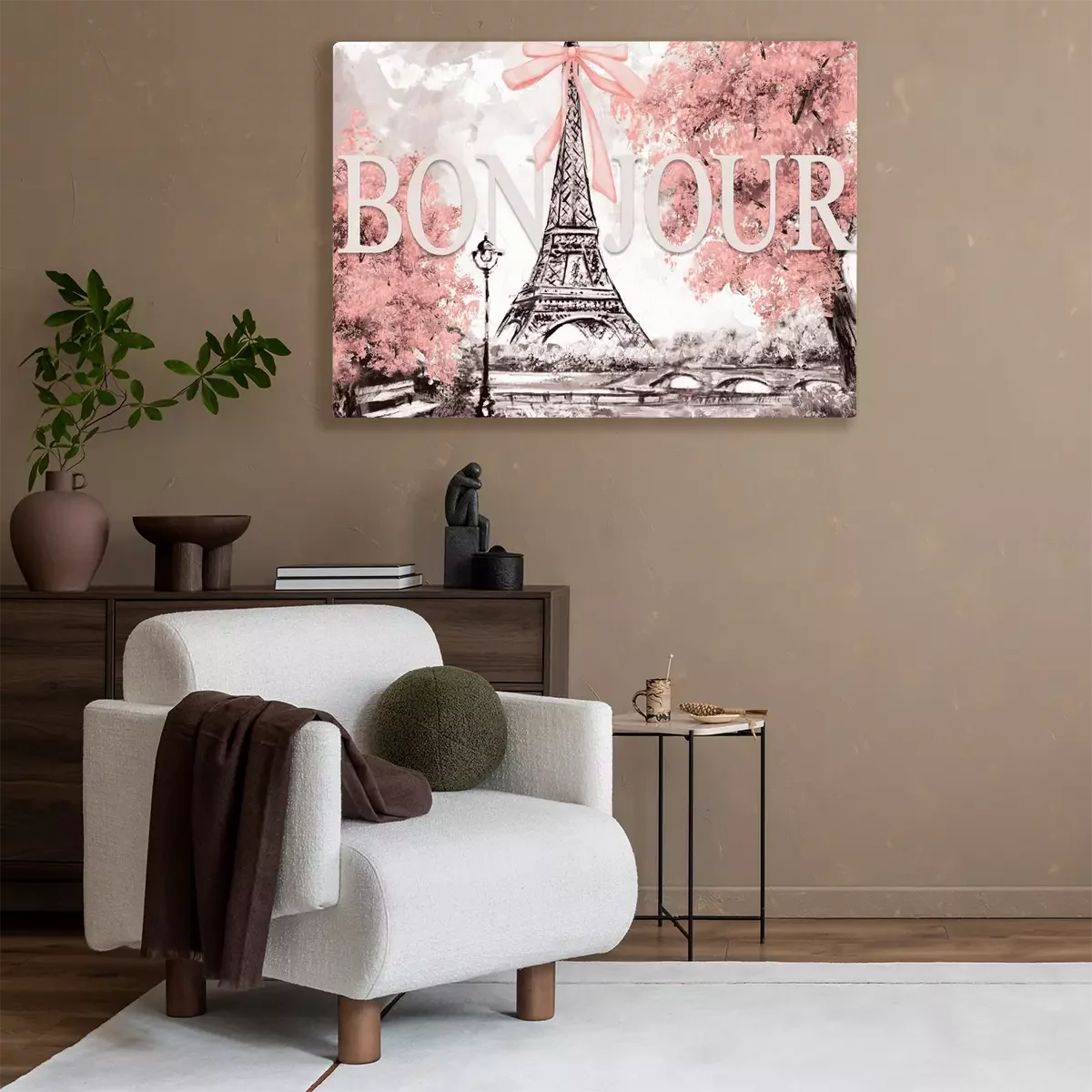 La tour eiffel entourée d'arbres en fleurs