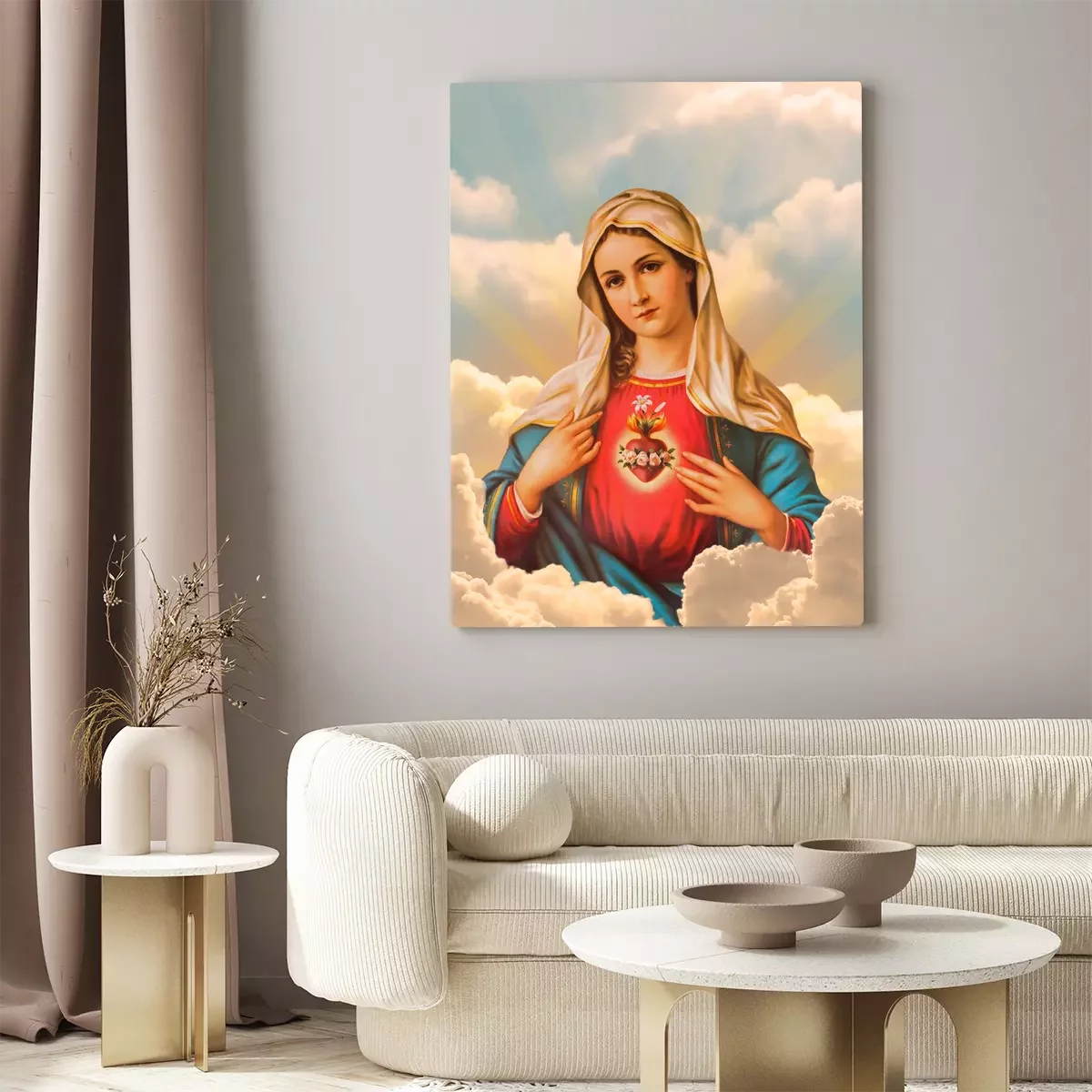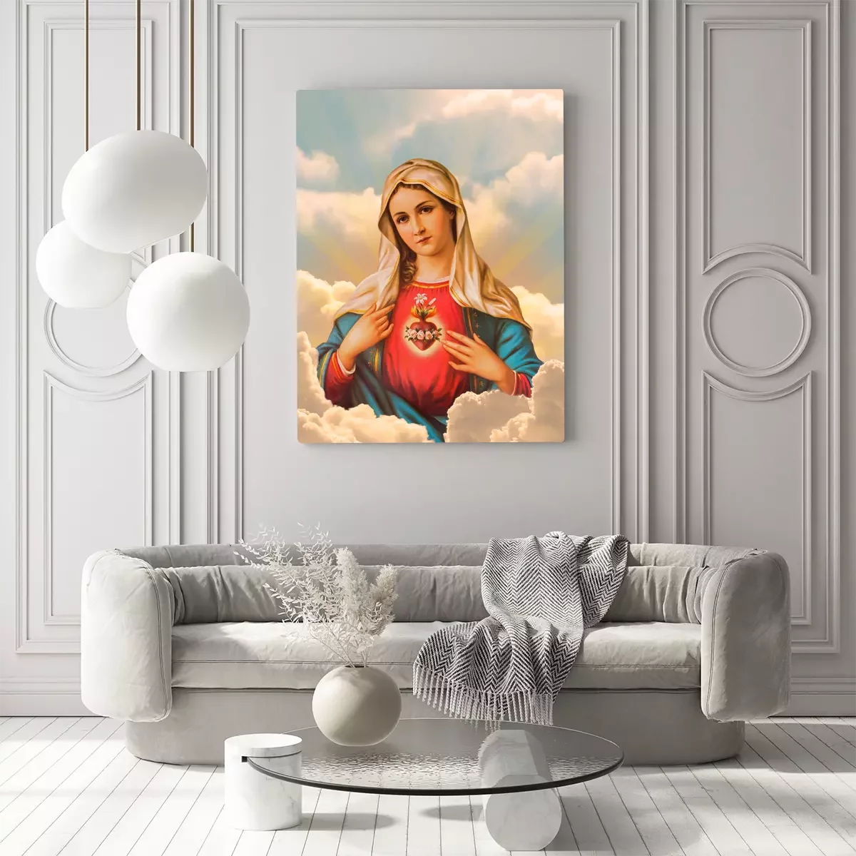 La vierge marie sur fond de nuages lumineux