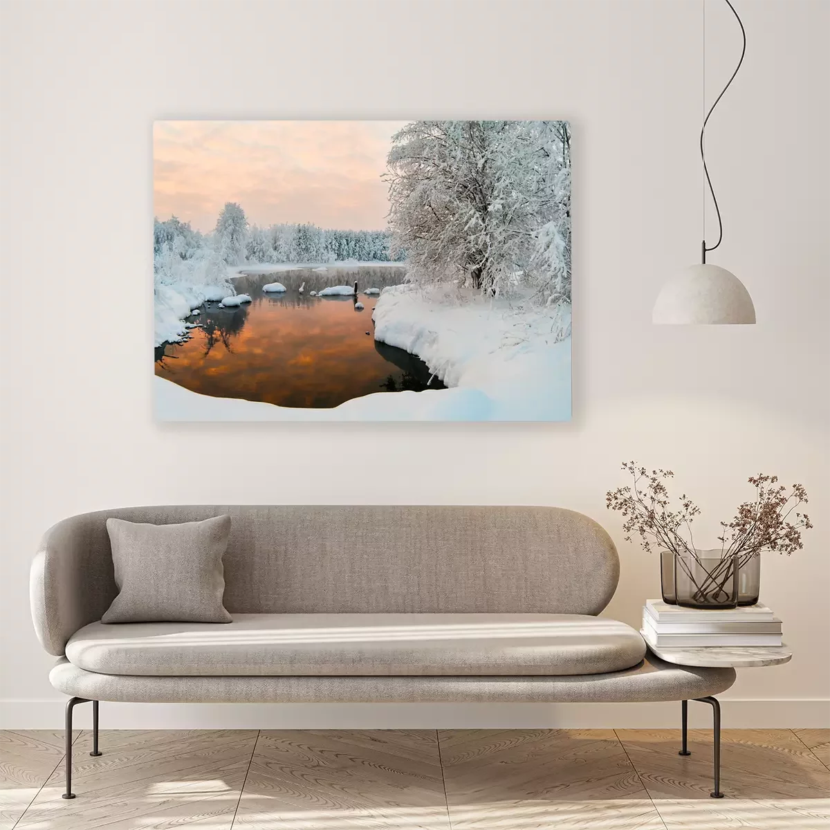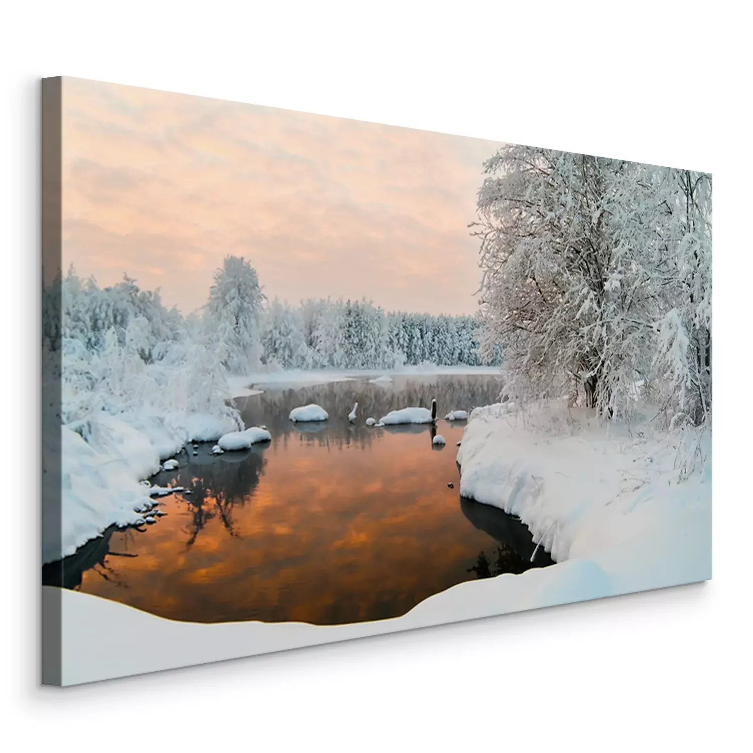 Tableau  Lac dégelé dans les forêts de l'hiver de la Carélie, en Russie