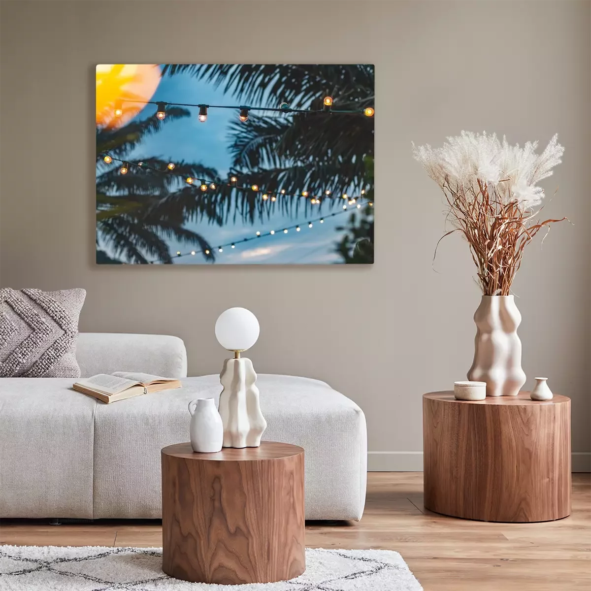 Tableau : Lampes parmi les feuilles de palmier