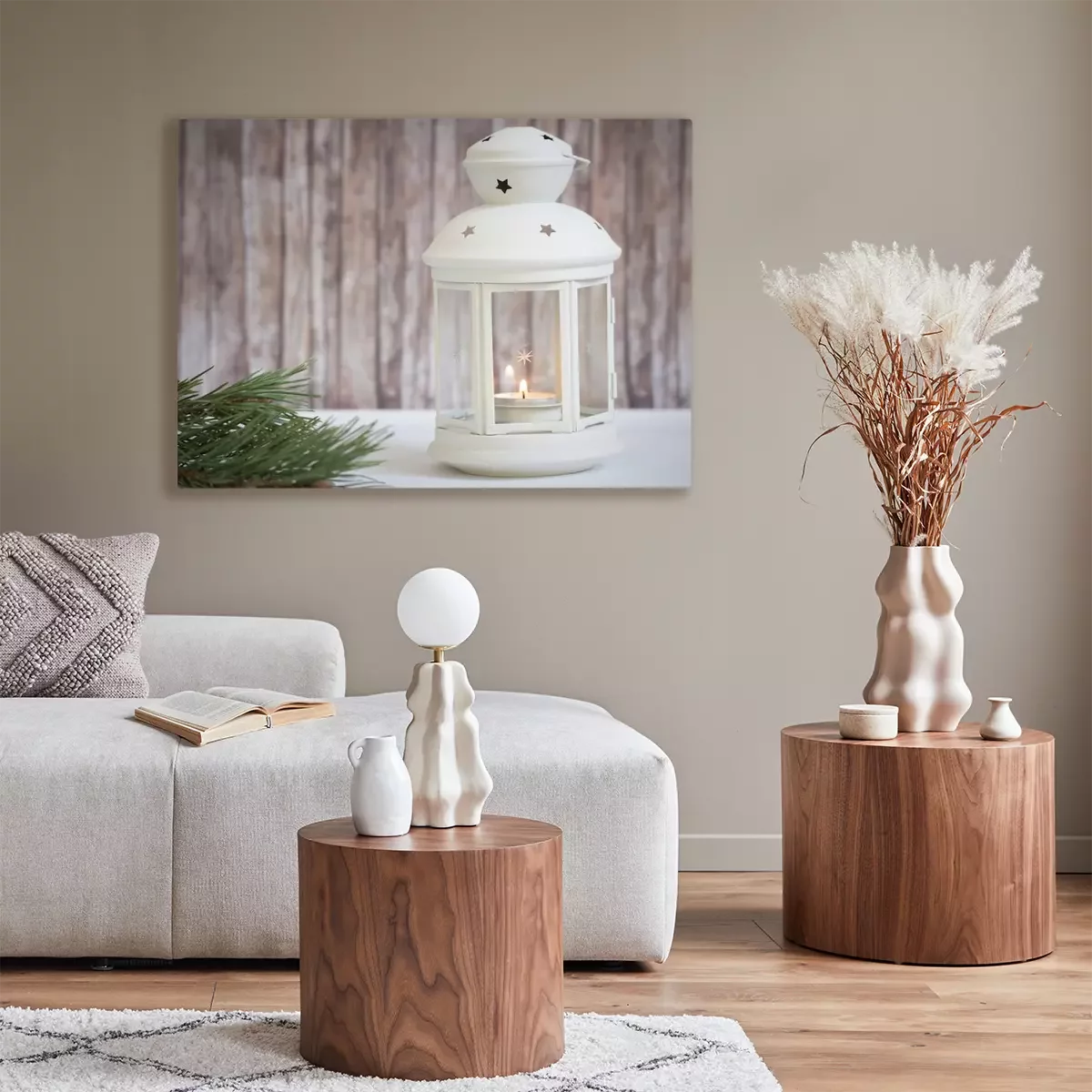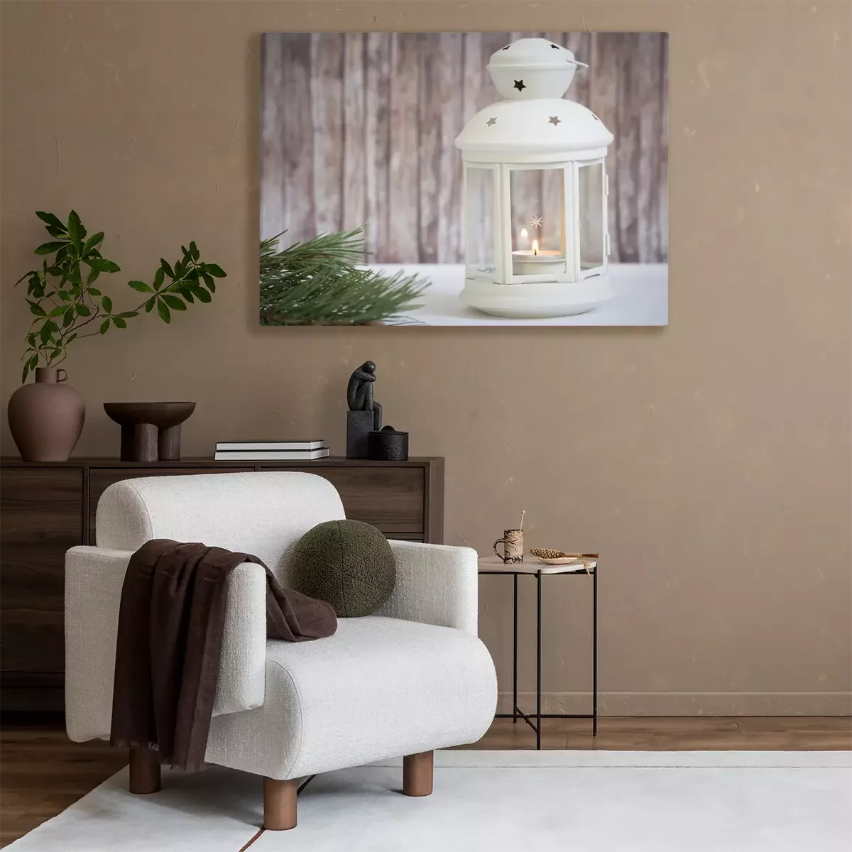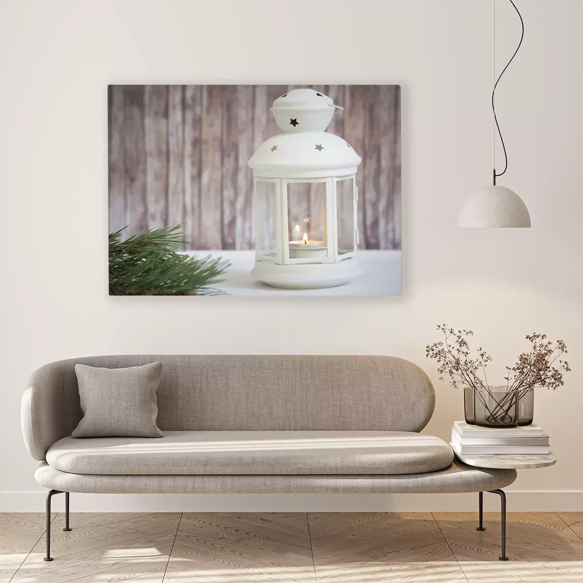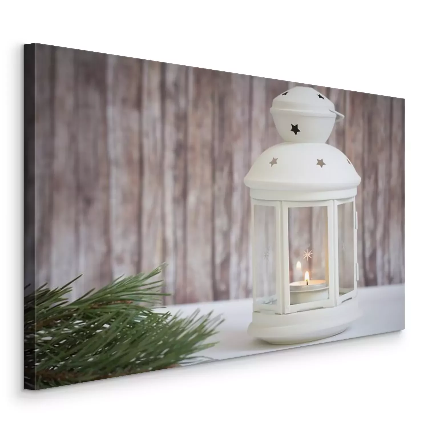 Tableau  lanterne avec bougie sur fond de bois