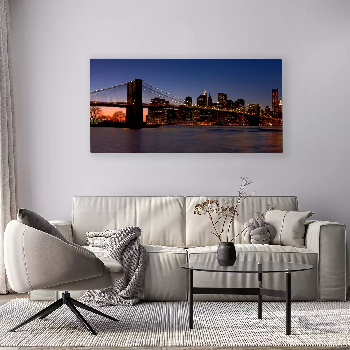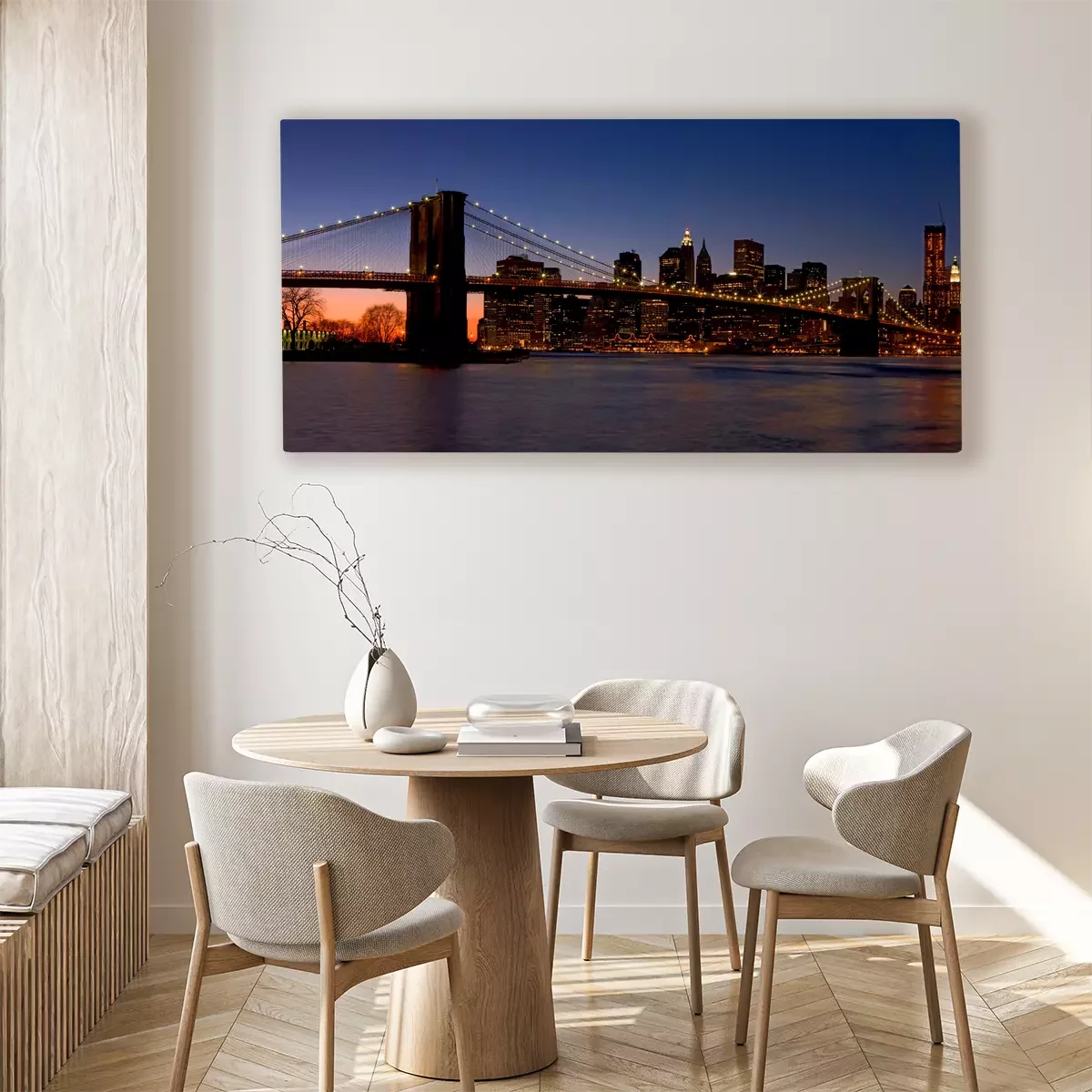 Le fleuve et le pont de brooklyn dans le paysage