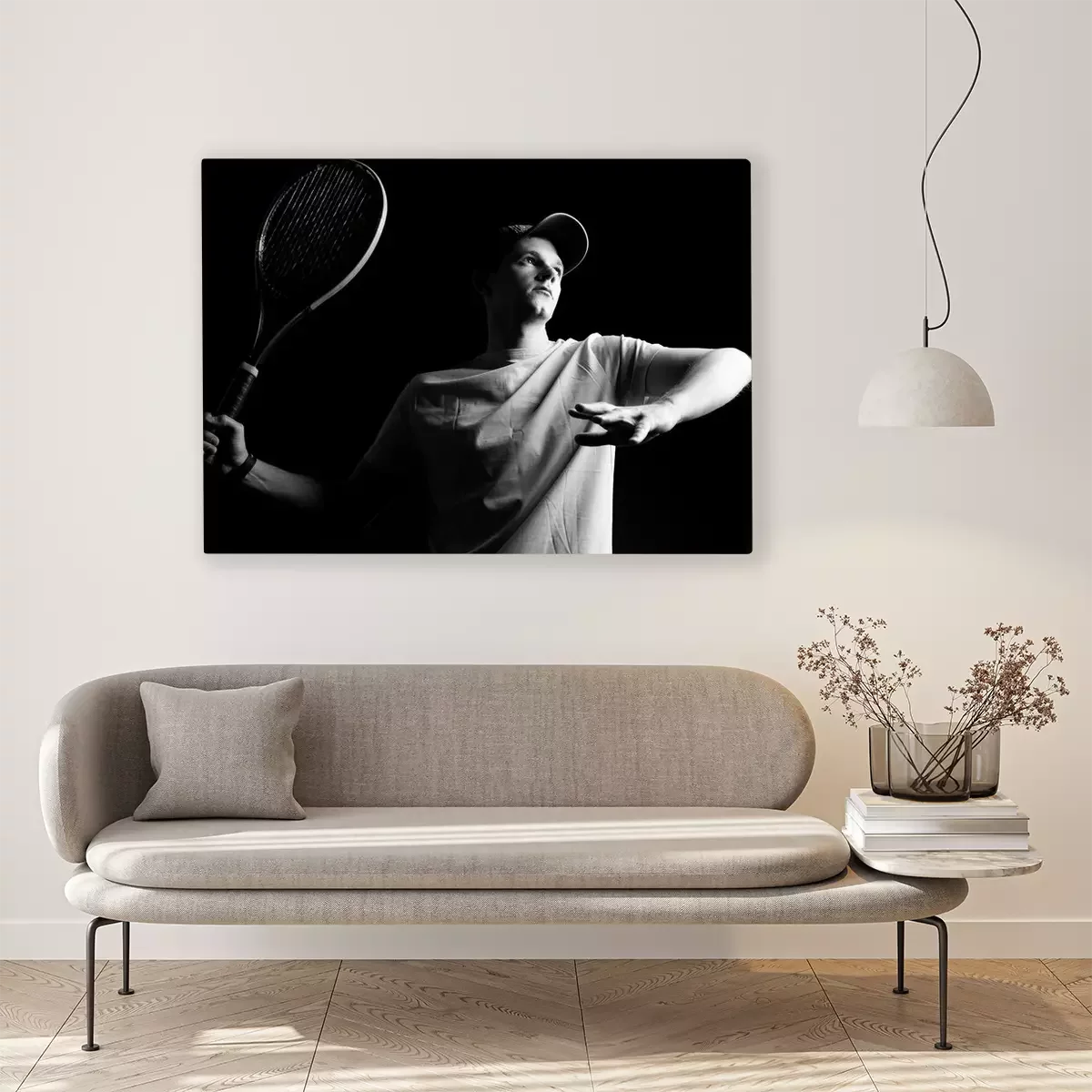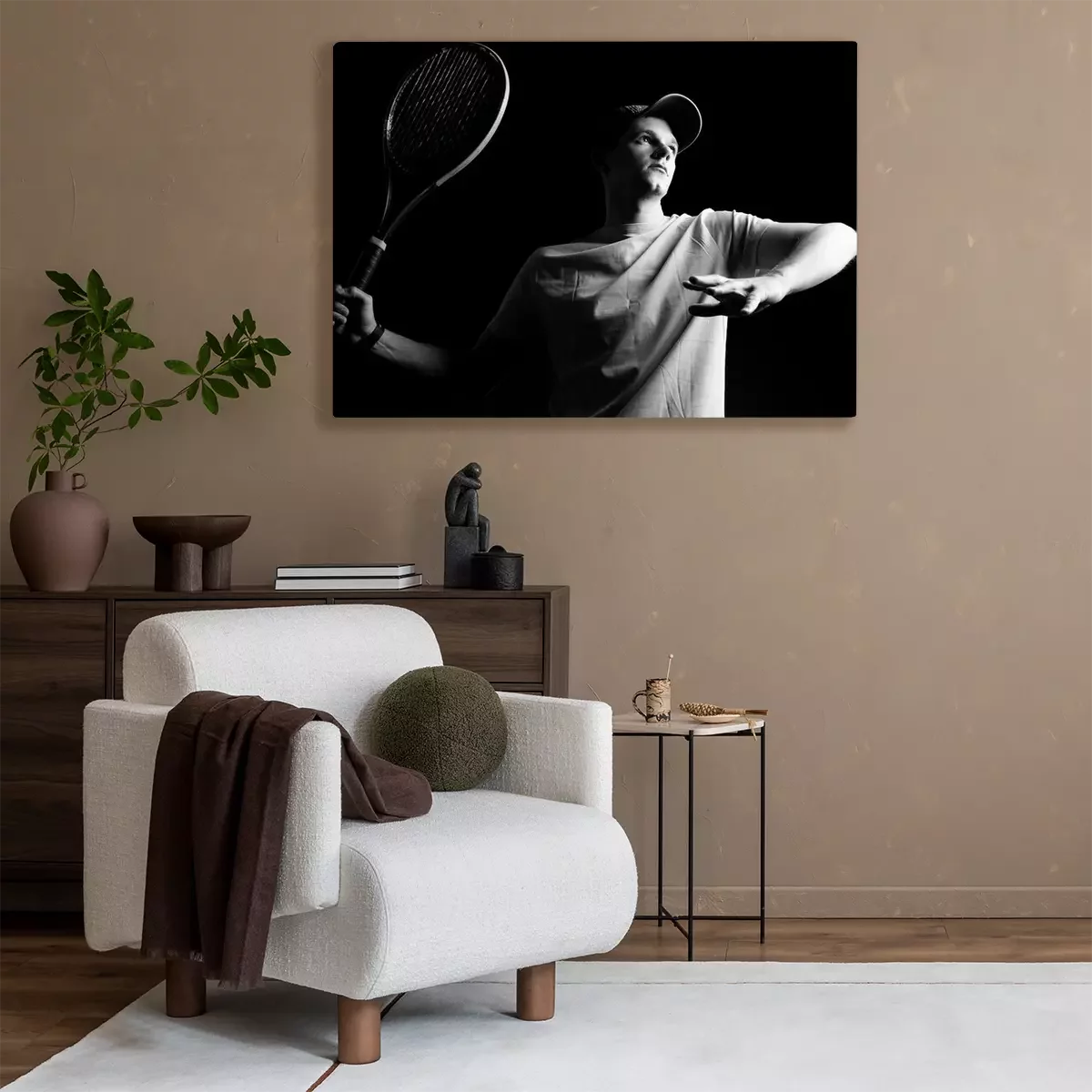 Tableau  Le joueur de tennis sur fond noir. Studio, coup