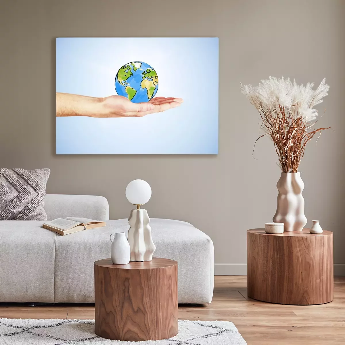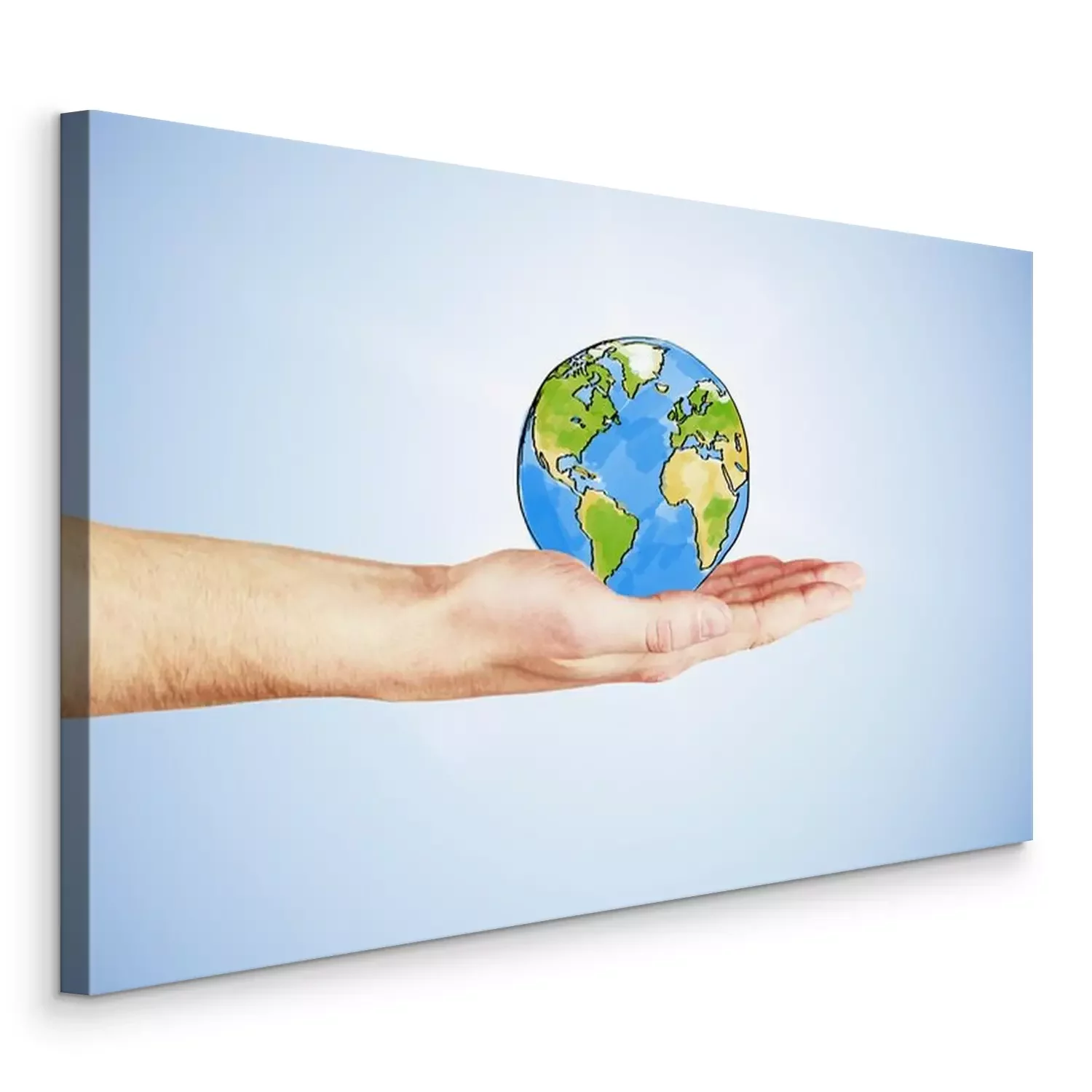 Tableau  Le monde entier dans votre concept de main avec la main et la terre dessinée p