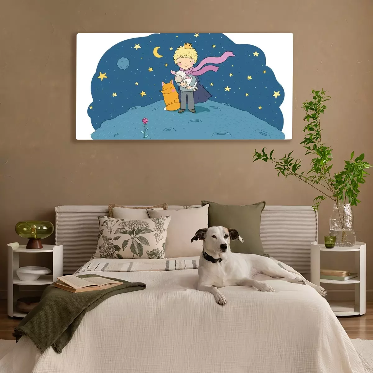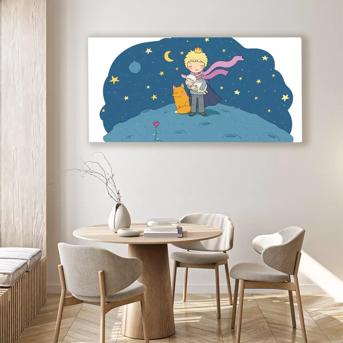 Tableau  Le petit Prince sur une planète parmi les étoiles