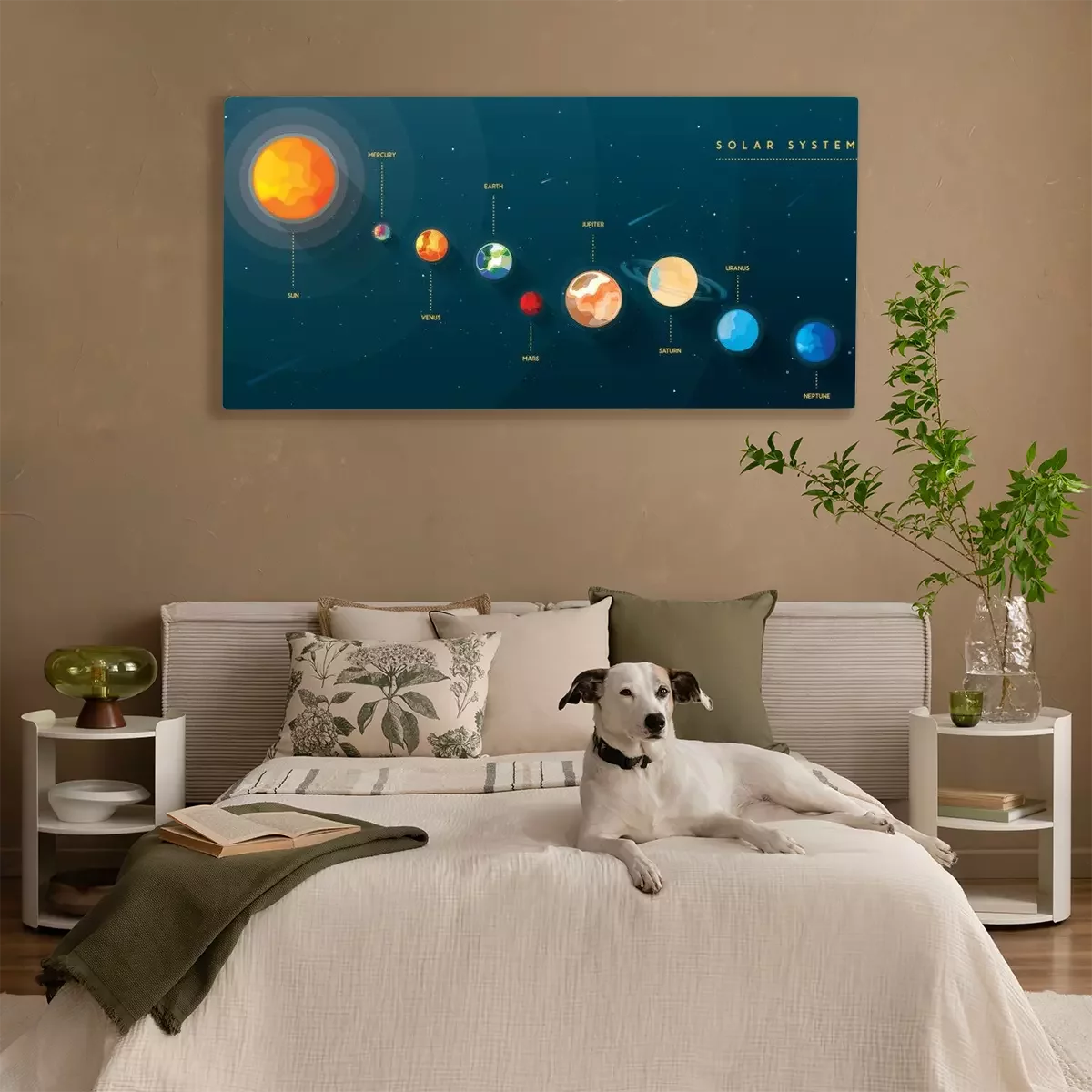 Tableau : Le système solaire sur fond d'univers