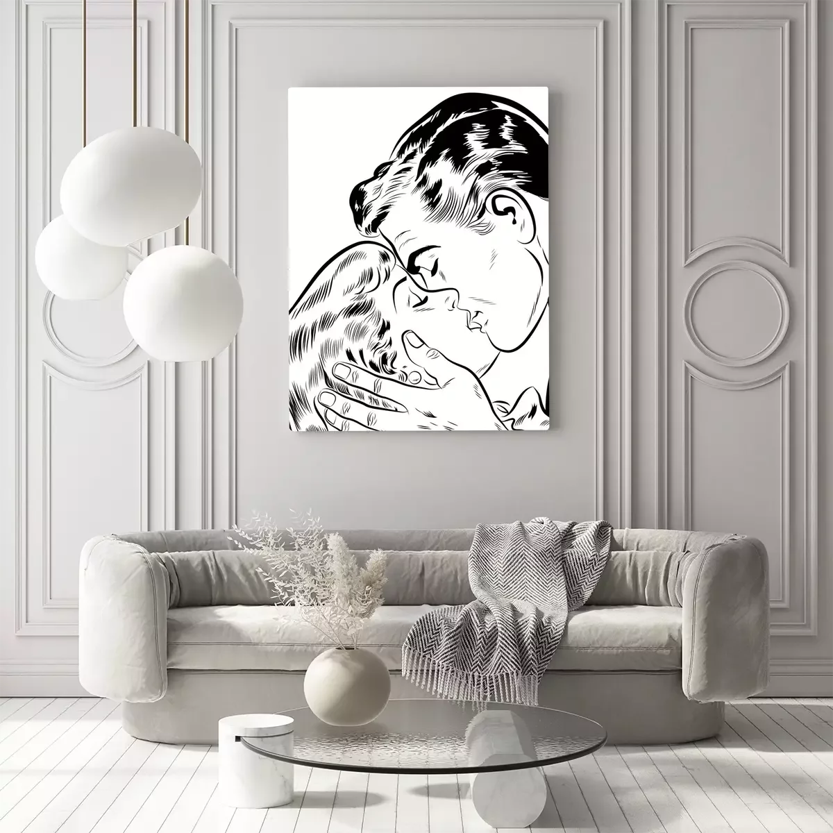 Tableau  Le visage d'une femme et d'un homme s'embrassant