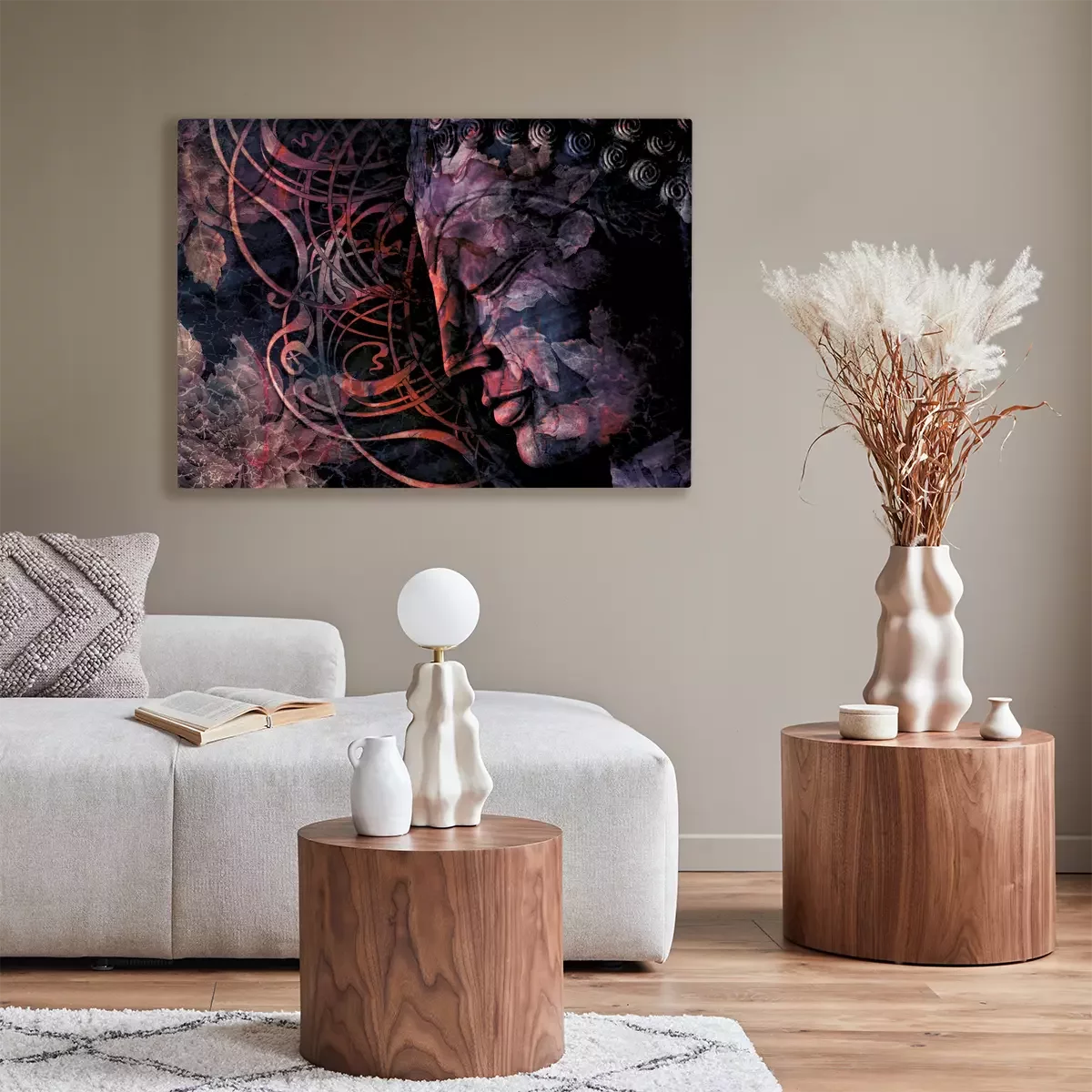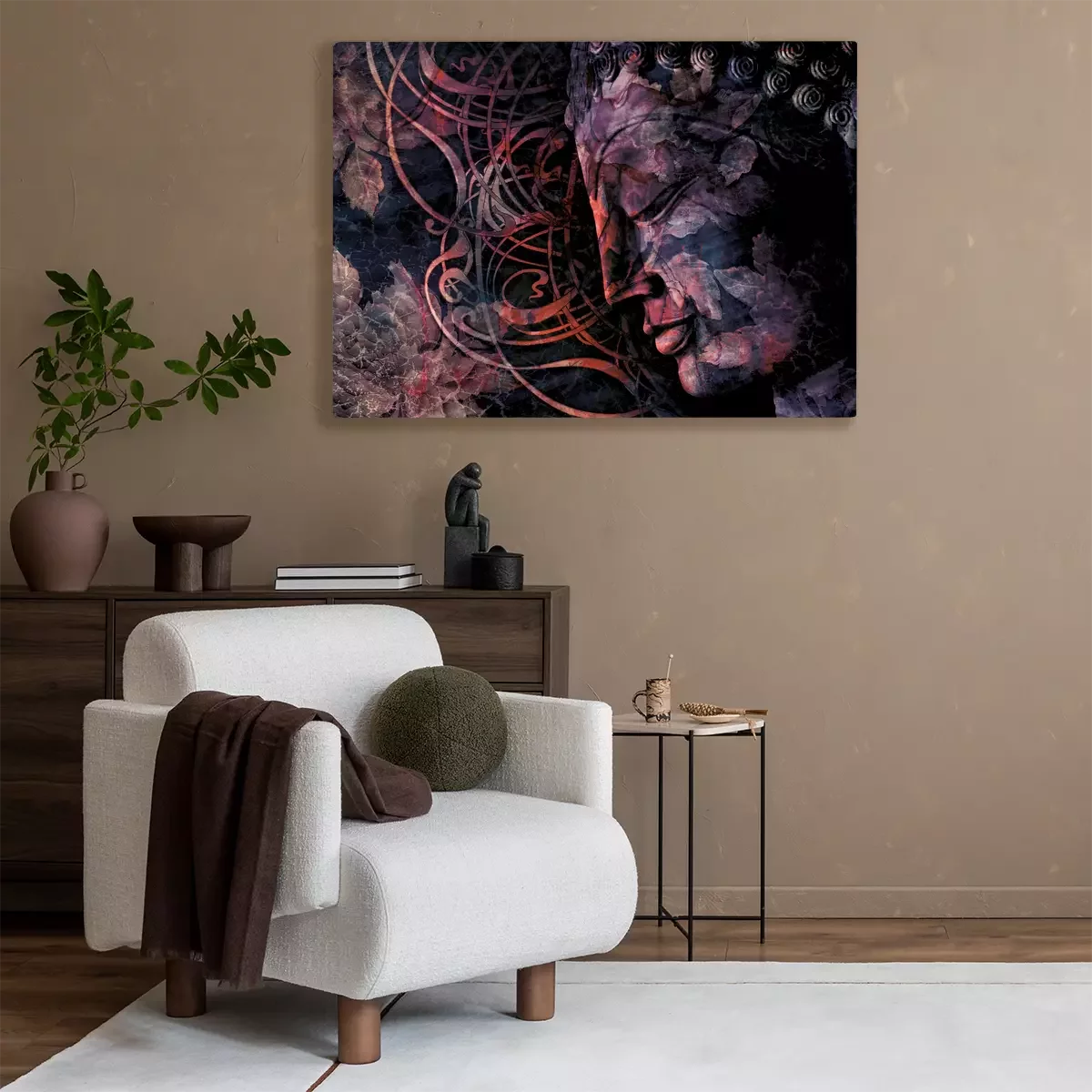 Le visage de bouddha parmi les ornements