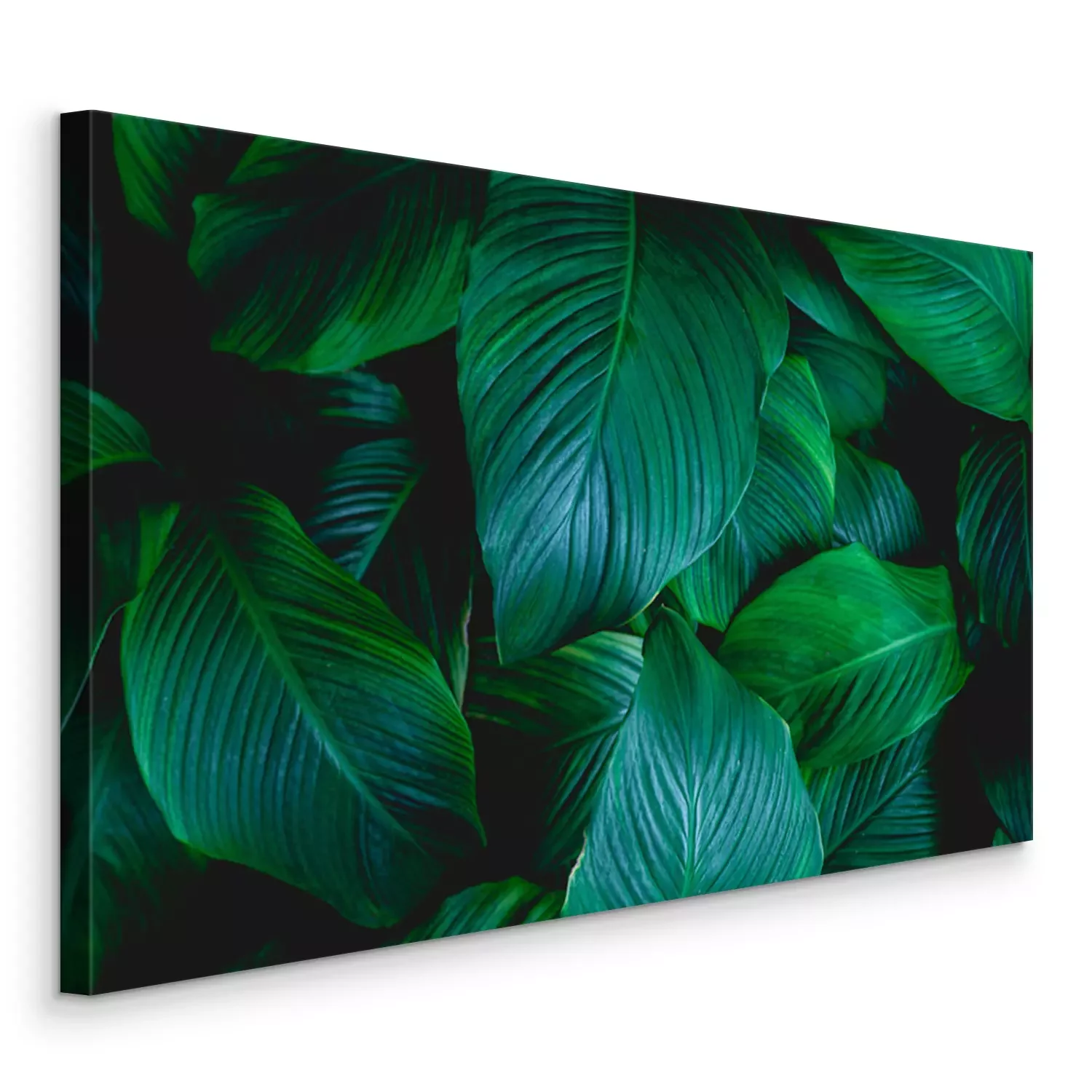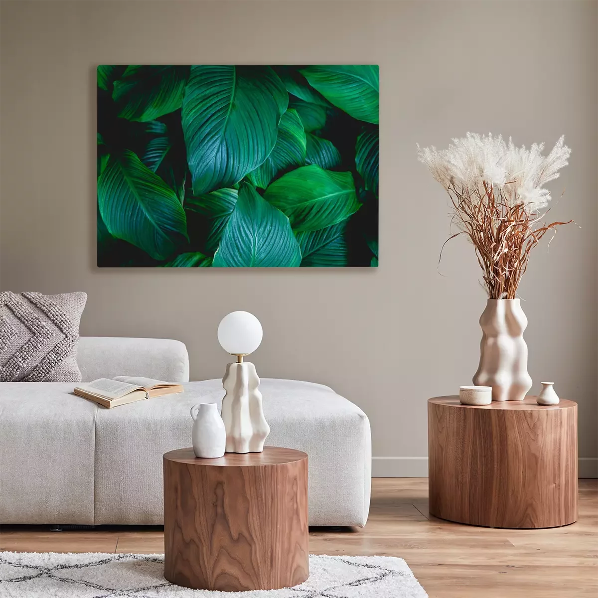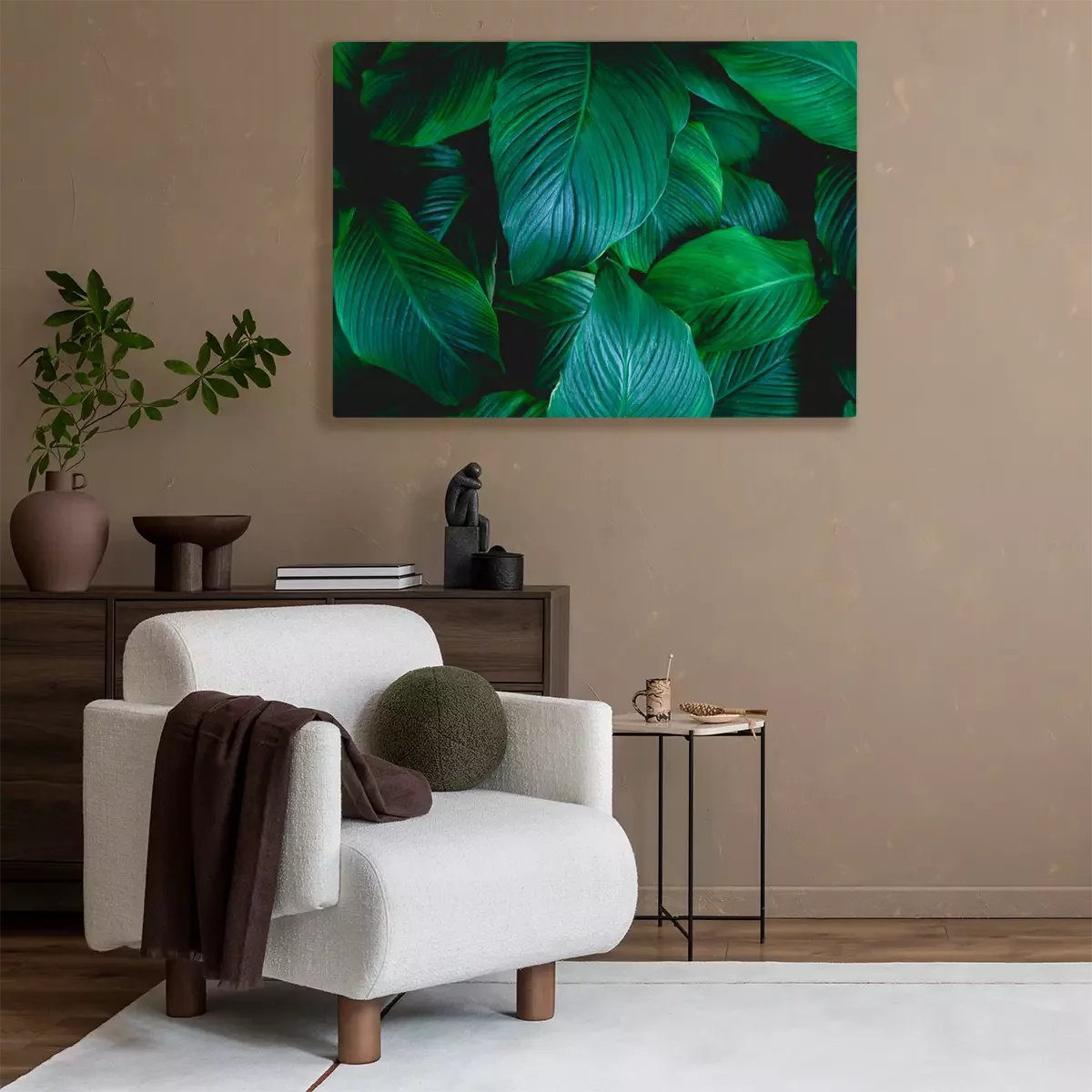 Tableau : leaves of Spathiphyllum cannifolium, abstract green texture, nature background, tropical leaf