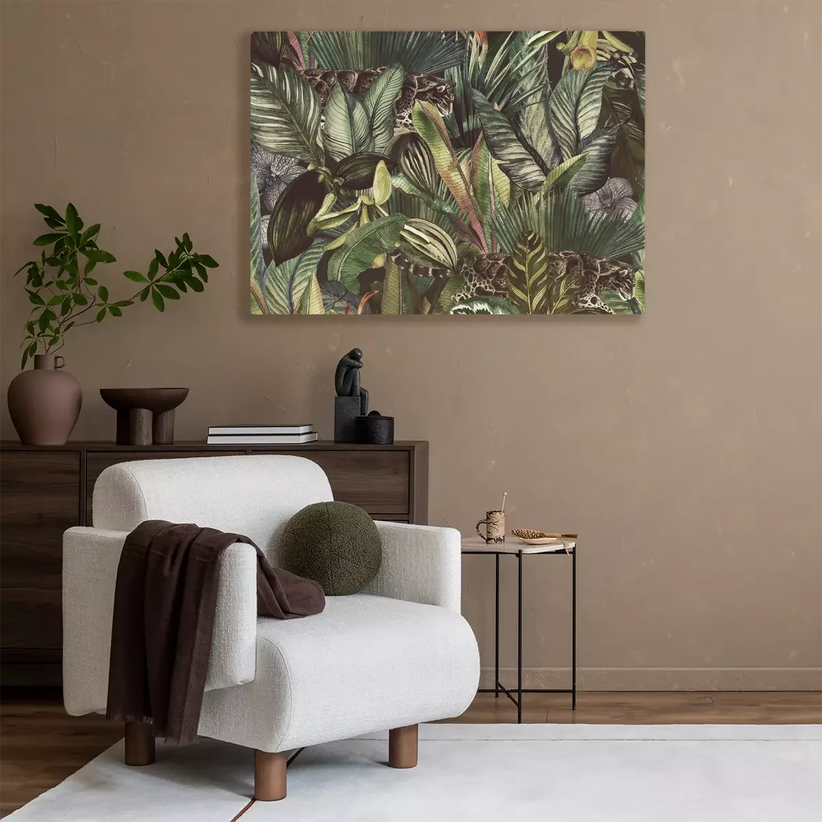 Motif aquarelle - chat sauvage et feuilles tropicales