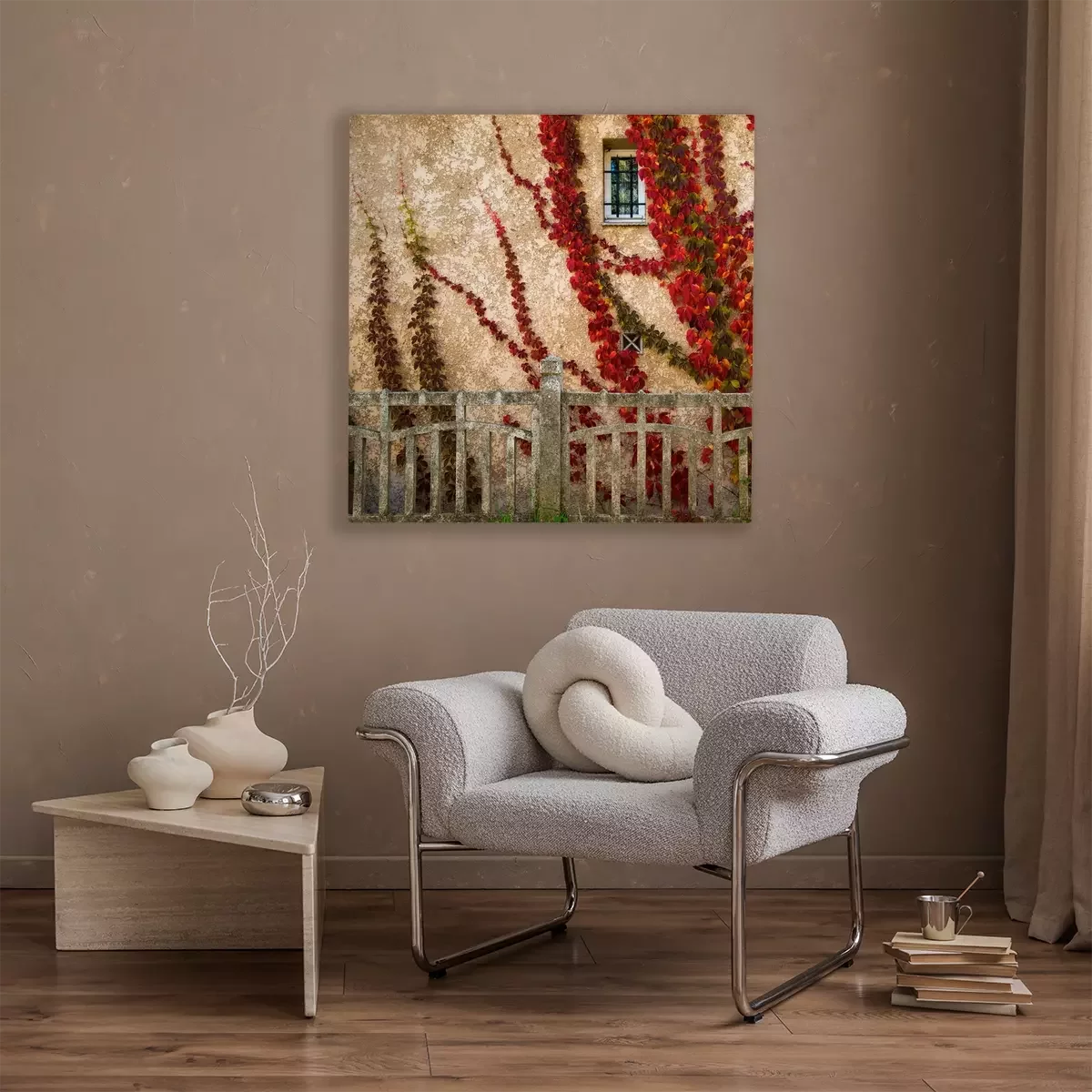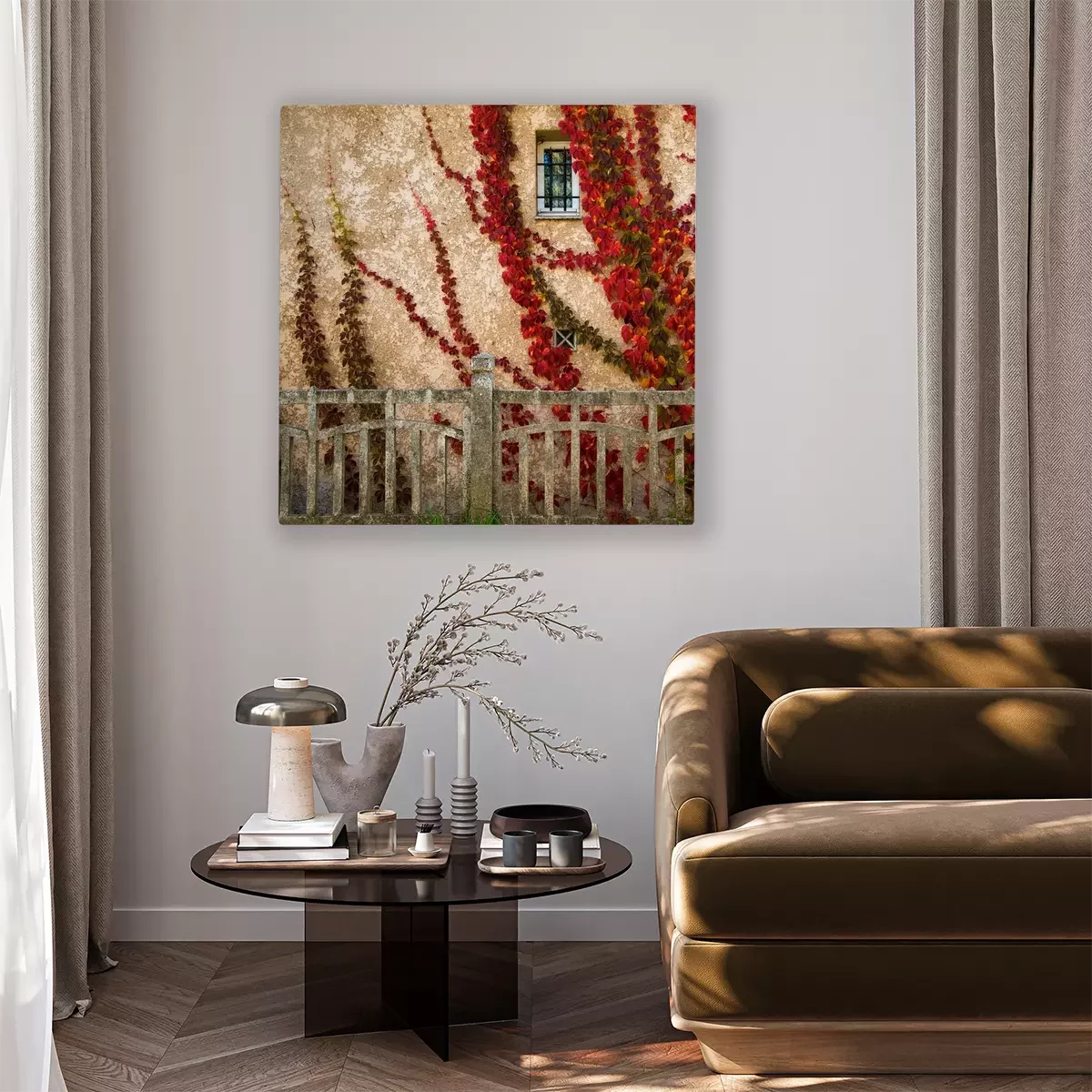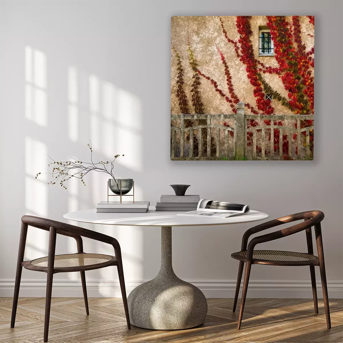 Tableau  Les belles feuilles rouges sur mur de la maison