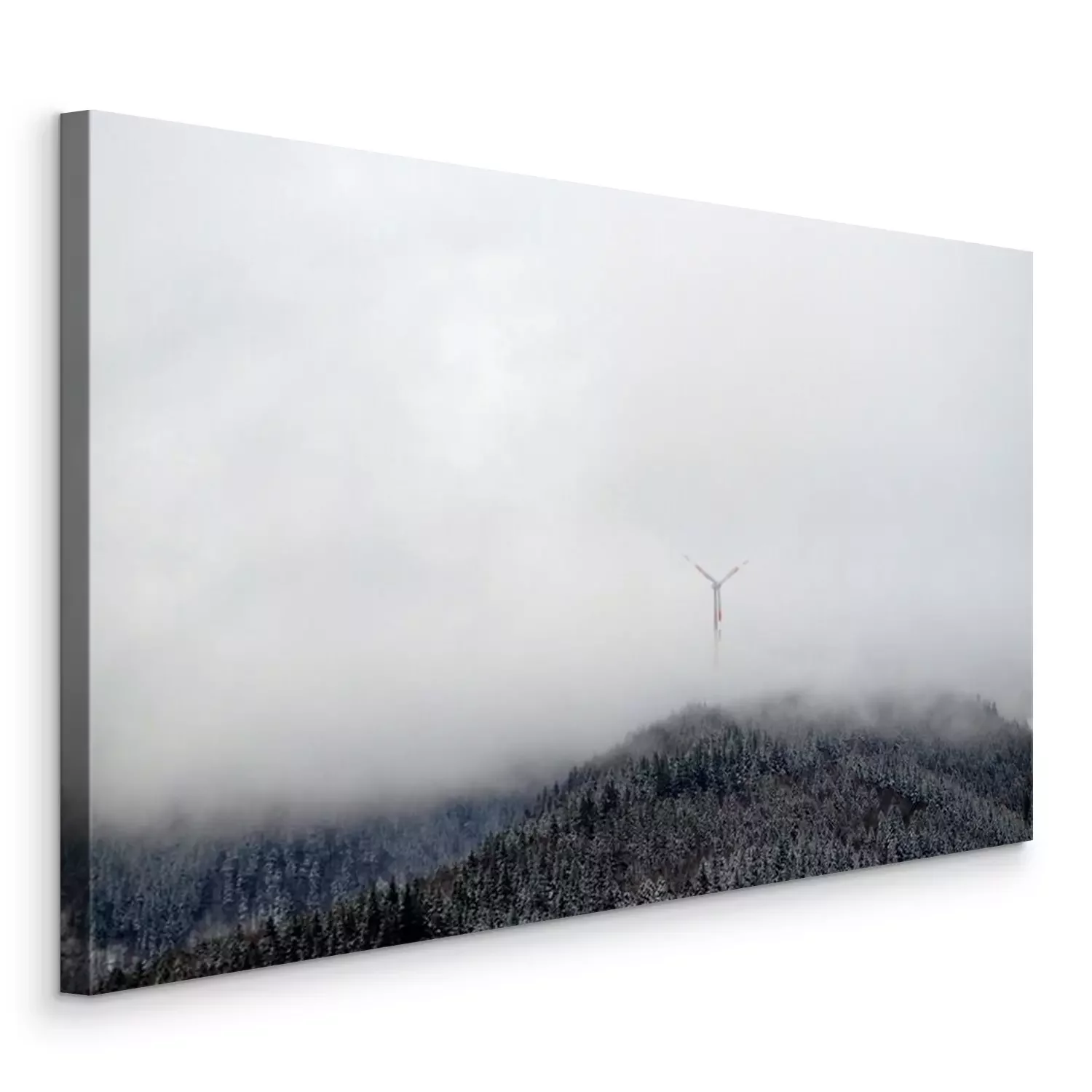 Tableau  Les éoliennes sur le tapis de raquette en bois dans le brouillard
