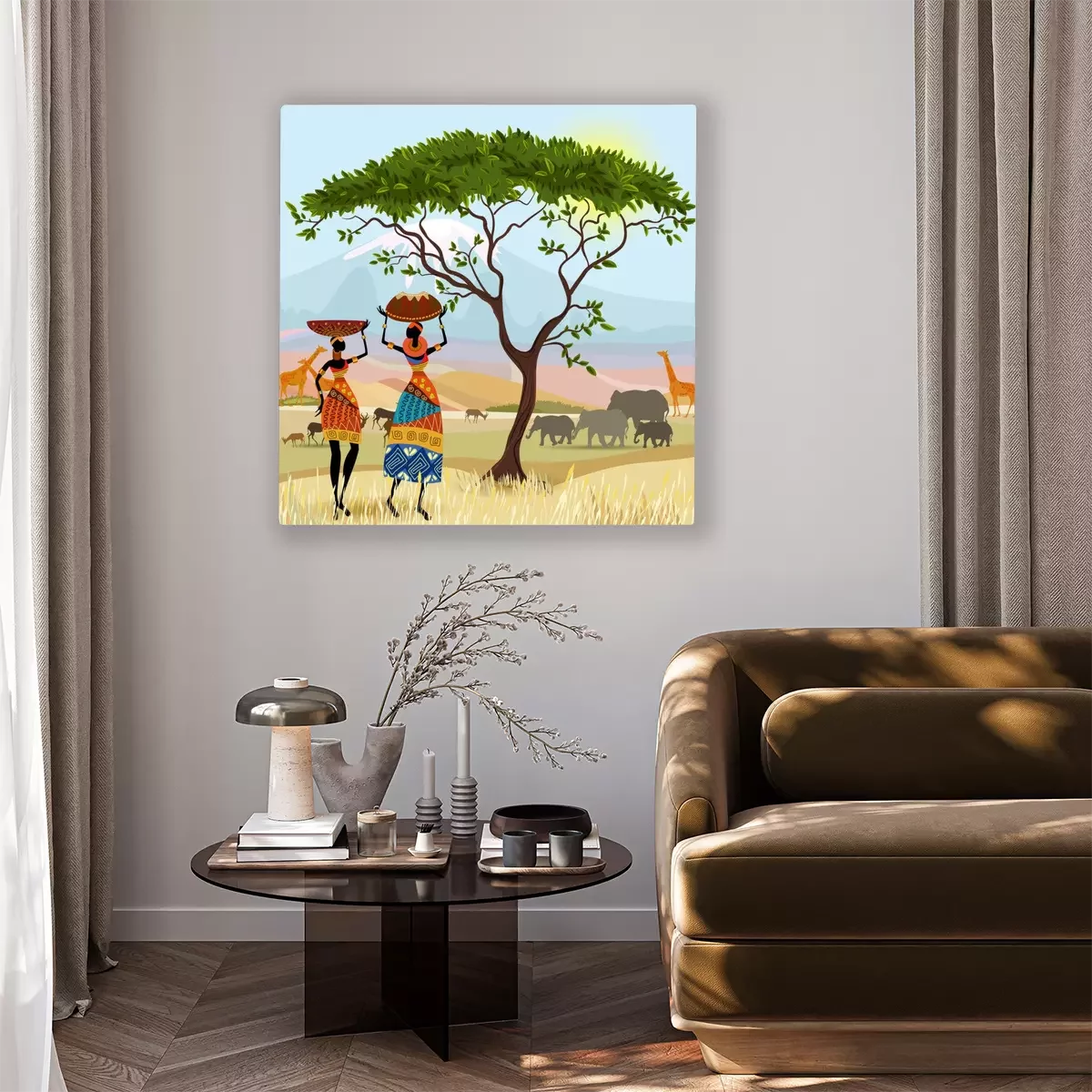 Tableau  Les femmes africaines dans le paysage de montagne