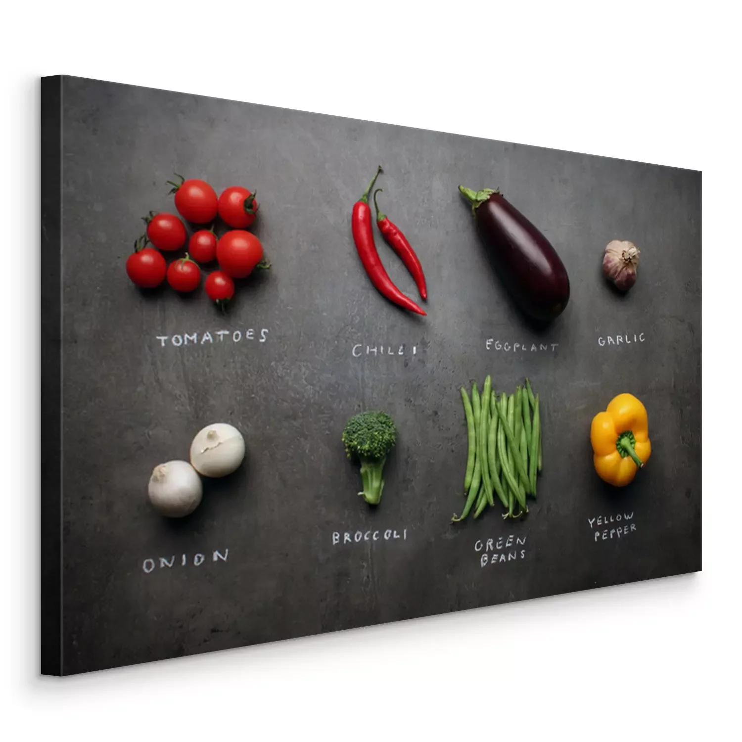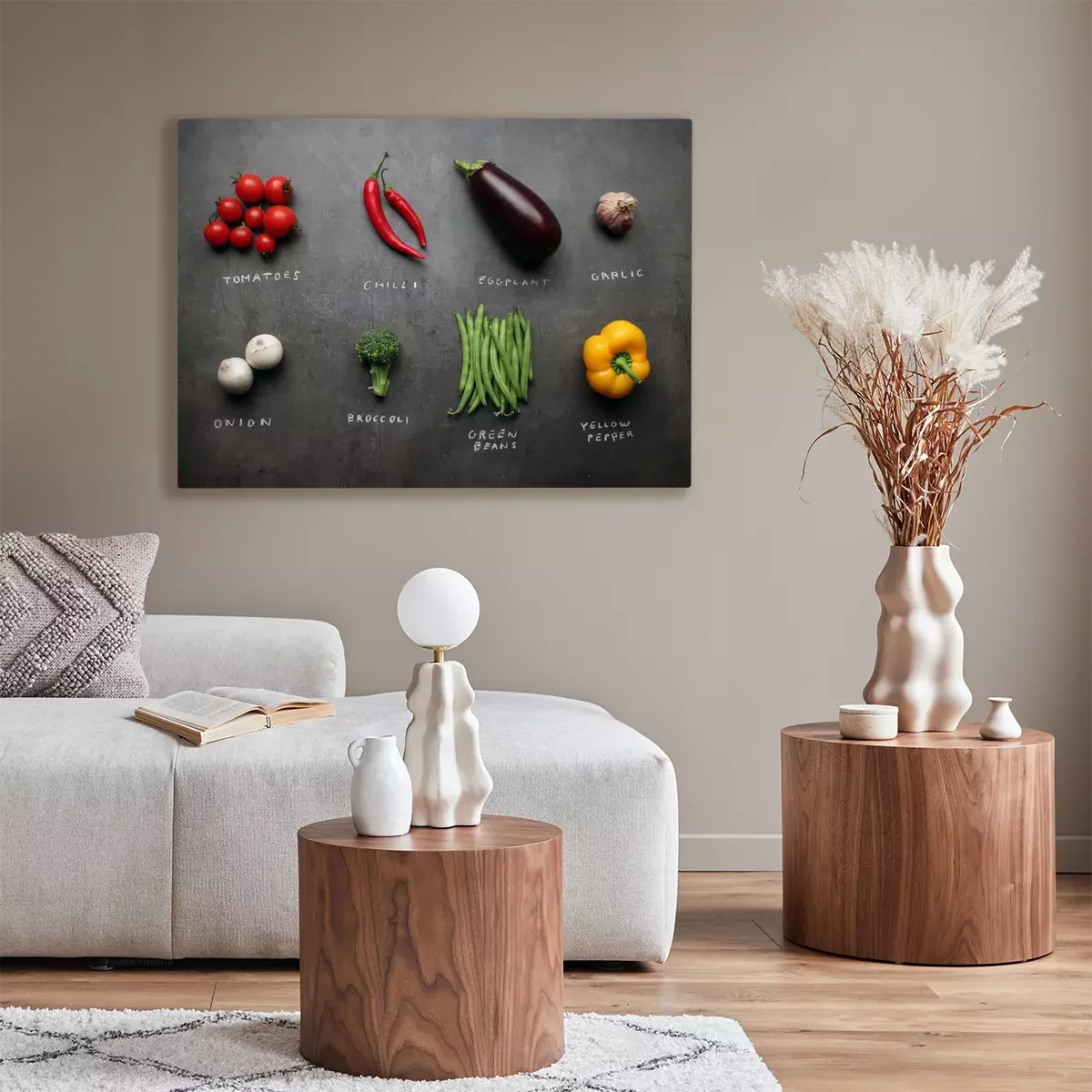 Tableau  Les légumes frais avec des signes calcaires gris sur la table de cuisine