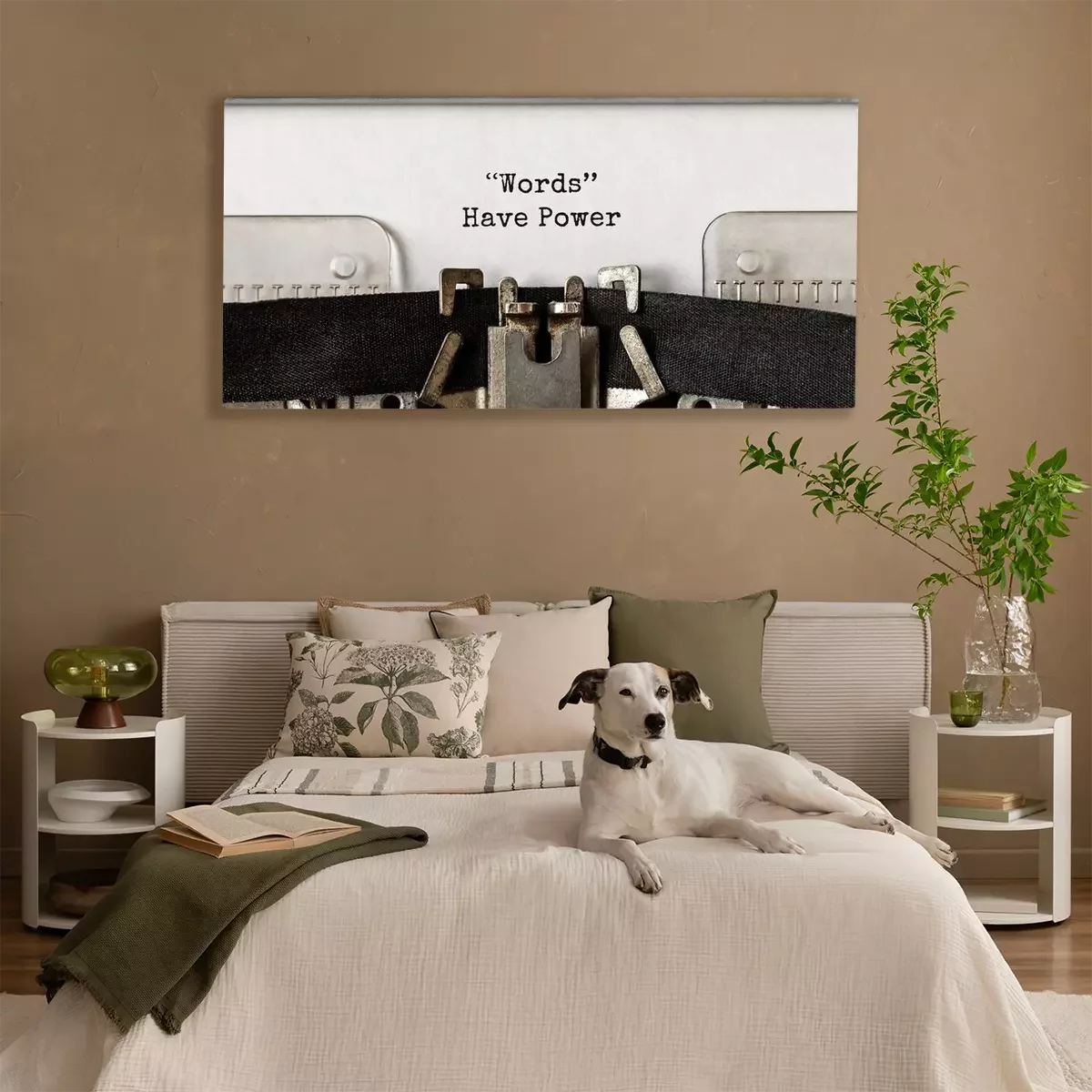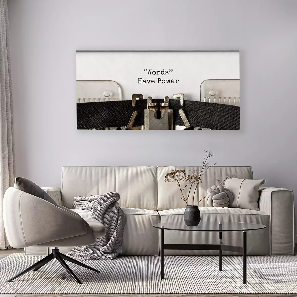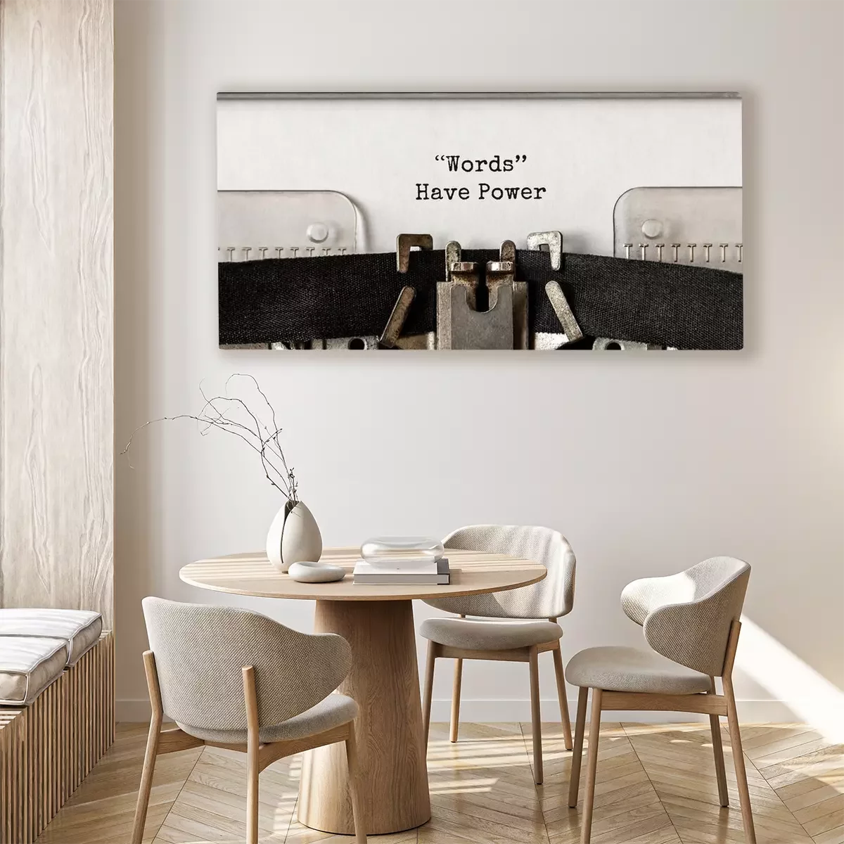 Tableau  Les mots de texte ont le pouvoir tapé sur la machine à écrire rétro