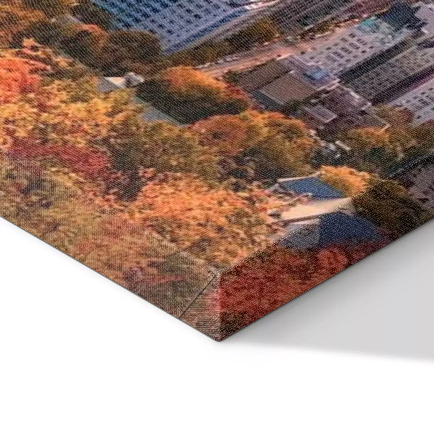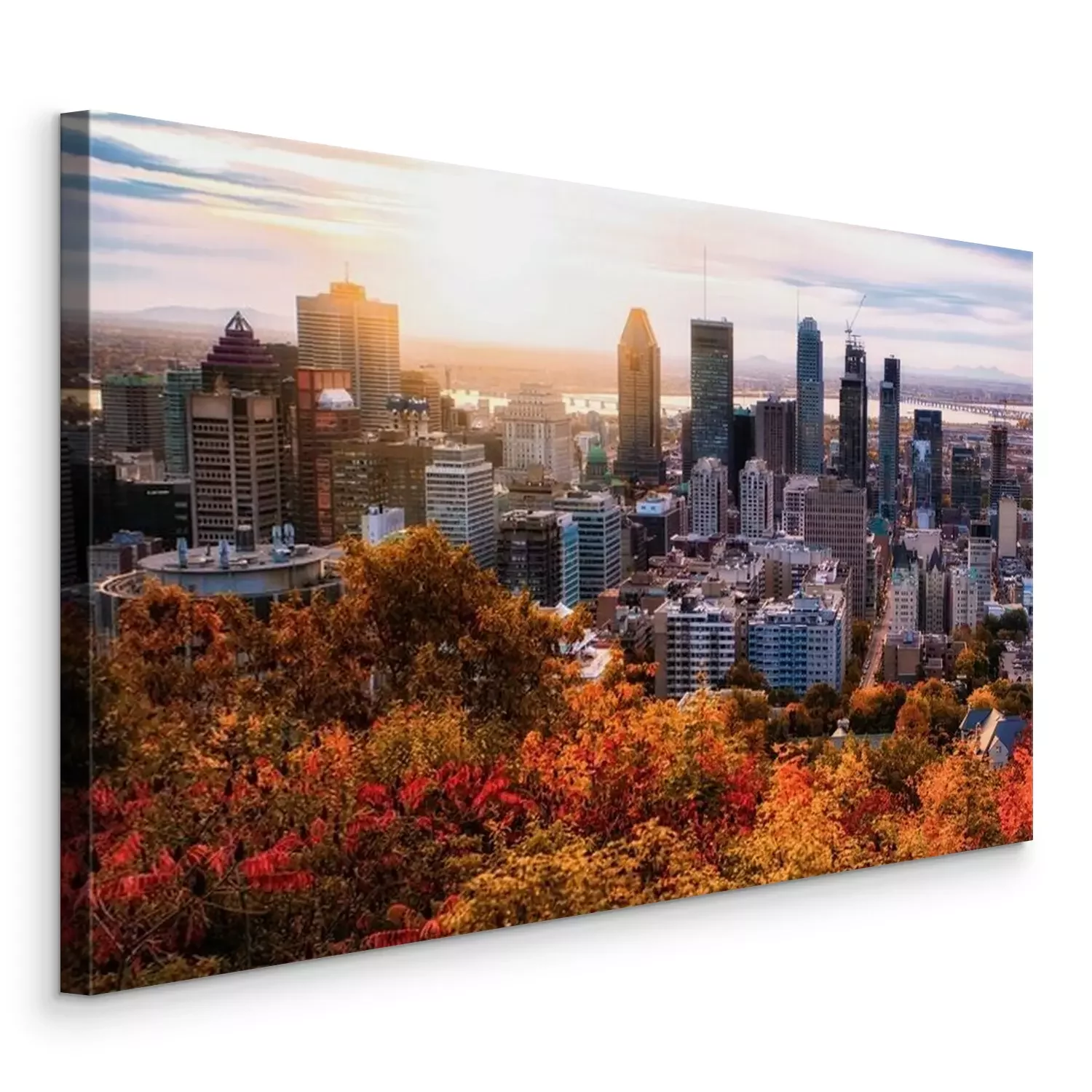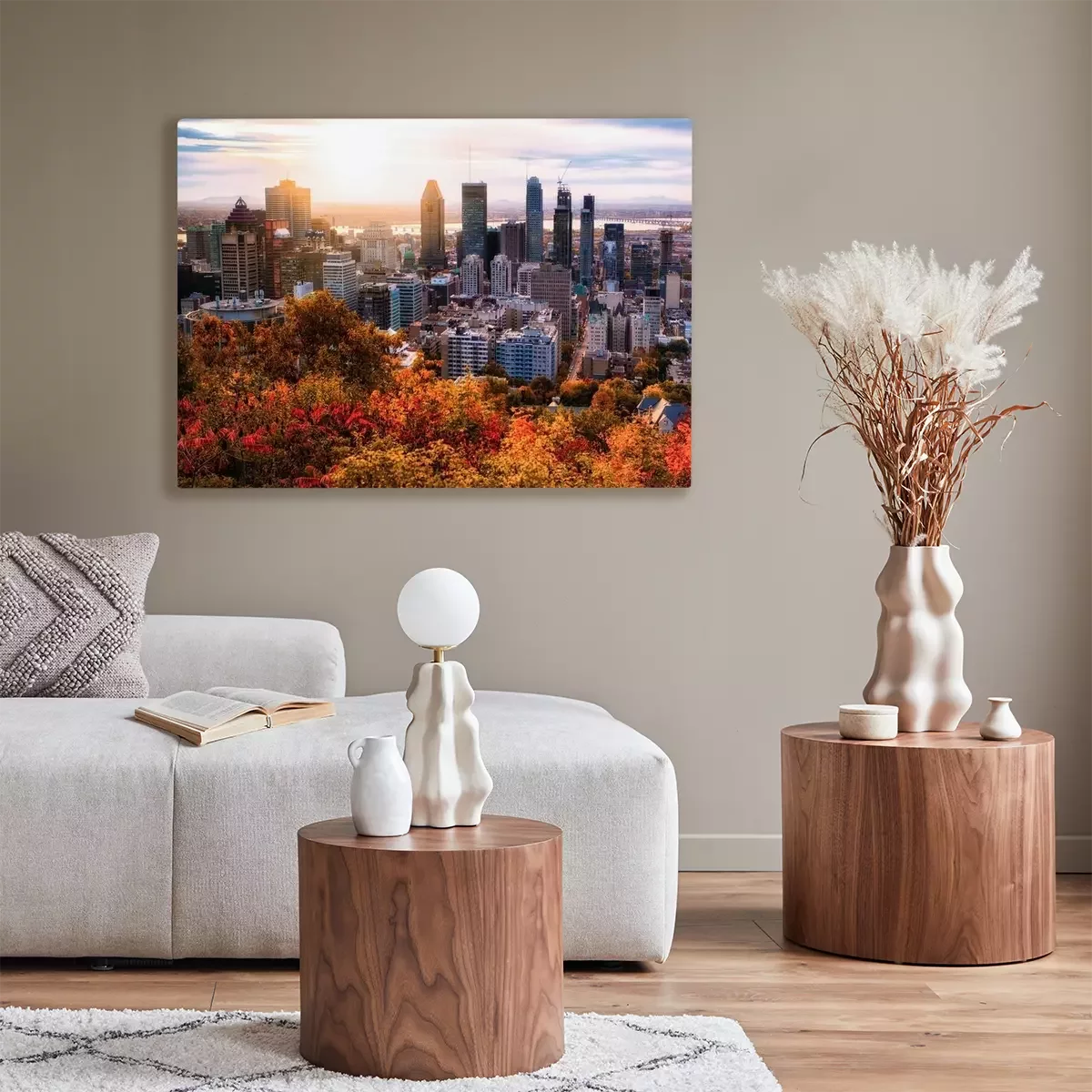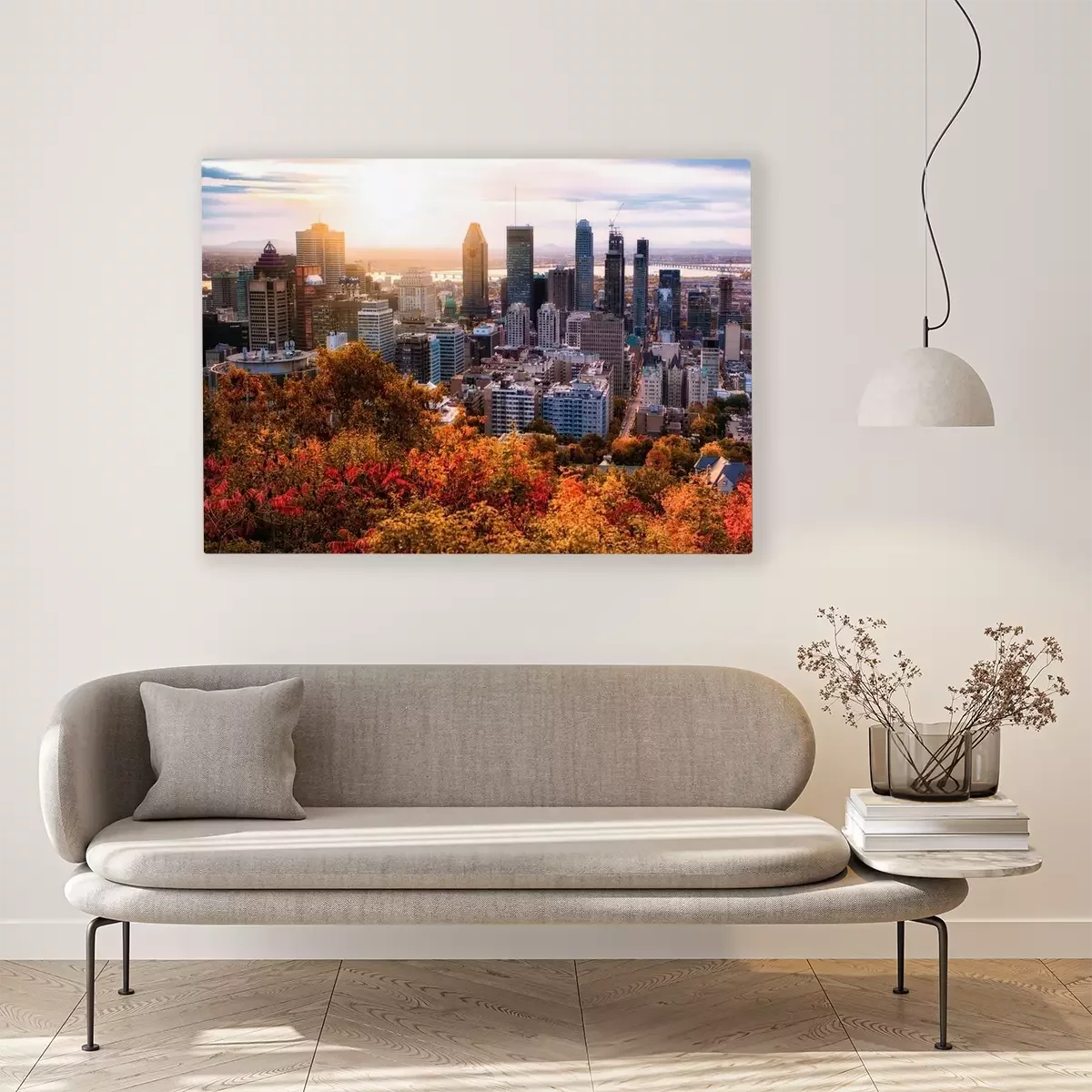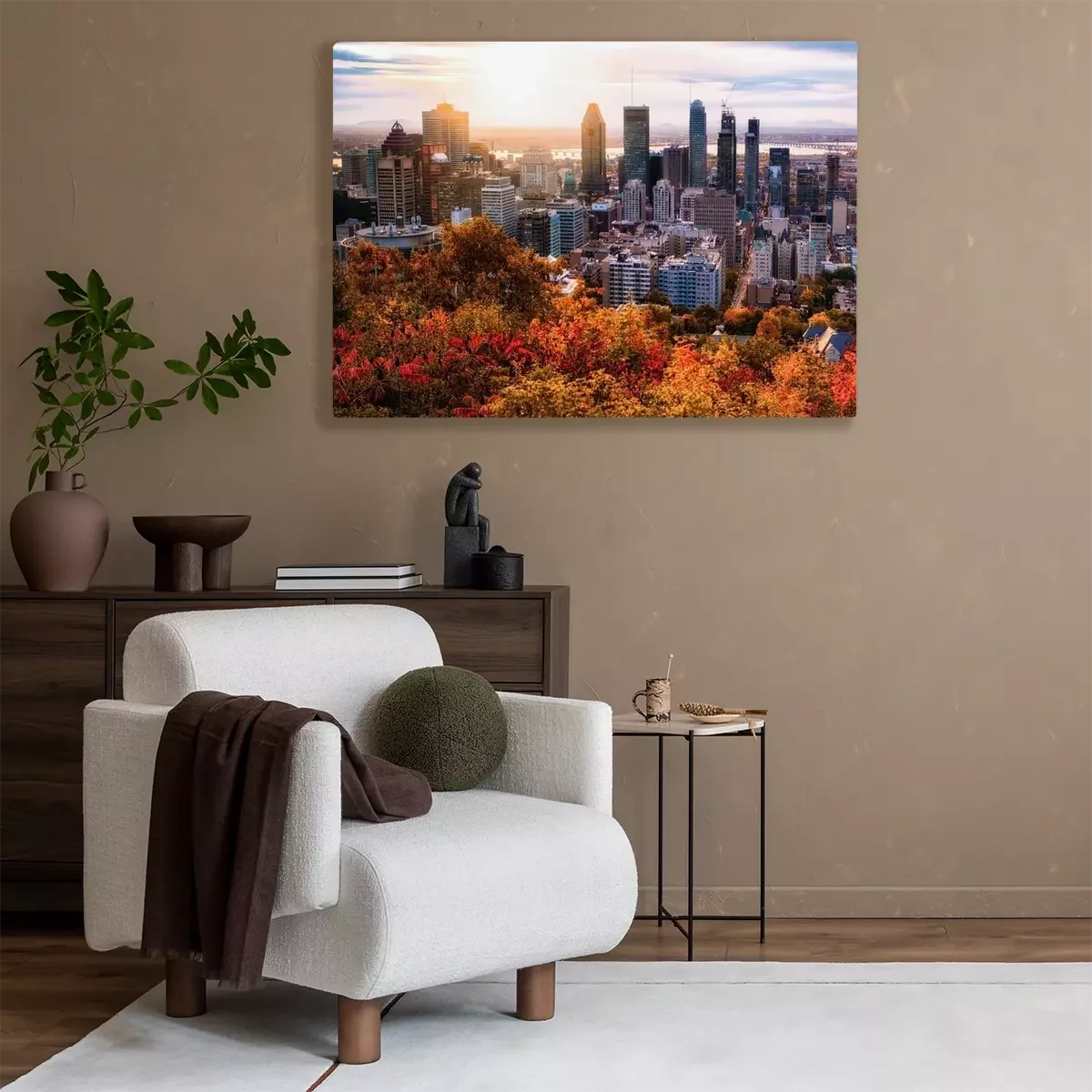 Tableau  Lever de soleil de Montréal avec des feuilles colorées