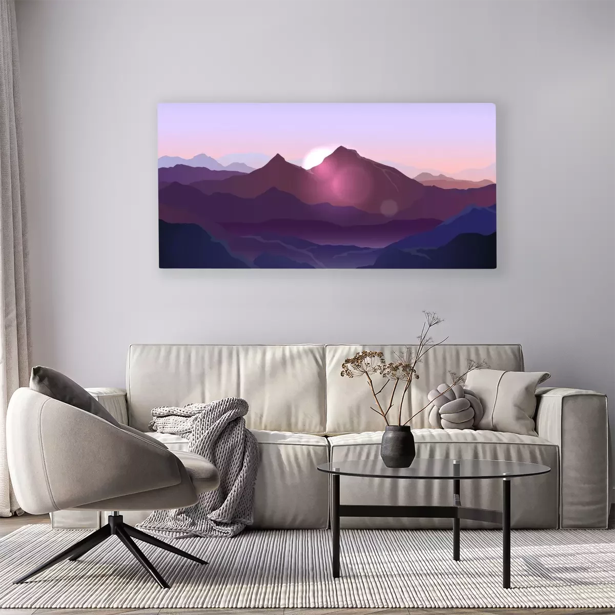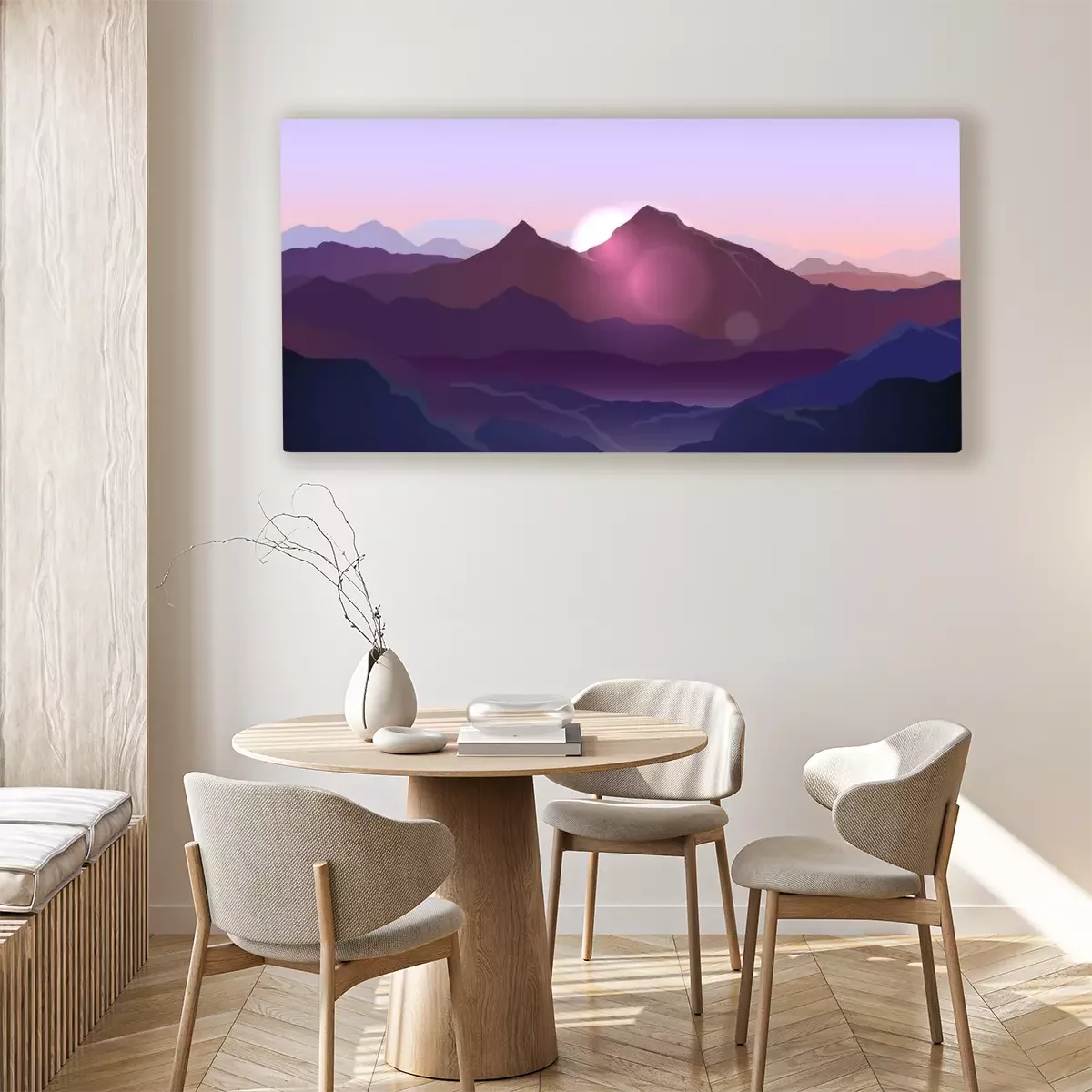 Tableau : Lever de soleil derrière les montagnes