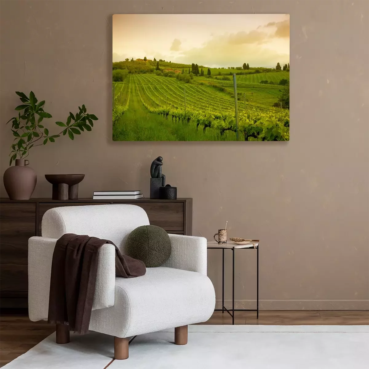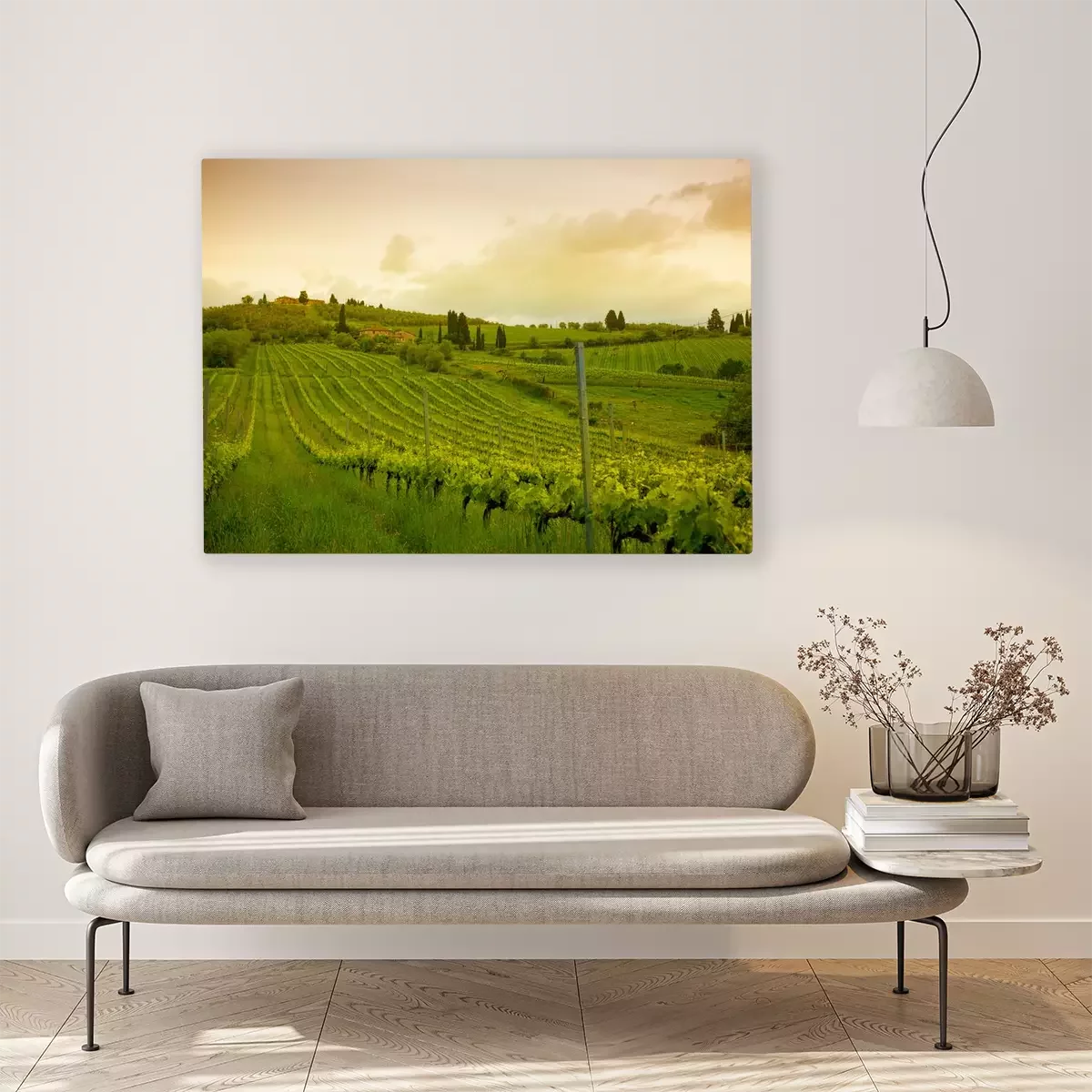 Tableau : Lever de soleil sur les vignes, Toscane, Italie