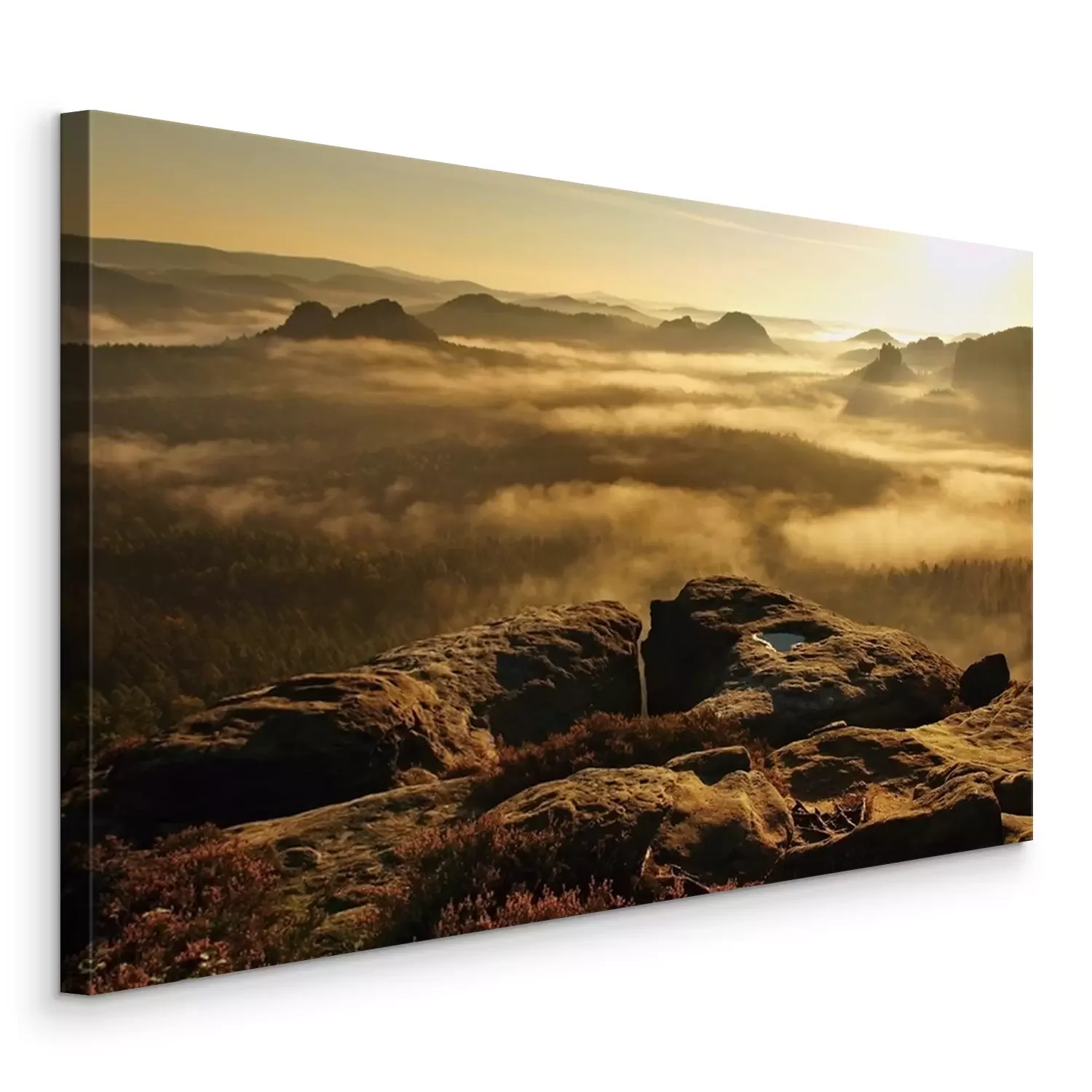 Tableau : Lever du soleil d'or dans une belle montagne de Saxe Suisse.