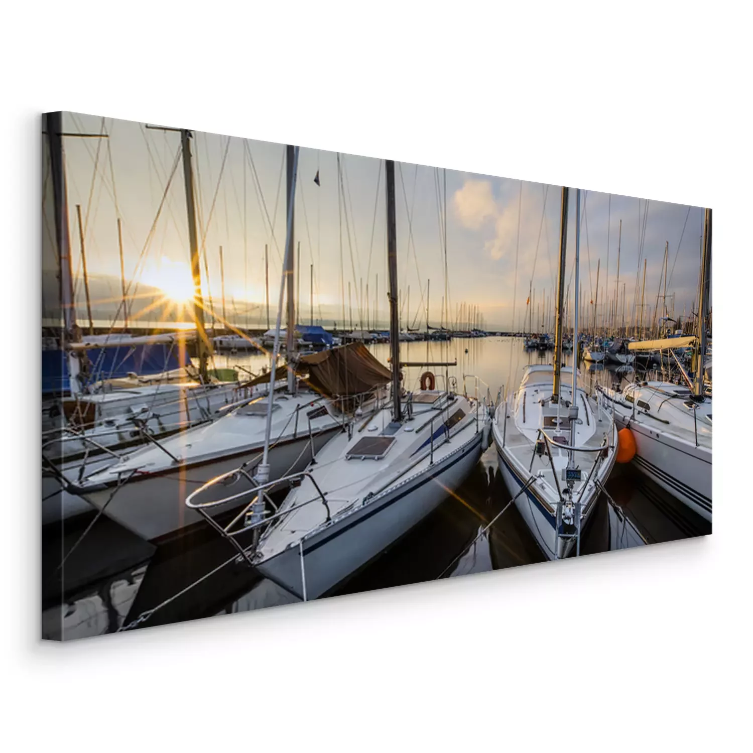 Voiliers dans les rayons du soleil couchant
