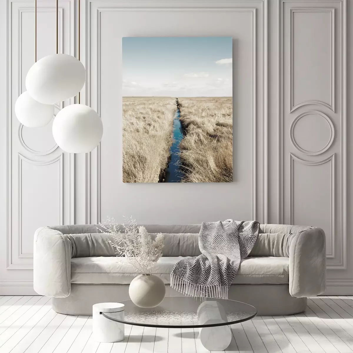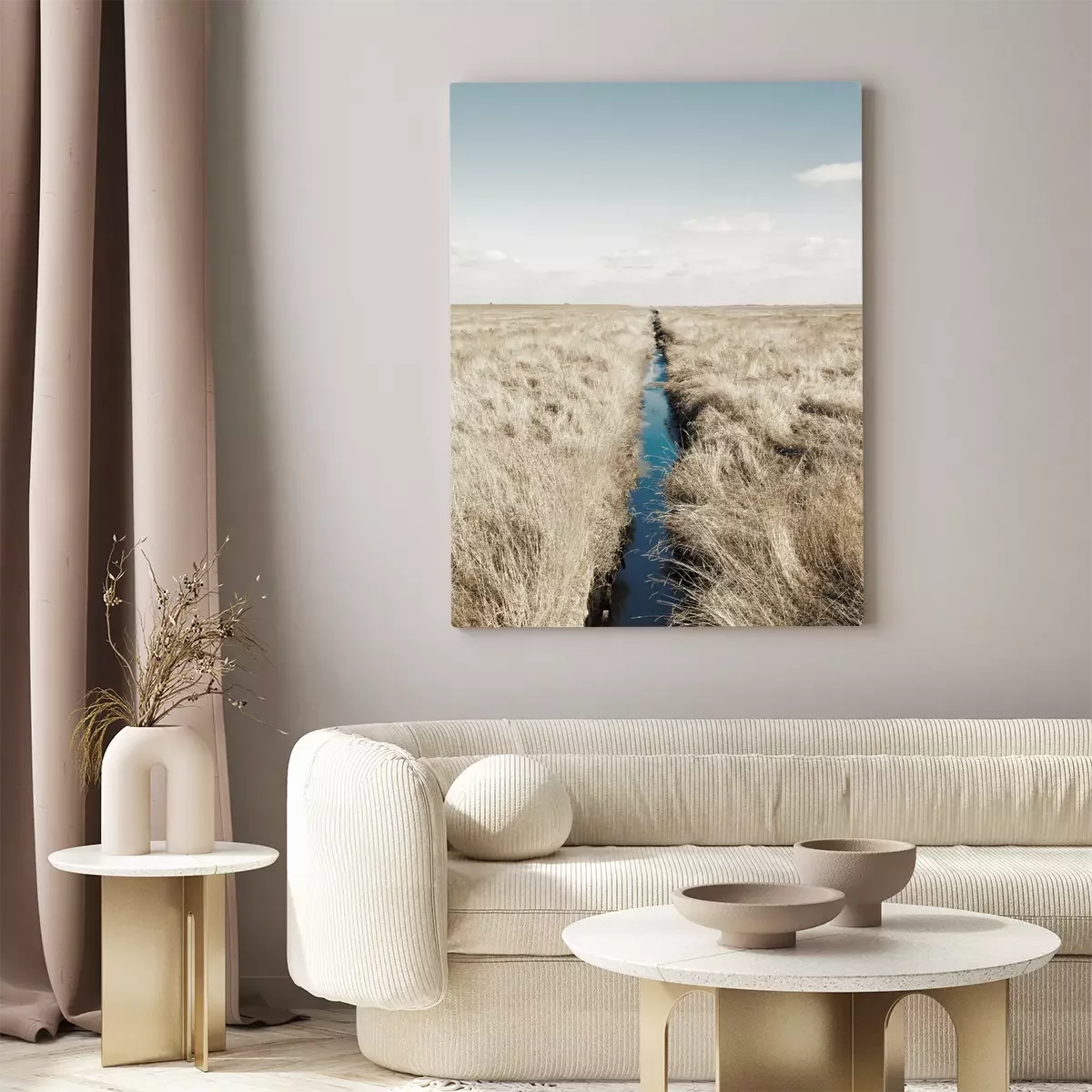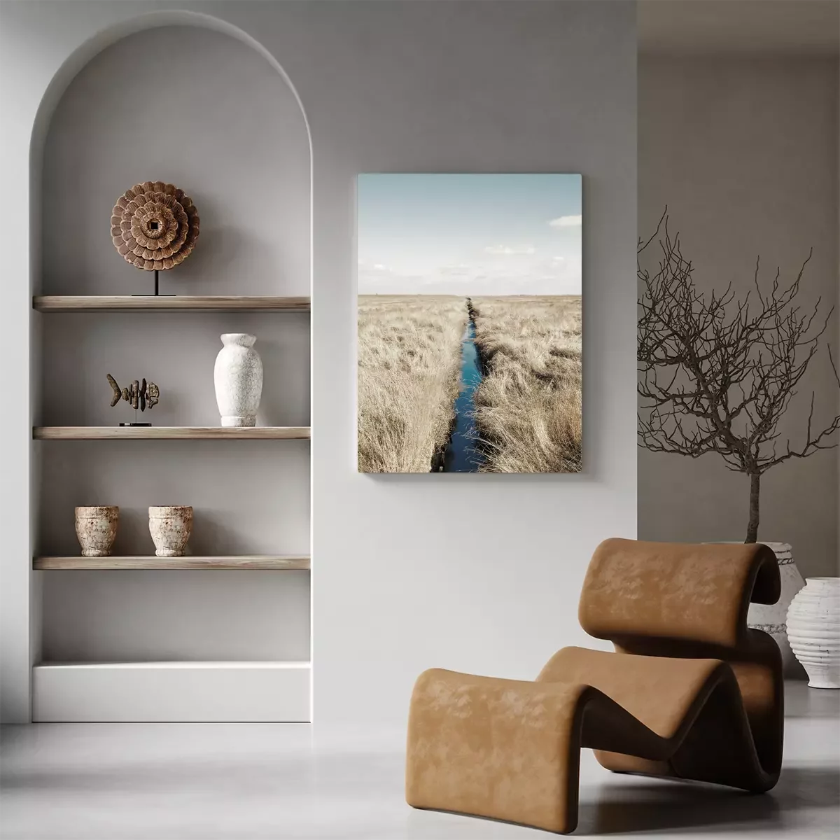 Ligne droite du canal dans la steppe sèche