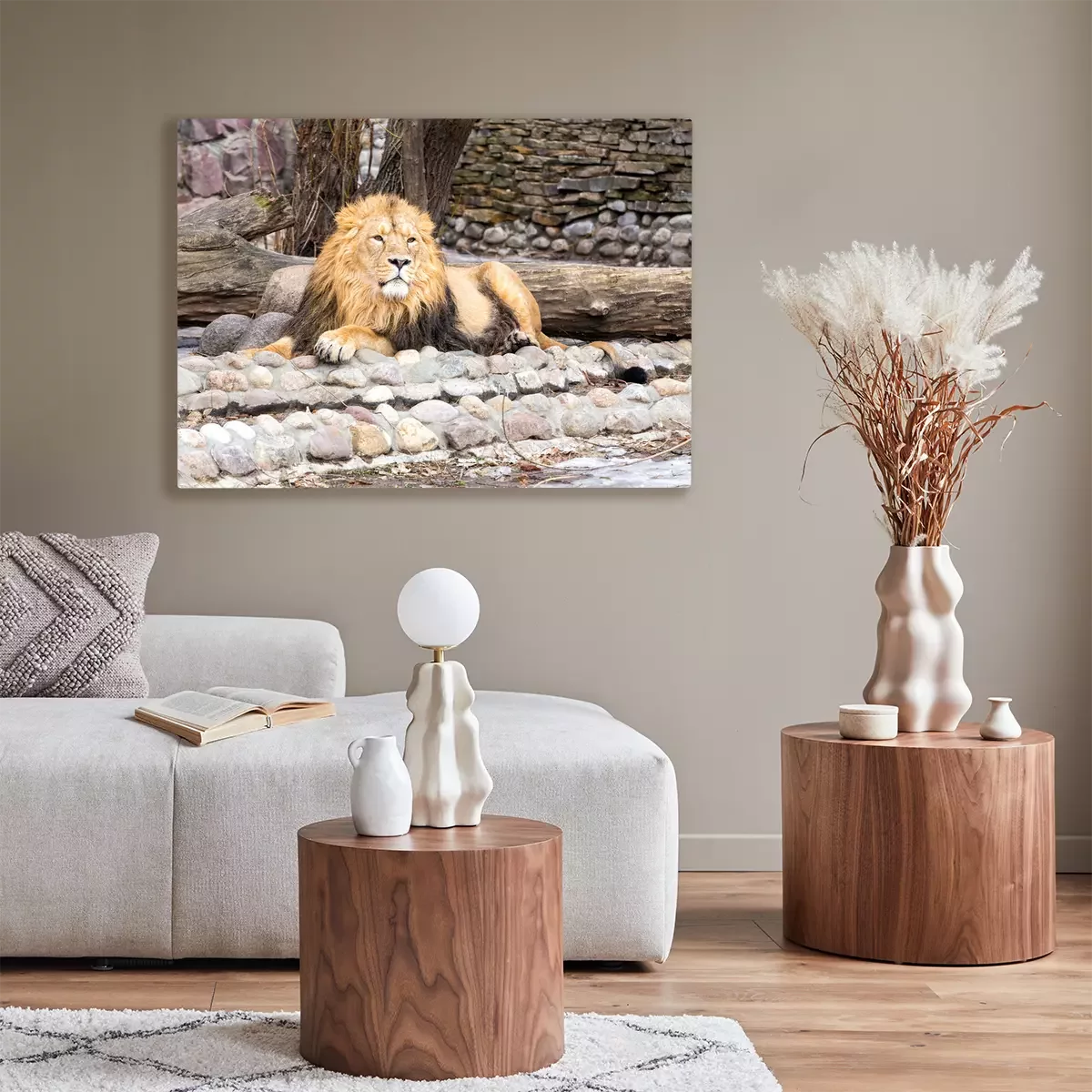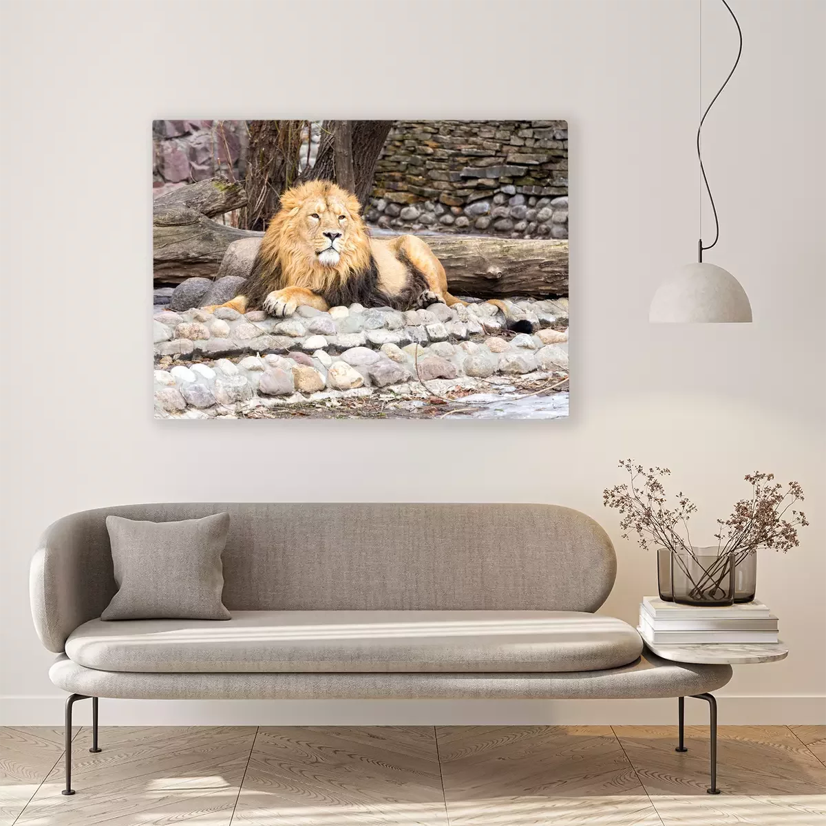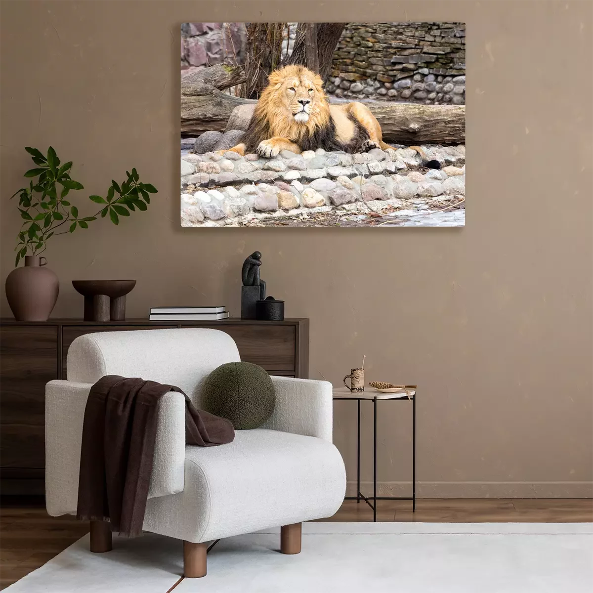 Tableau : Lion reposant sur des pierres