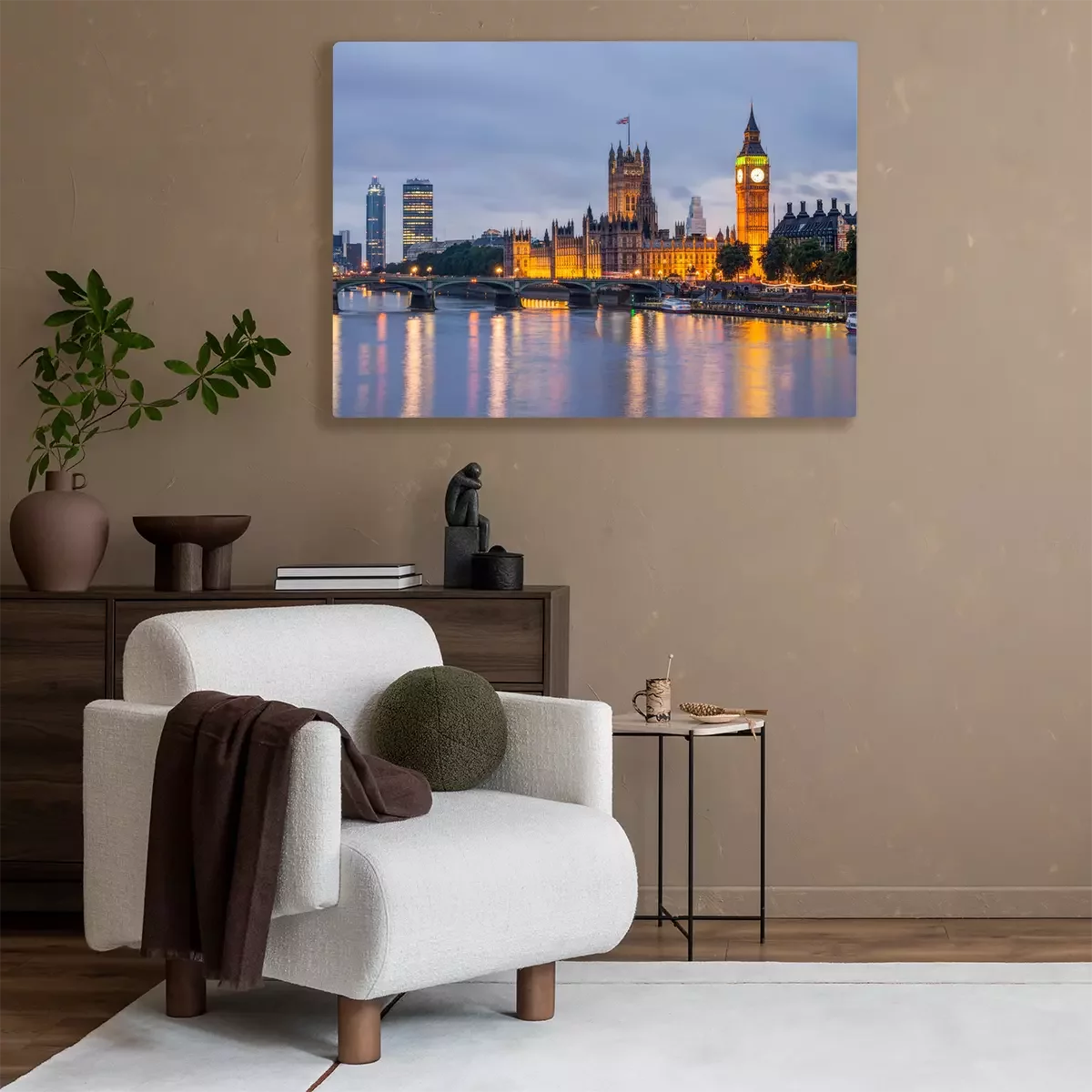 Tableau : Londres la nuit avec Big Ben illuminé