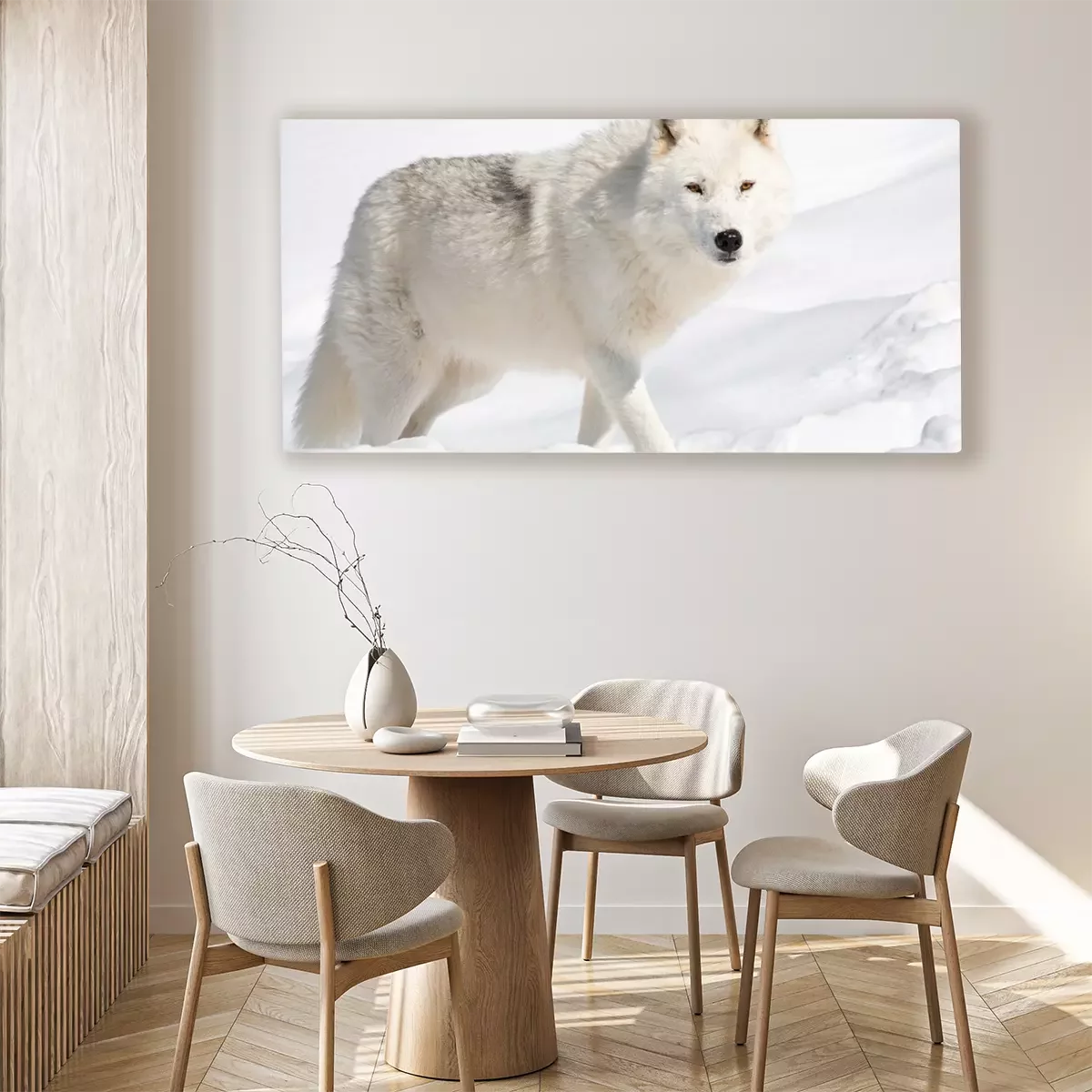 Tableau : Loup blanc dans la neige