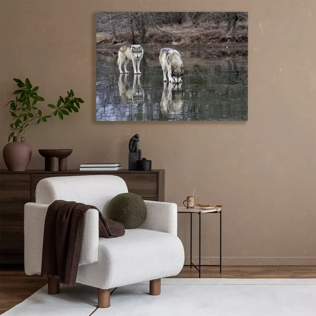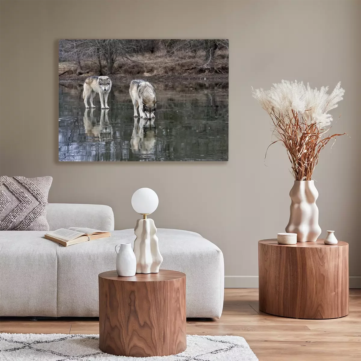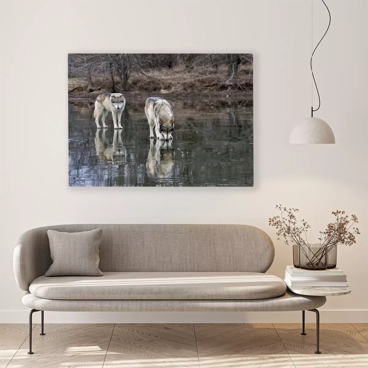 Tableau : Loups sur le lac