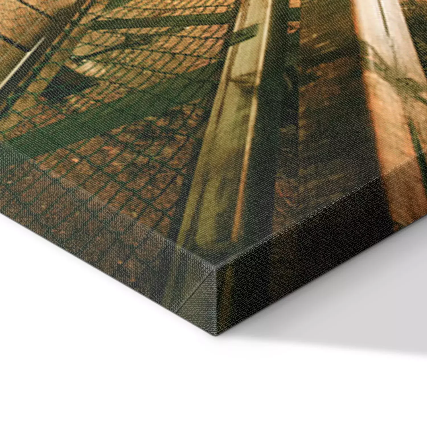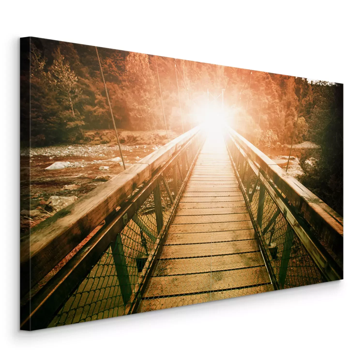 Tableau  Lumière de chaîne à la fin du pont suspendu traversant la vapeur en wil