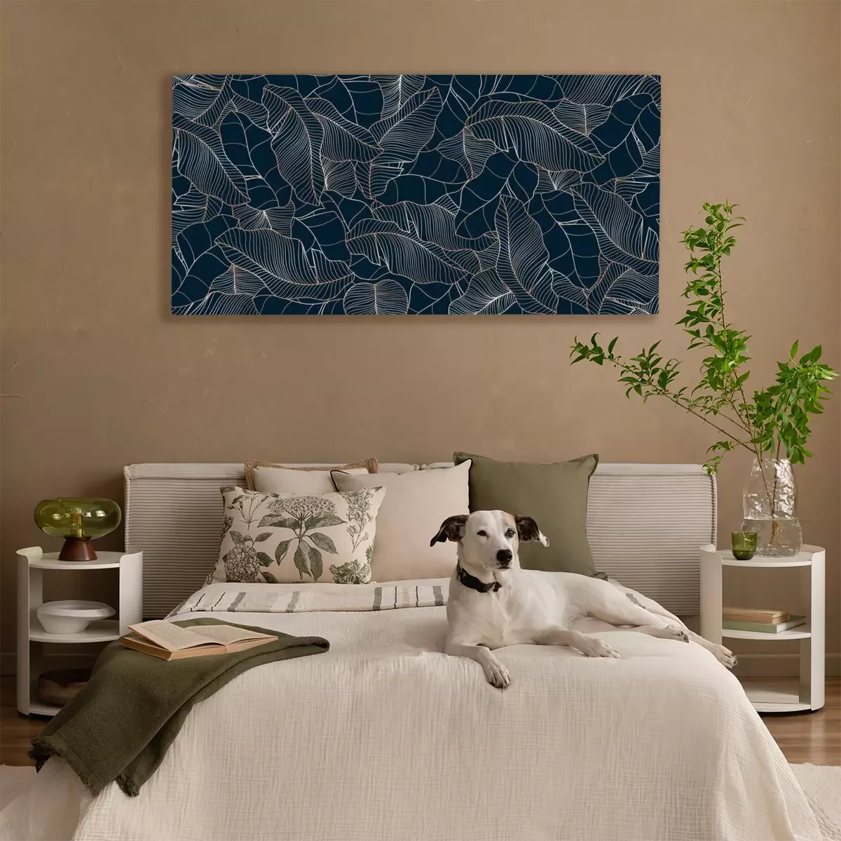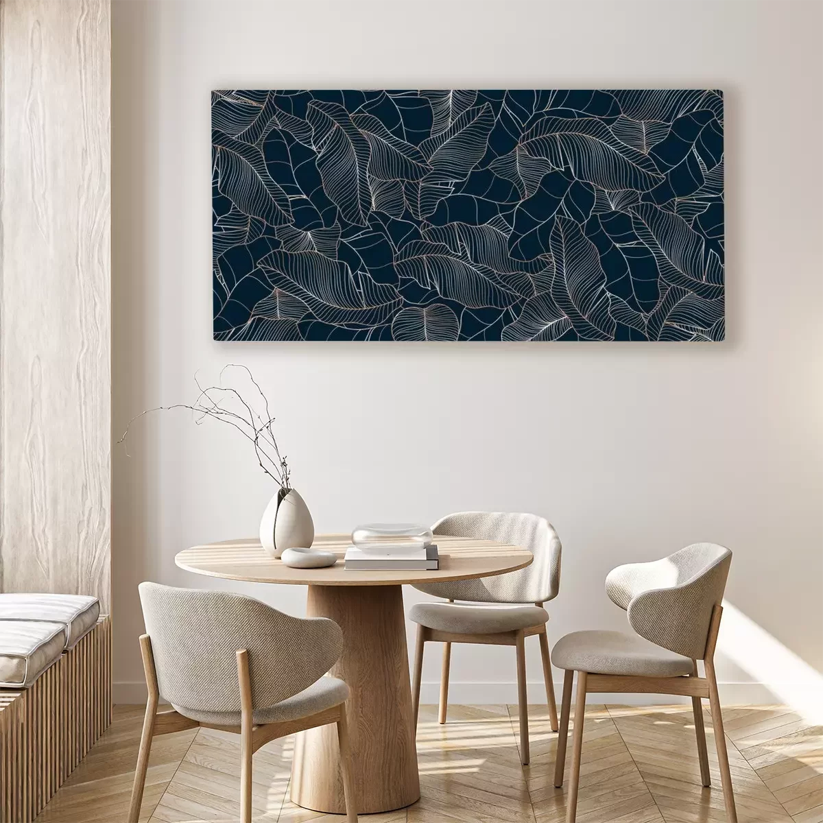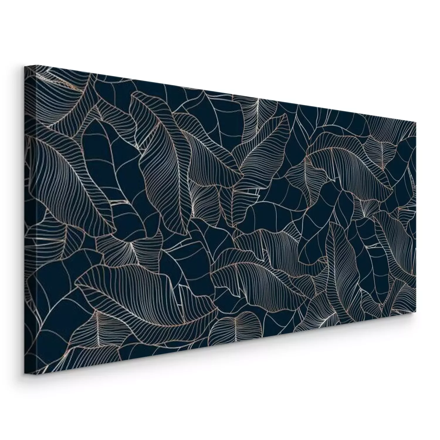 Tableau  Luxury gold natural leaf background vector. Banana leaf line arts wallpaper vector illustration.