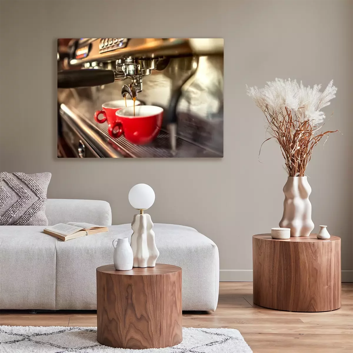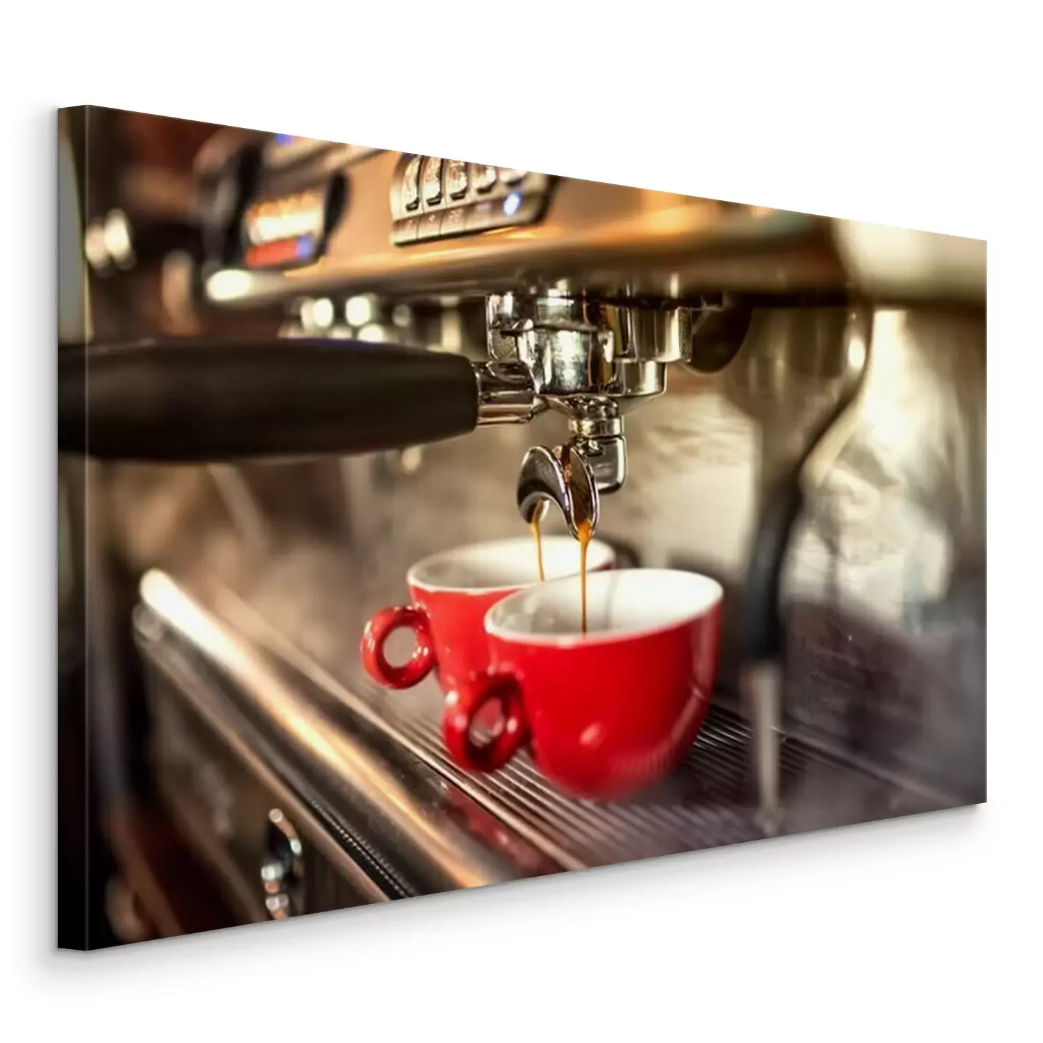 Tableau  Machine à café la préparation du café et verser dans des tasses rouges au restaurant, un bar ou un pub.