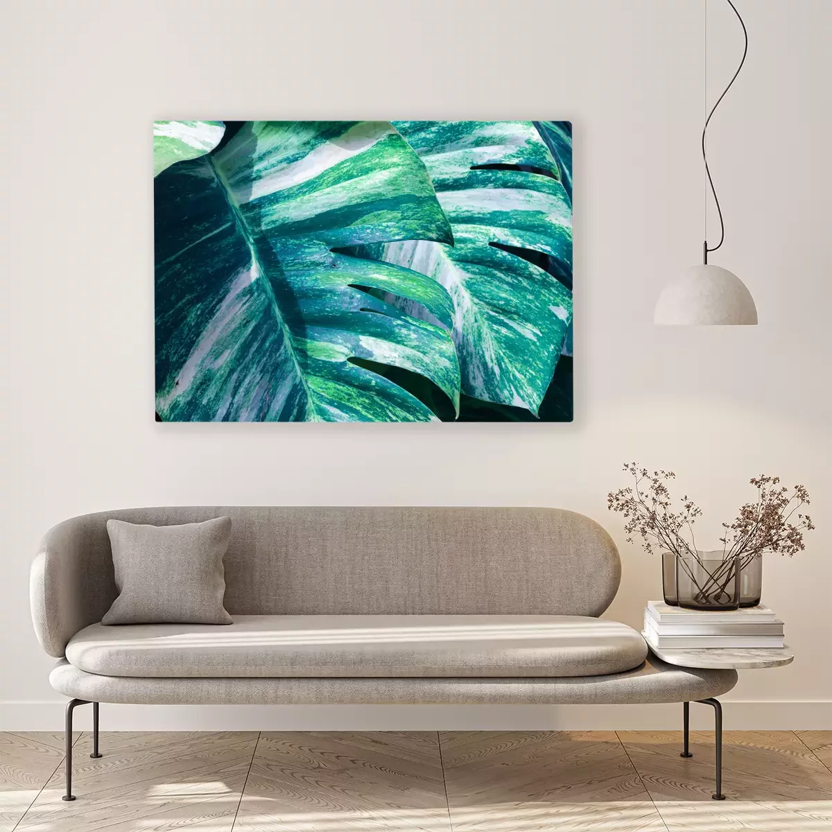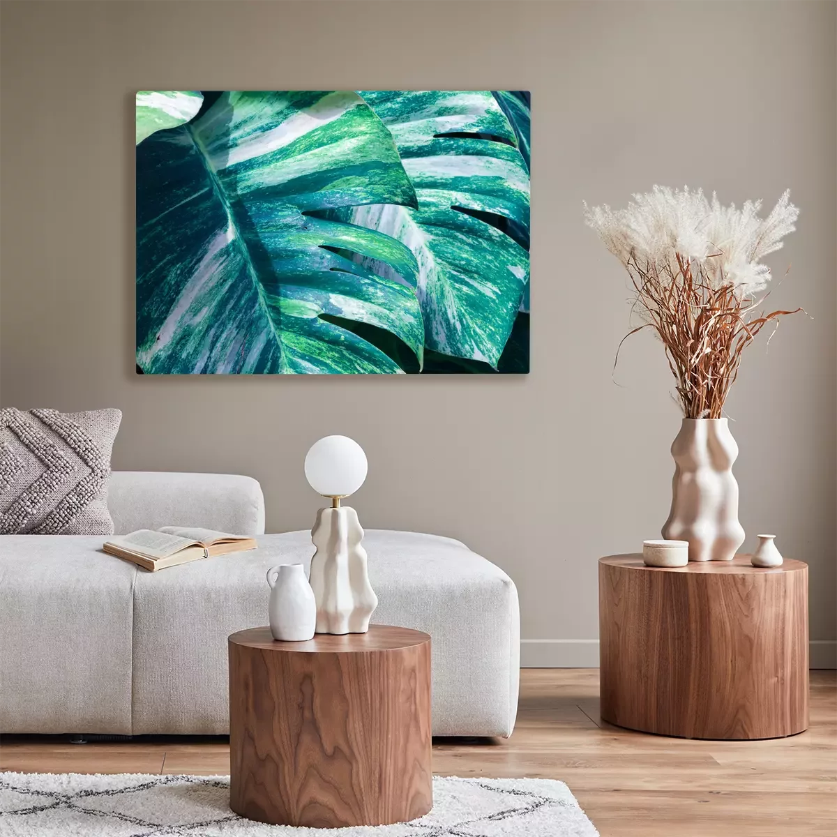 Ce tableau feuilles correspond actuellement à l'un des motifs décoratifs les plus populaires dans le monde de la décoration intérieure. Ce motif végétal mérite une attention particulière si vous recherchez une solution capable d’inviter la nature dans votre intérieur et ainsi créer un espace apaisant, relaxant et propice à la détente. Il est difficile de trouver un motif plus favorable à la relaxation que celui-ci. Notre tableau feuilles vertes offre l’avantage de pouvoir être intégré dans de nombreux styles décoratifs différents. Il s'adaptera parfaitement à un décor de style boho, éco ou urban jungle, car dans chacun de ces intérieurs, les motifs inspirés de la nature sont à l’honneur. De plus, la présence de ce tableau feuilles tropicales vous permettra de rendre visuellement plus chaleureux un intérieur moderne, minimaliste, voire industriel. Le vert présente l'avantage de s’accorder avec la plupart des couleurs. Ainsi, qu'une pièce soit décorée dans des tons chauds ou froids, de telles feuilles seront toujours aussi esthétiques. La composition même de ce tableau feuilles mérite également d’être mentionnée. Les feuilles sont exposées en gros plan, ce qui leur donne à première vue un visage légèrement abstrait. Avec quels accessoires ce tableau se mariera-t-il ? Il est conseillé de combiner ces feuilles tropicales avec des accessoires en osier ou en rotin. Il pourra s'agir de fauteuils dans le salon, d'une tête de lit dans la chambre à coucher ou d'un abat-jour diffusant joliment la lumière. Une excellente idée consiste également à accompagner votre tableau de plantes d'intérieur luxuriantes. Voilà qui permettra de renforcer l'ambiance naturelle régnant dans la pièce. Pour cela, nous vous recommandons de sélectionner un tableau feuilles tropicales en grand format. Votre modèle deviendra ainsi l'élément décoratif central de la pièce. Cette solution est une excellente idée pour la décoration d’un bureau à domicile. Vous transformerez ainsi cette partie de la maison en un havre de paix propice à la concentration. Les motifs inspirés de la nature sont intemporels et ne se démodent jamais, ils demeurent des solutions décoratives sûres.