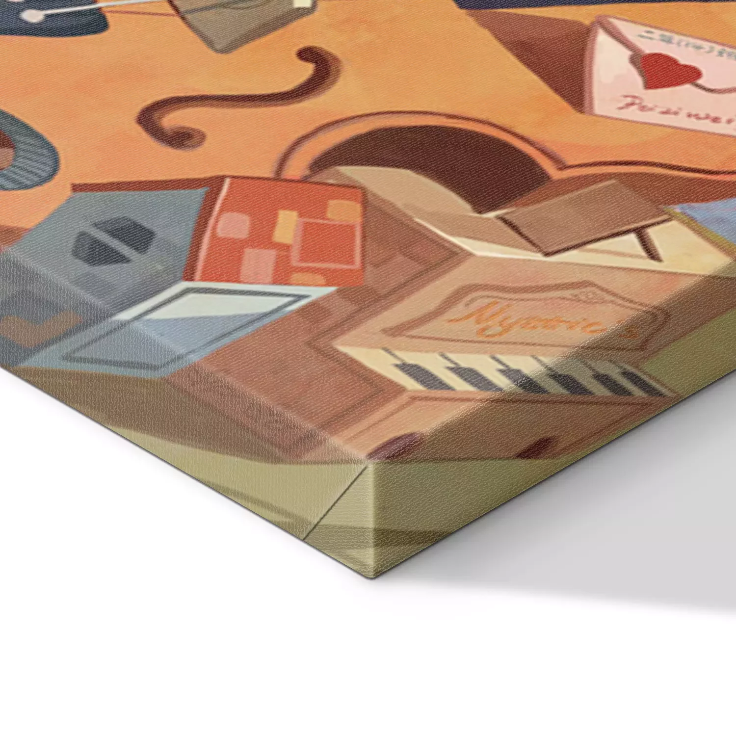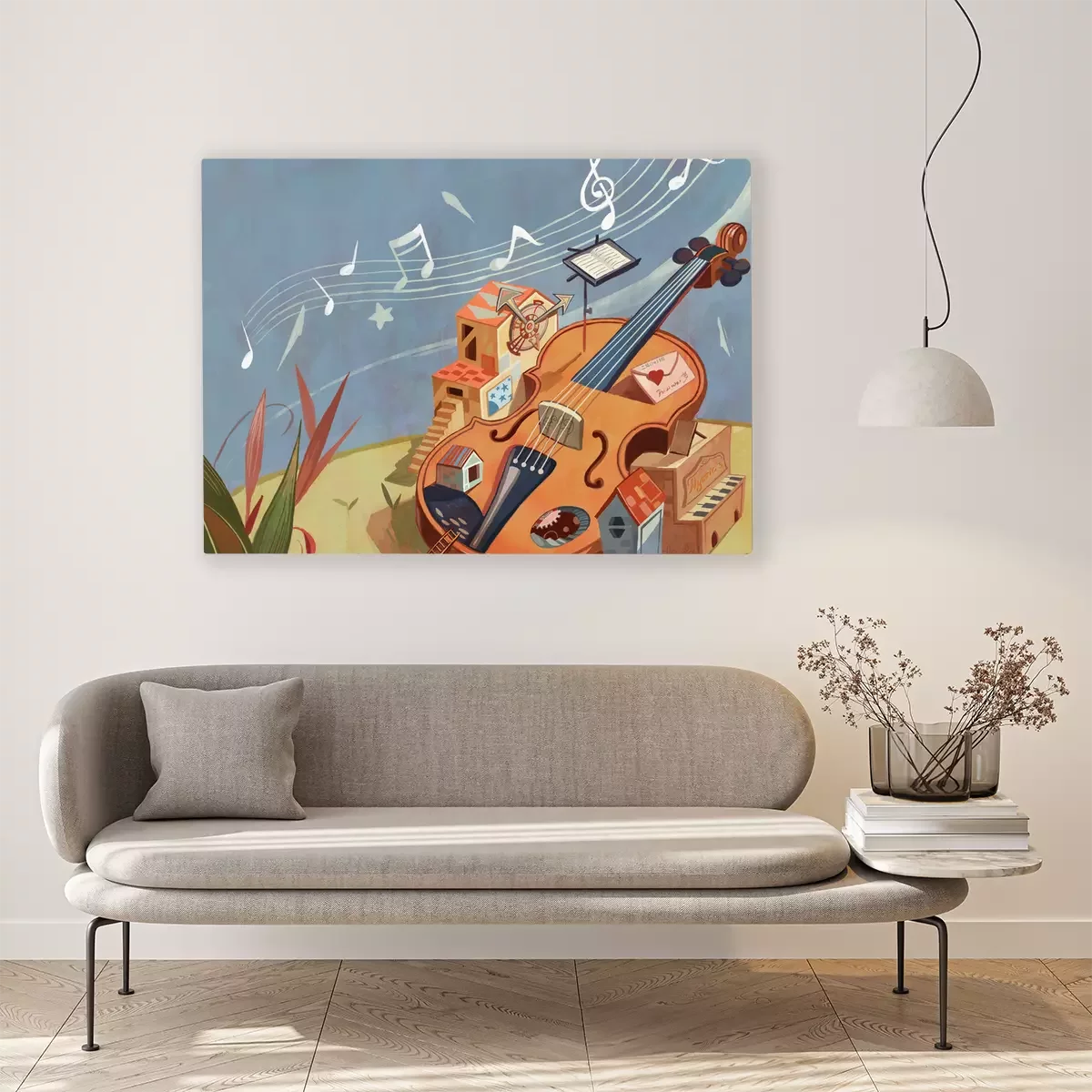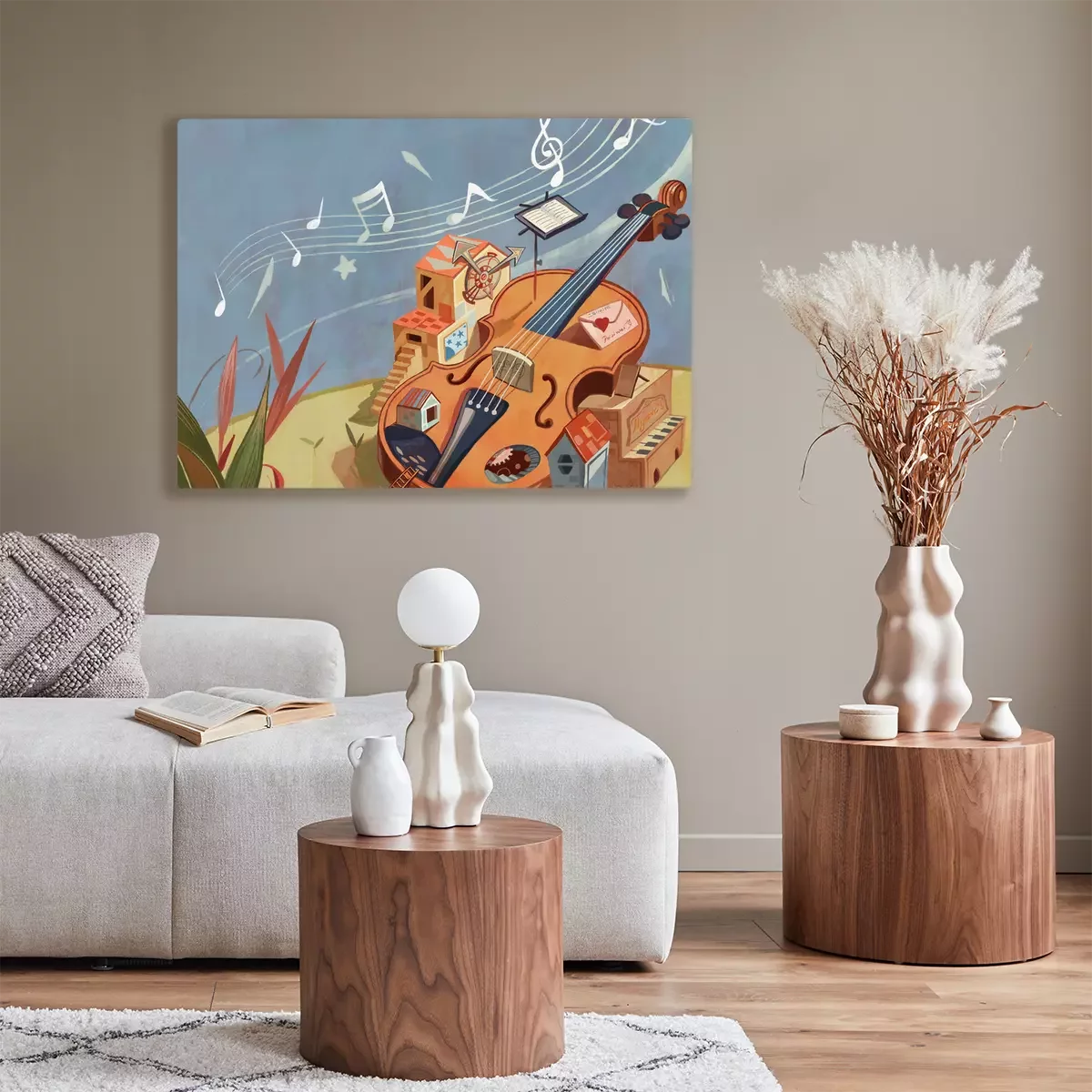 Tableau : Magic, fantasy, fantasy, dreams, imagination, fairy tales, myths, children, literature and art, illustrations, cello, musical instruments, music, performance, music score, notes, illustrations,
