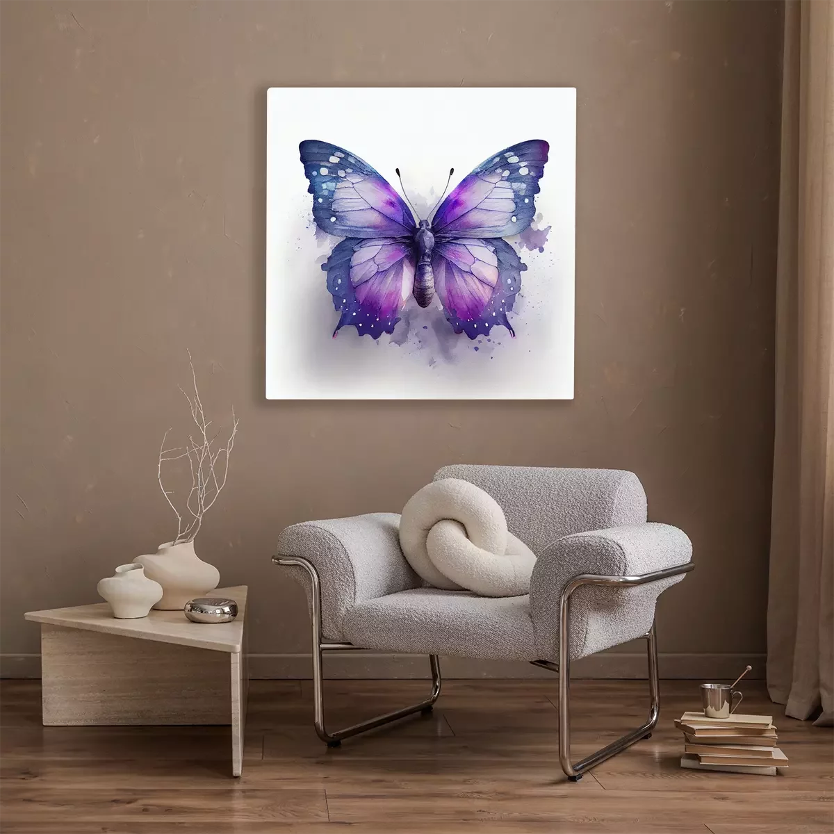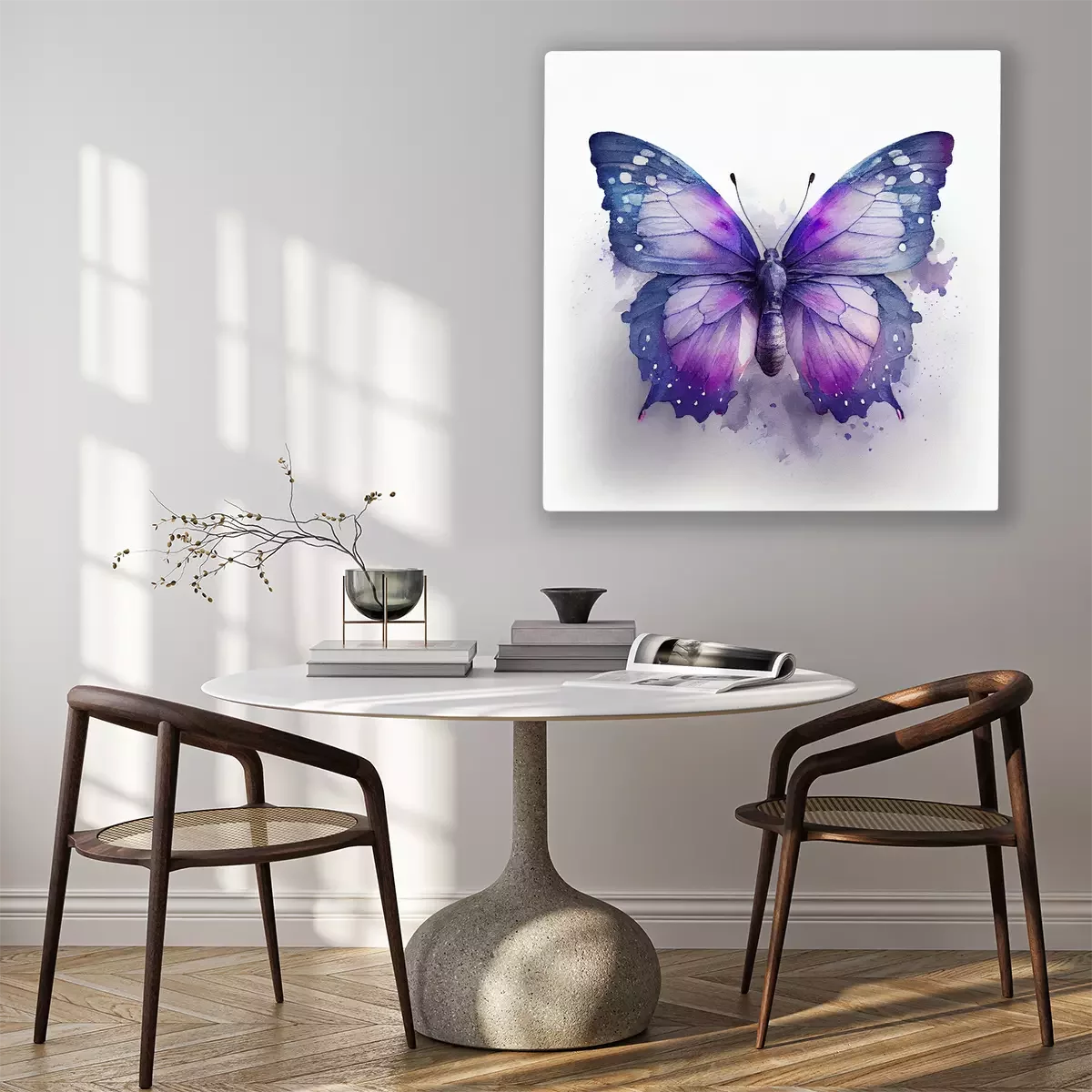Tableau : Magnifique papillon violet à l'aquarelle dans un style aquarelle