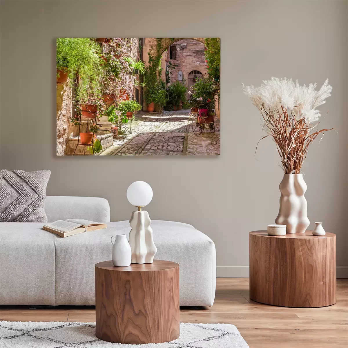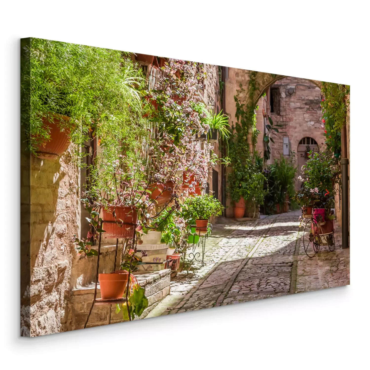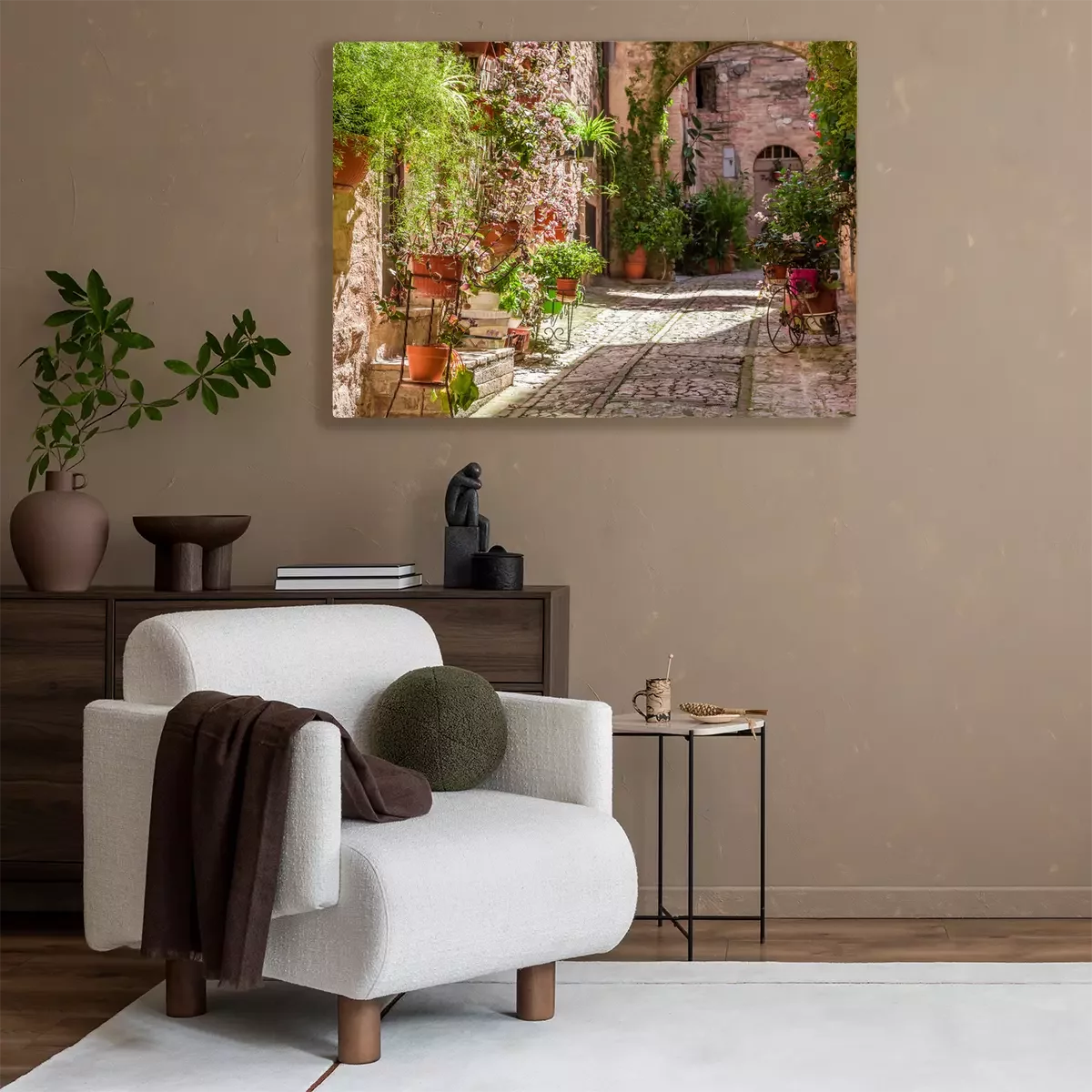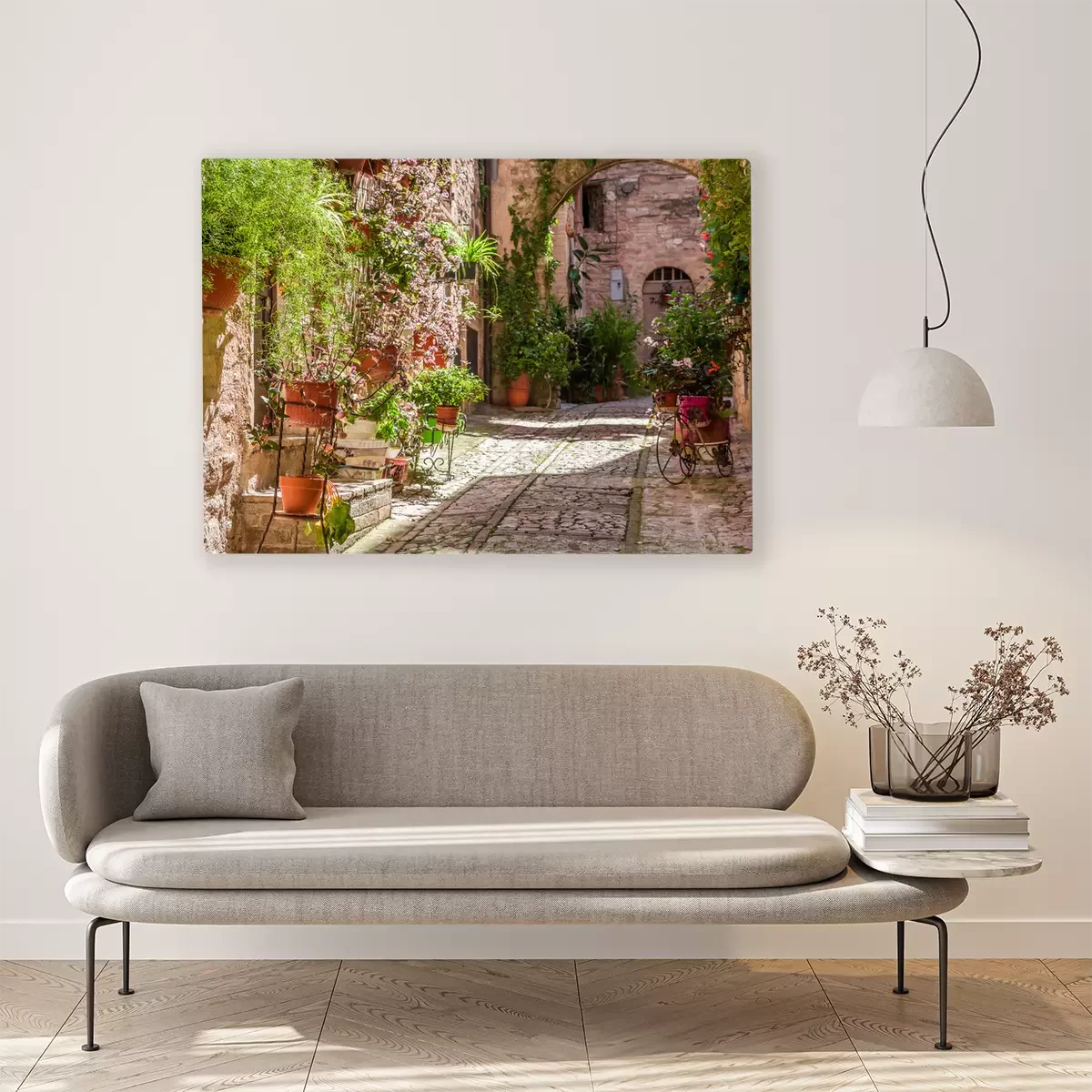 Tableau : Magnifique porche décoré dans une petite ville en Italie en été, Ombrie